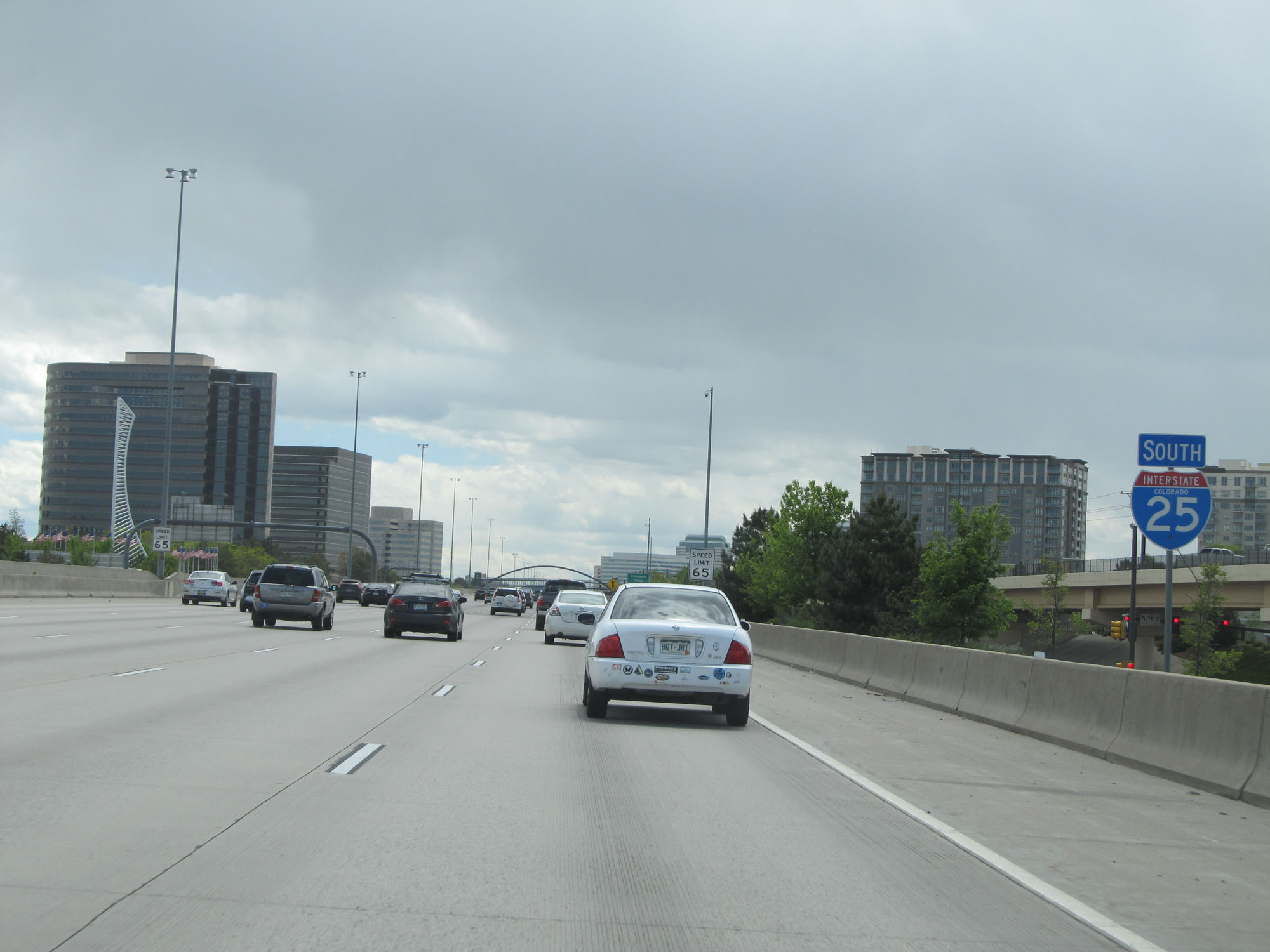 Interstate 225 South ends as its ramps merge into Interstate 25. (Photo taken 5/28/16). |