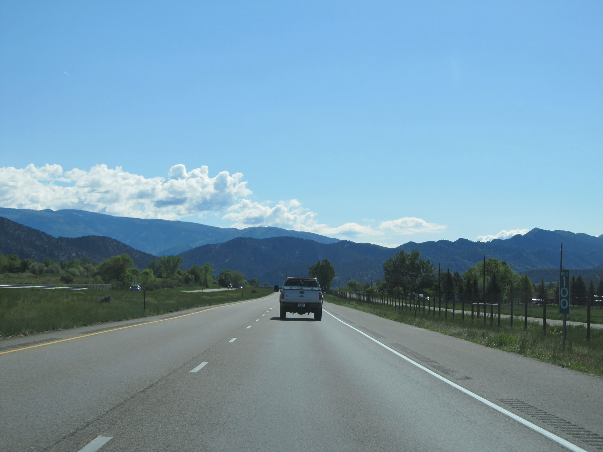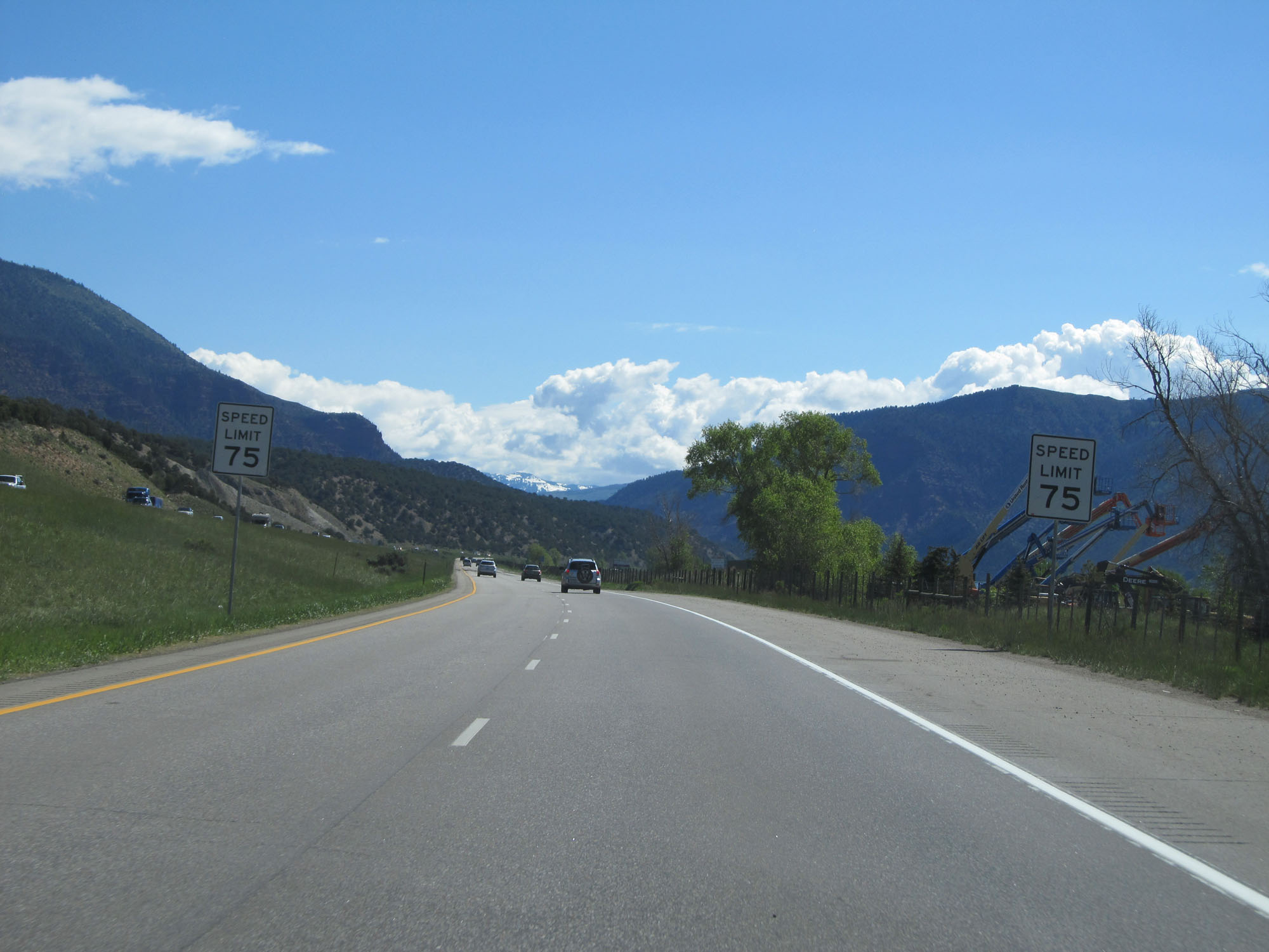 Finally, the standard speed limit of 75 mph returns now that we're well east of Glenwood Canyon. (Photo taken 5/28/16). |