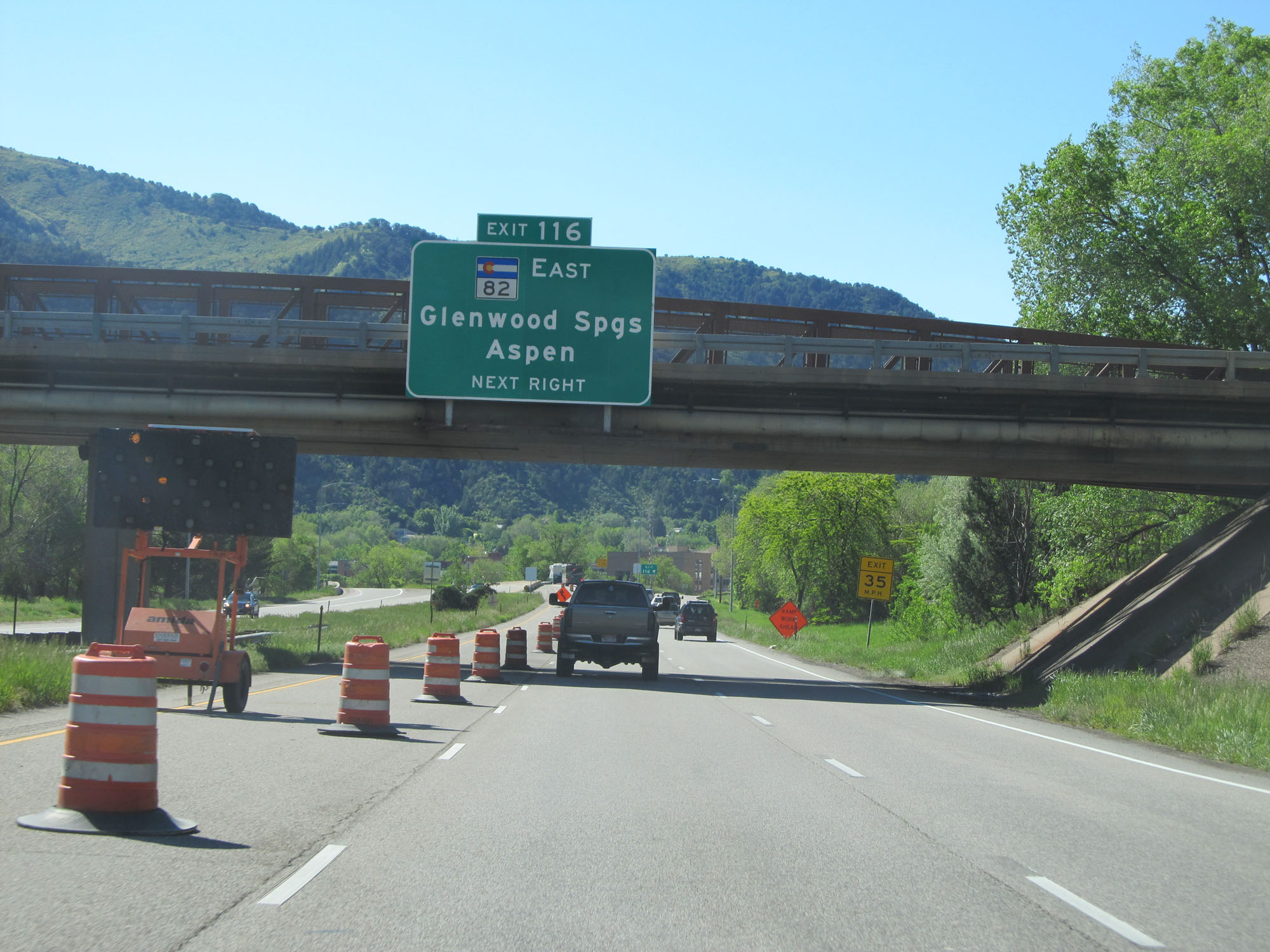 Interstate 70 East at Exit 116: CO 82 East - Glenwood Springs / Aspen (Photo taken 5/28/16). |