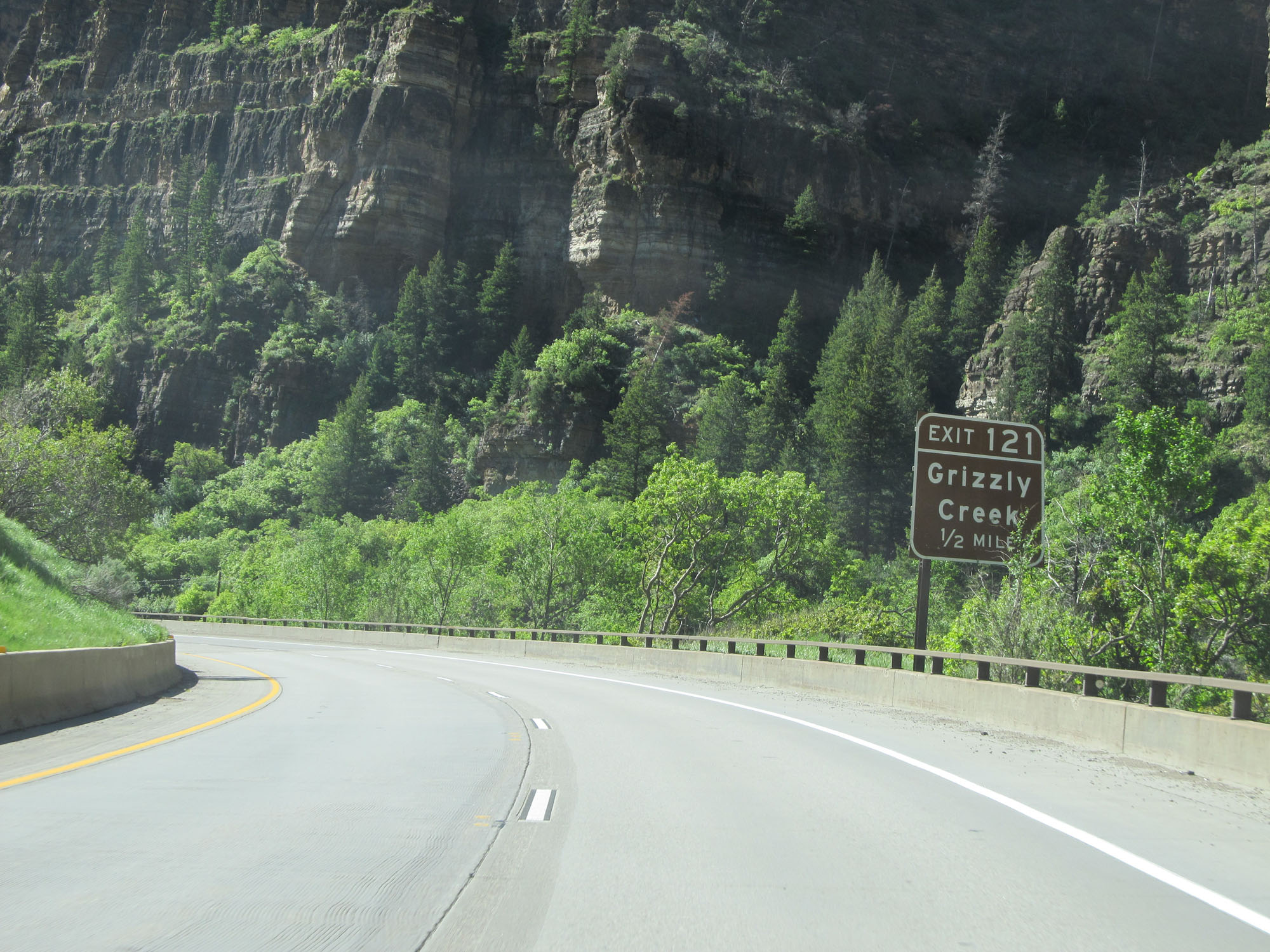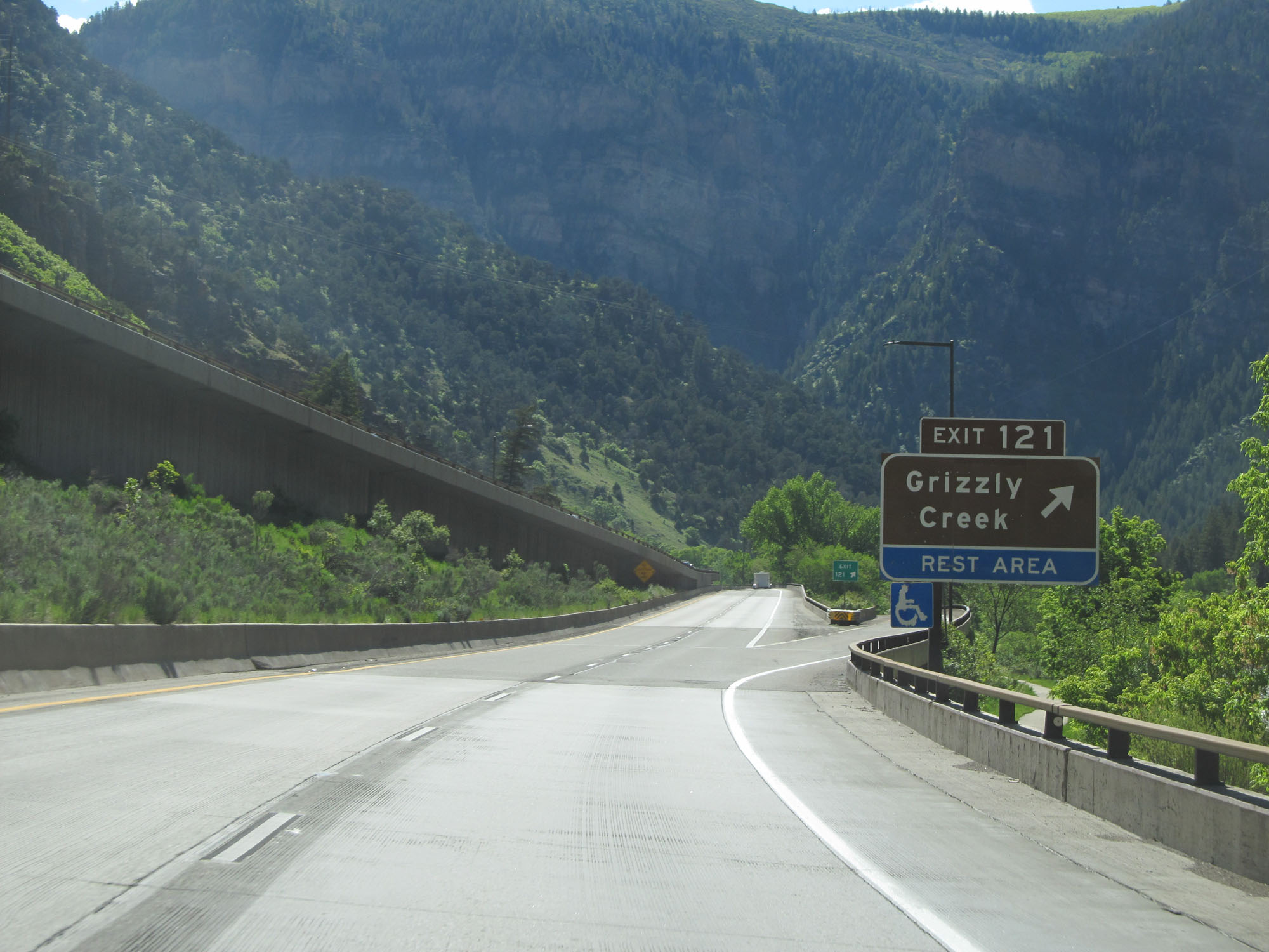 Interstate 70 East at Exit 121: Grizzly Creek / Rest Area (Photo taken 5/28/16). |
