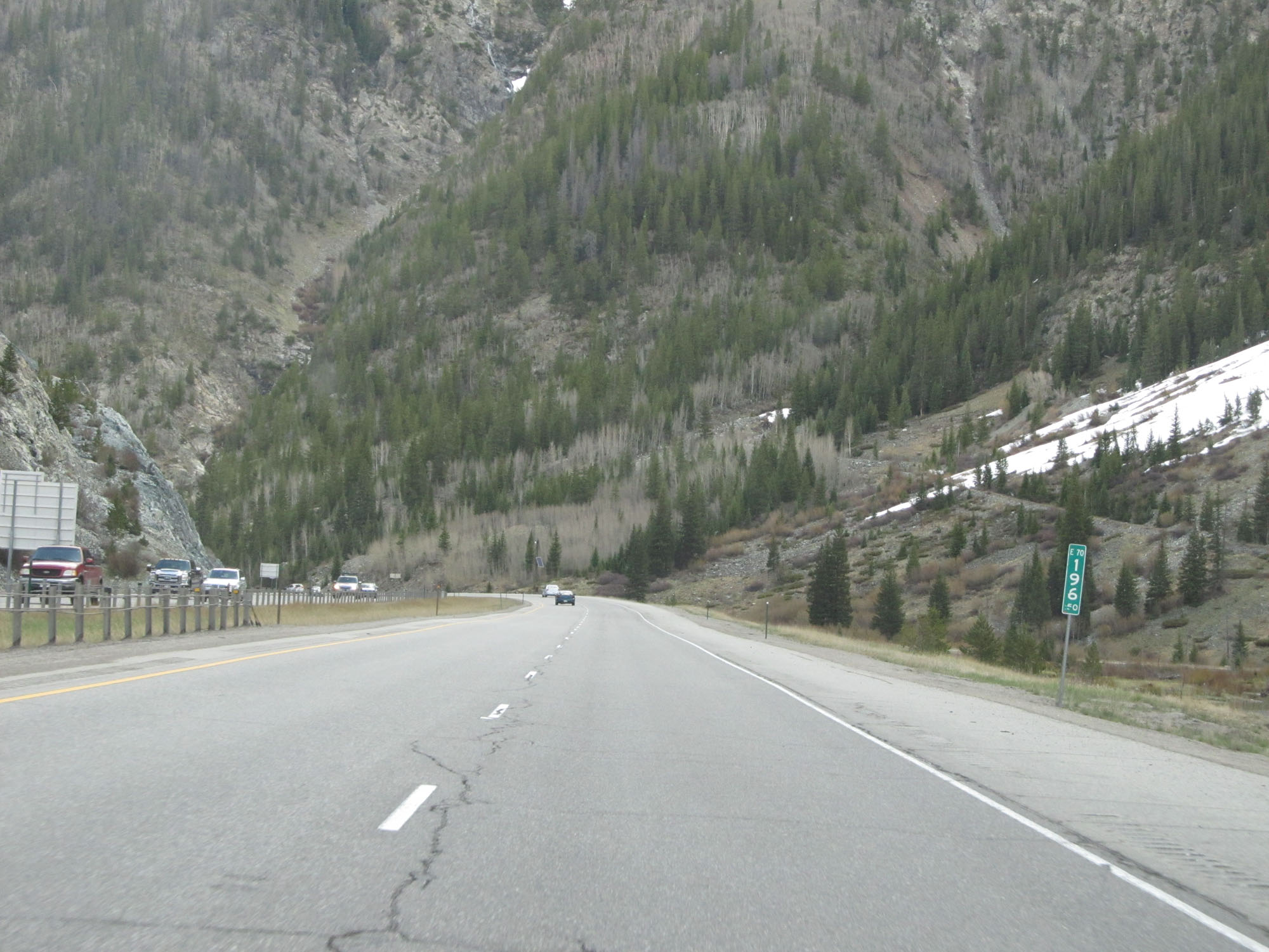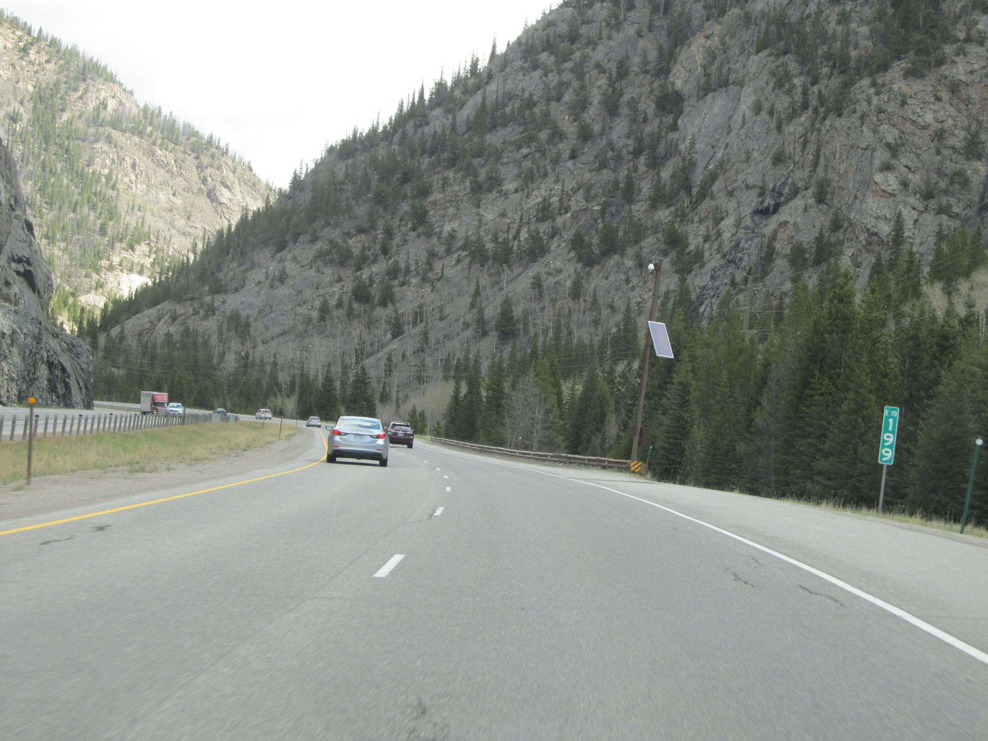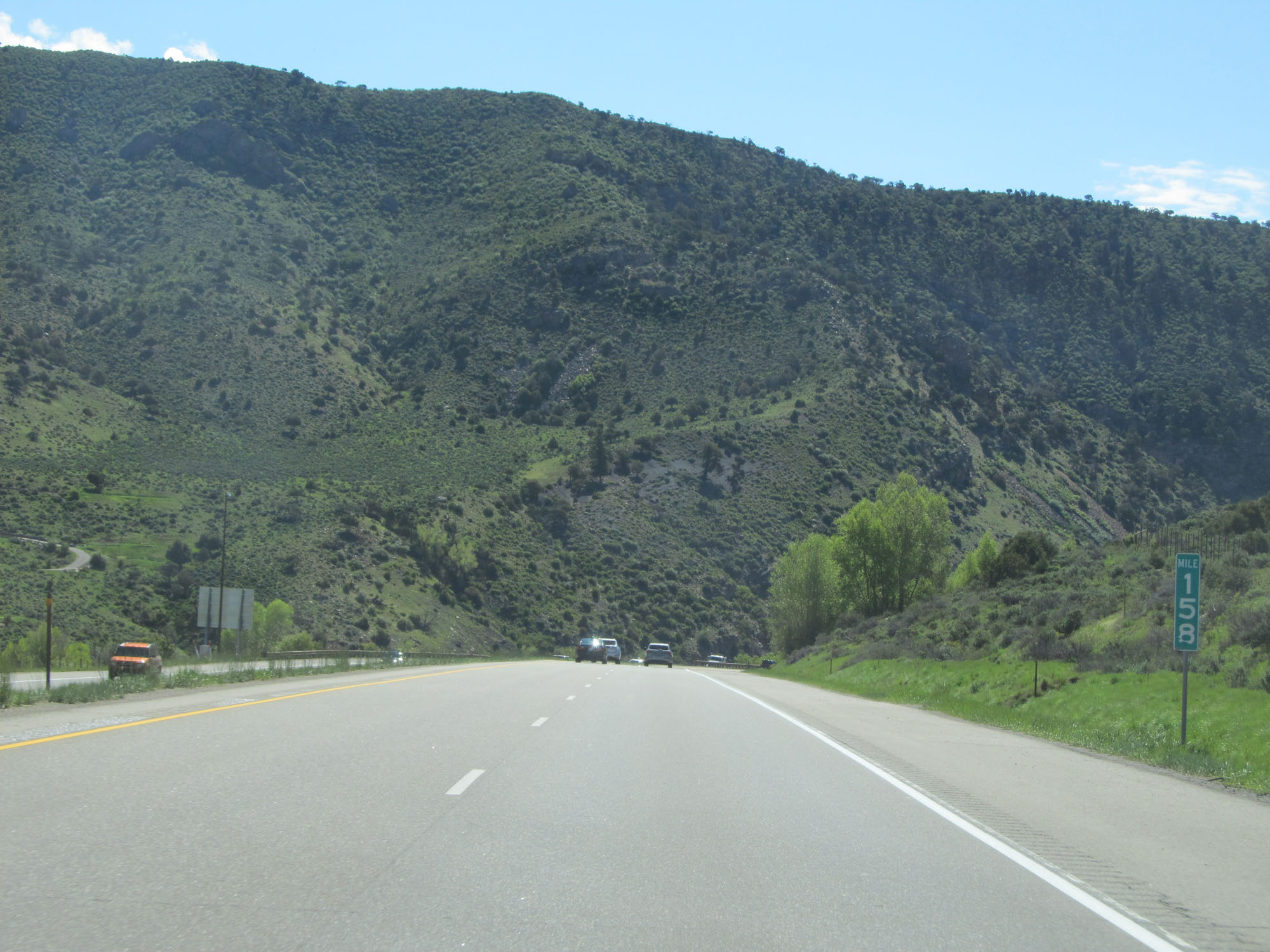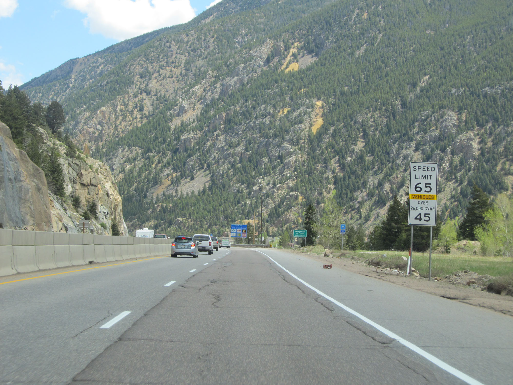 Interstate 70 East at mile marker 126, on the east side of Hanging Lake Tunnel. (Photo taken 5/28/16). |