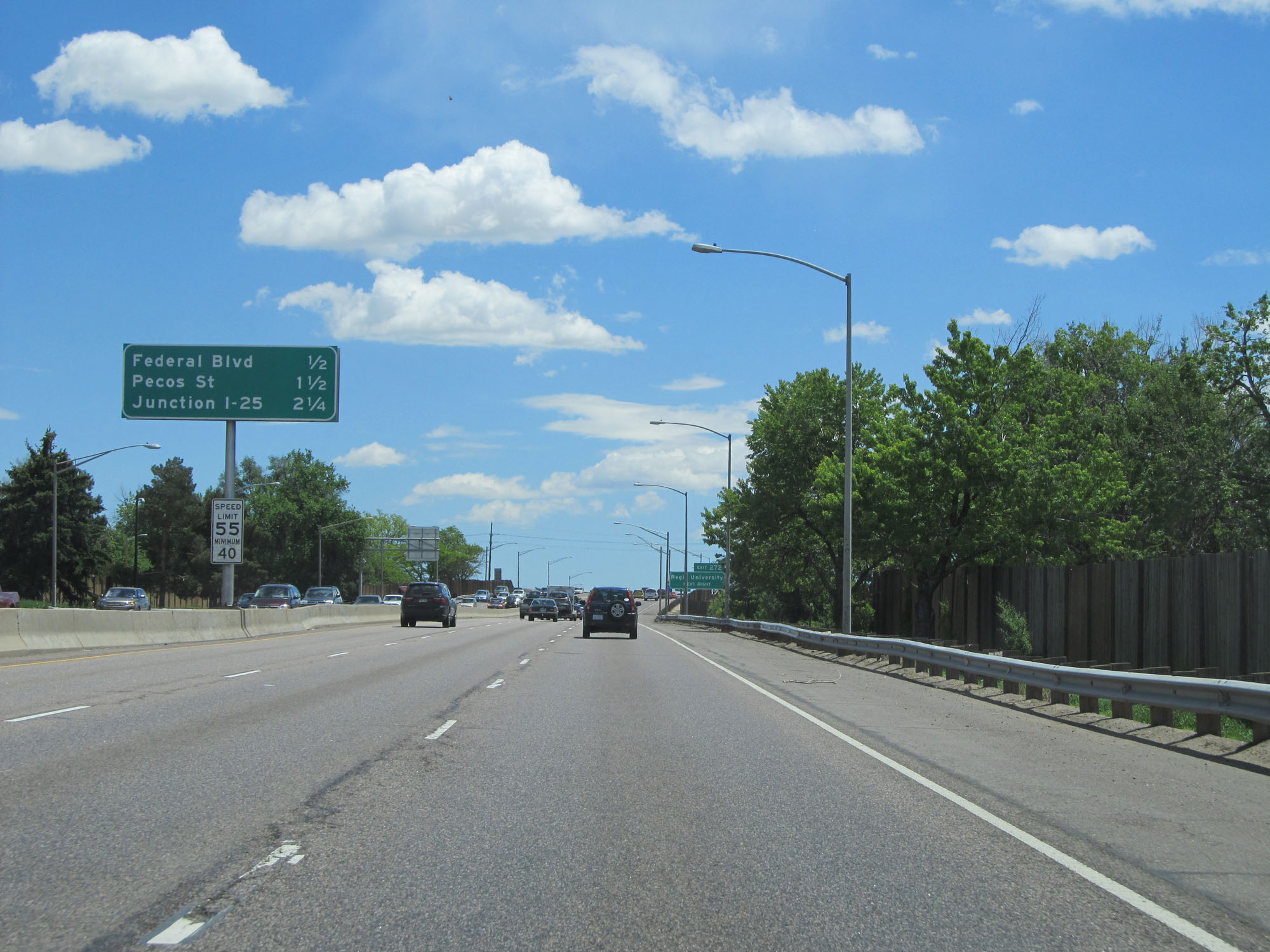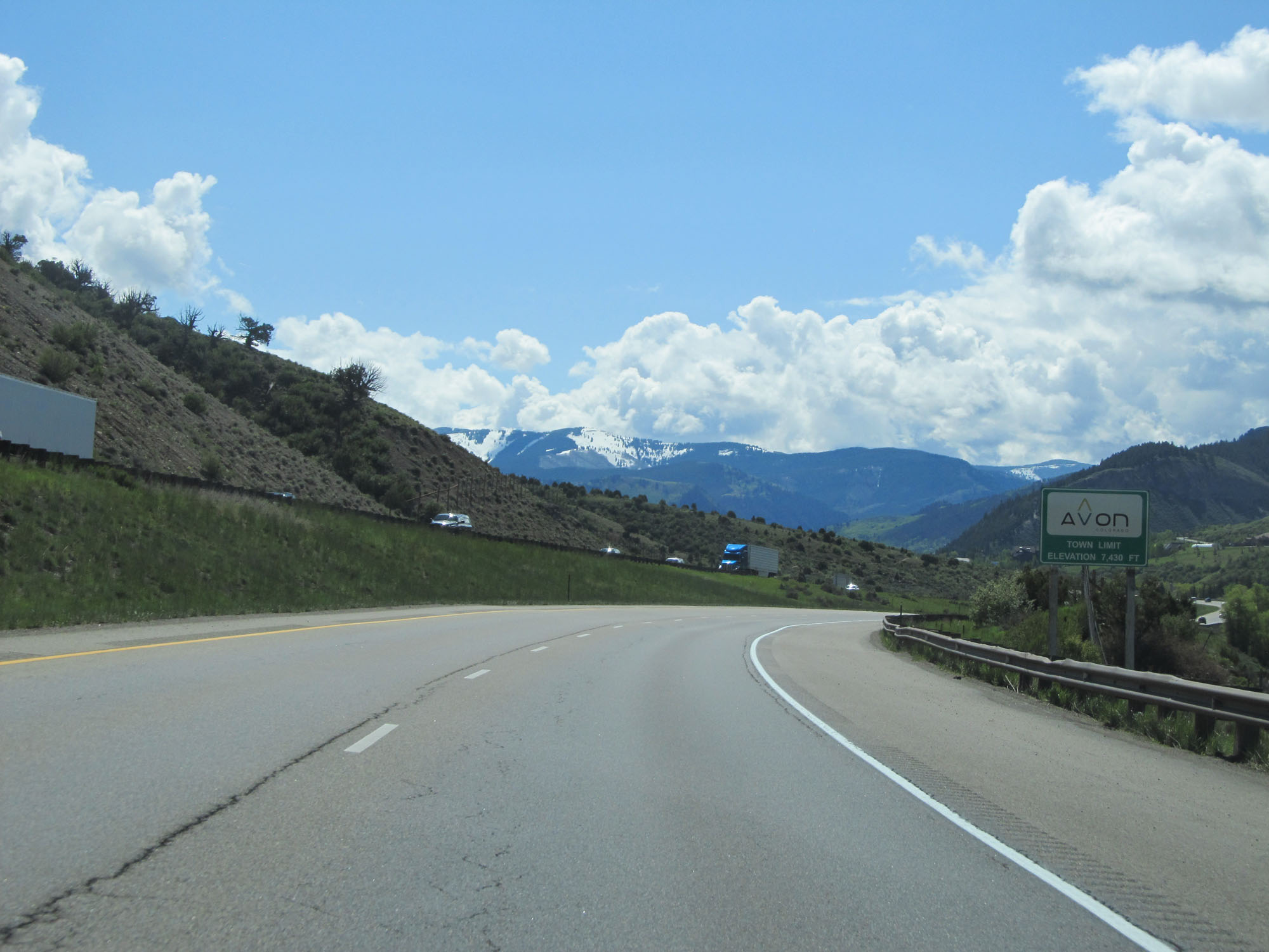Interstate 70 East entering the Avon town limits at an elevation of 7,430 feet. (Photo taken 5/28/16). |