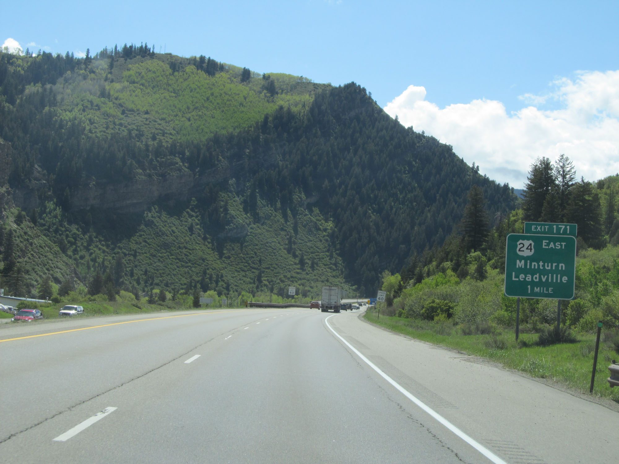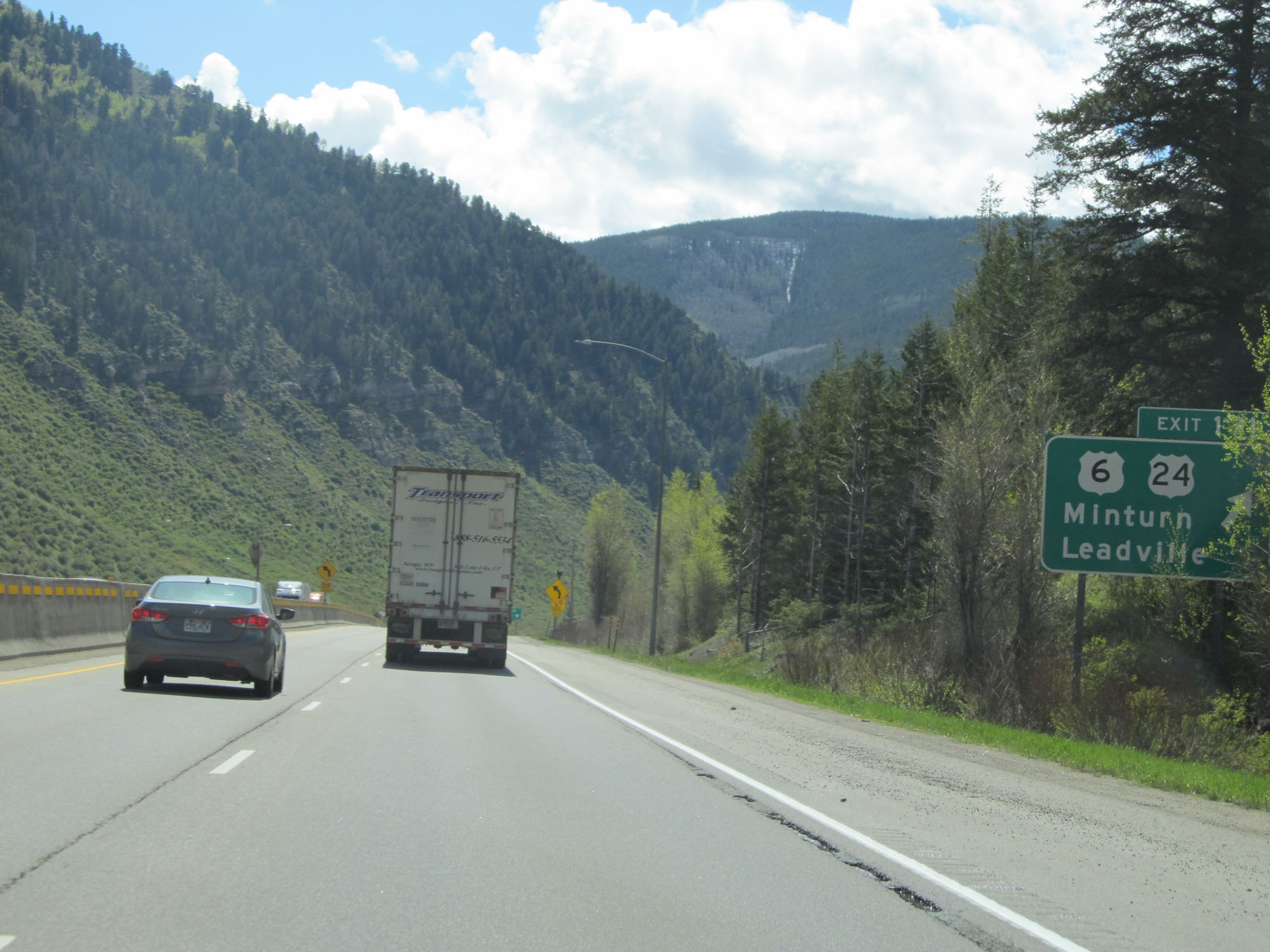 Interstate 70 East at Exit 171: US 6 / US 24 - Minturn / Leadville (Photo taken 5/28/16). |