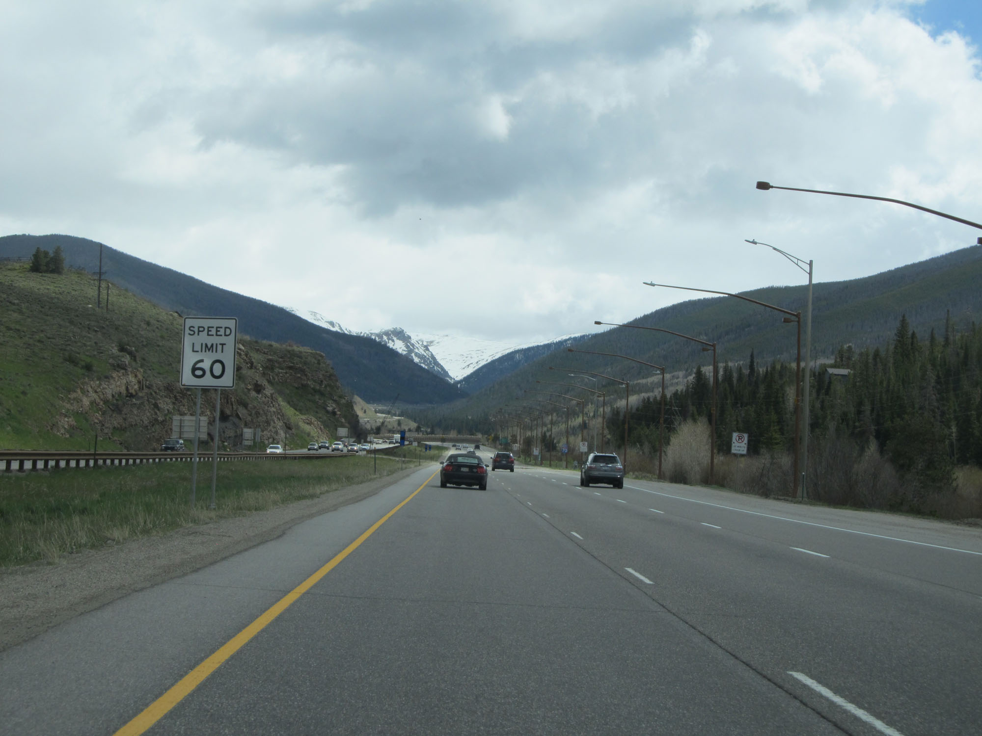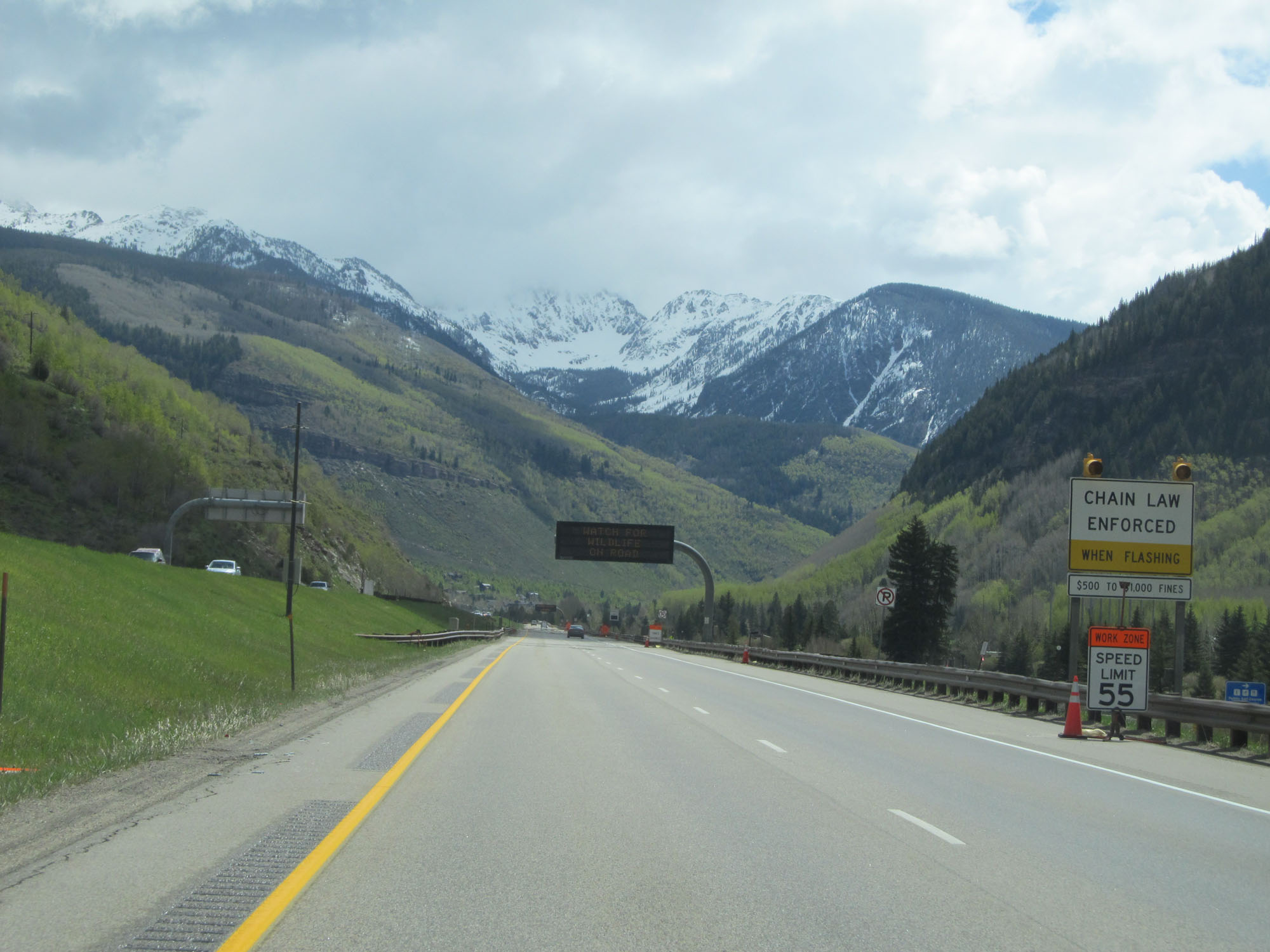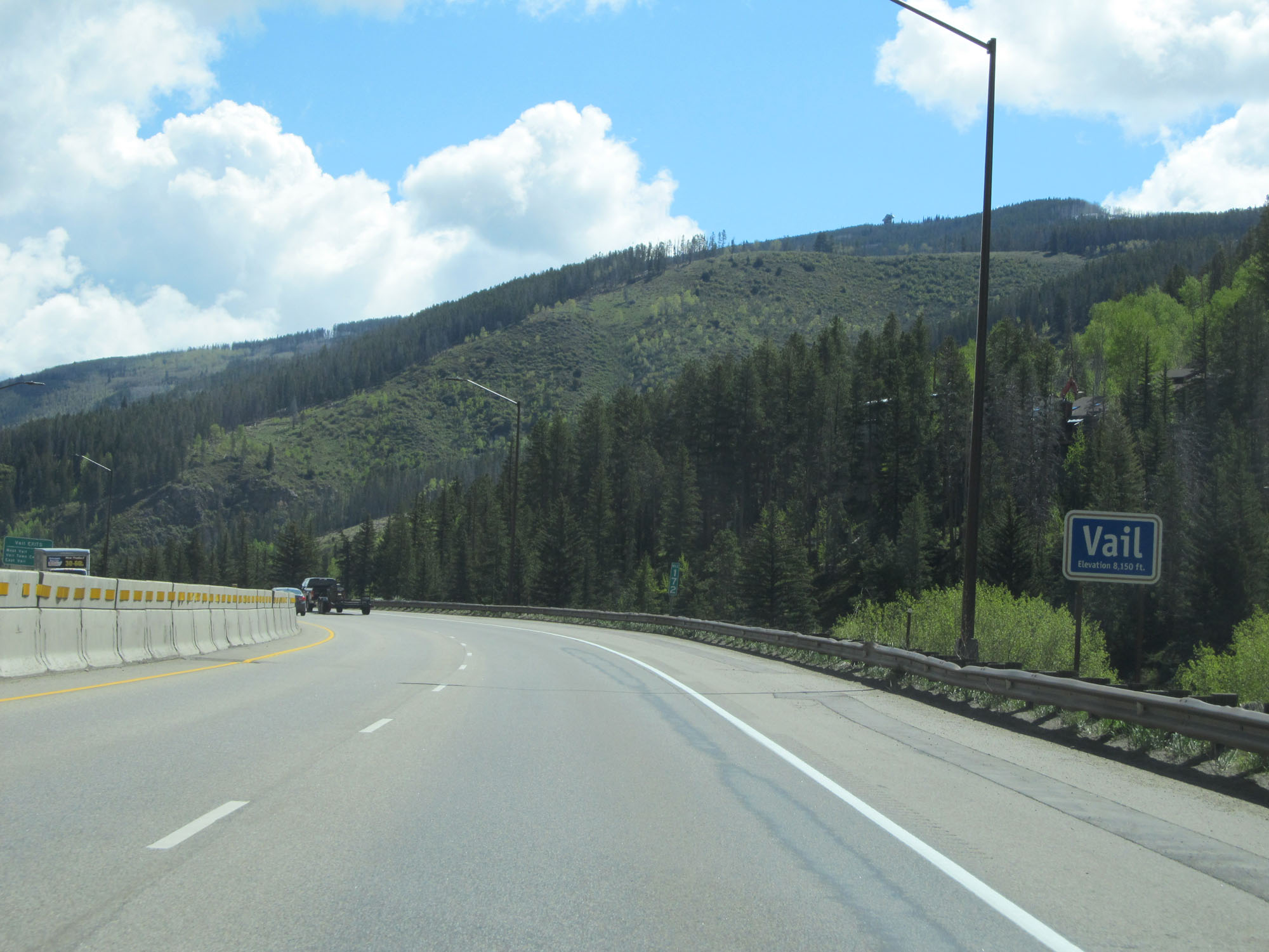 Interstate 70 East as it enters the Vail town limits at an elevation of 8,150 feet above sea level. (Photo taken 5/28/16). |