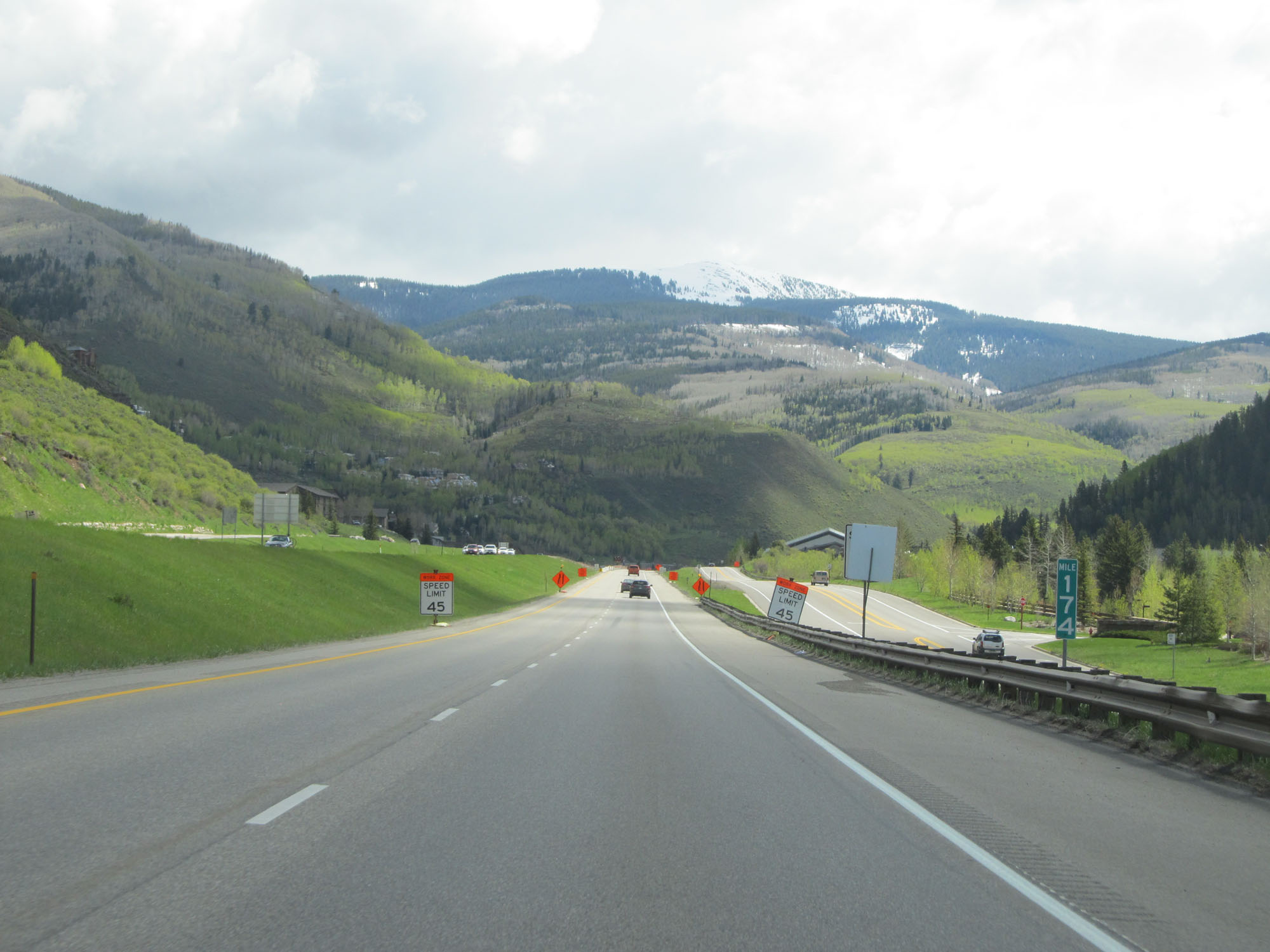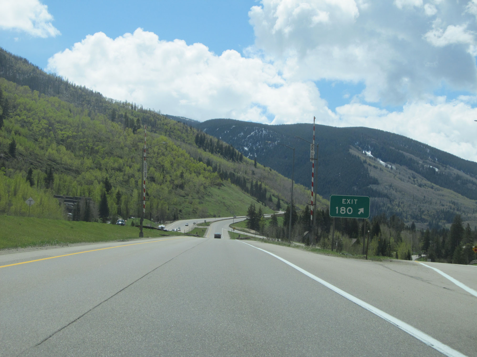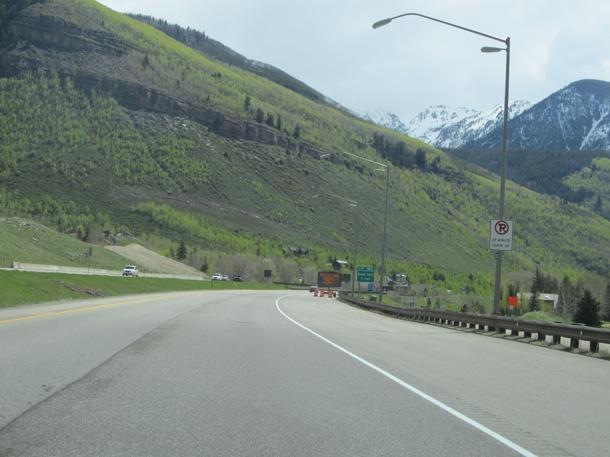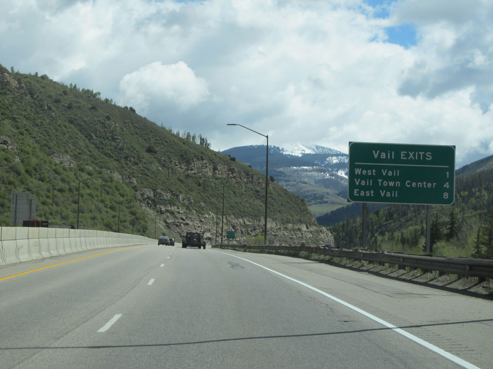 Interstate 70 East at Exit 173: West Vail (Photo taken 5/28/16). |