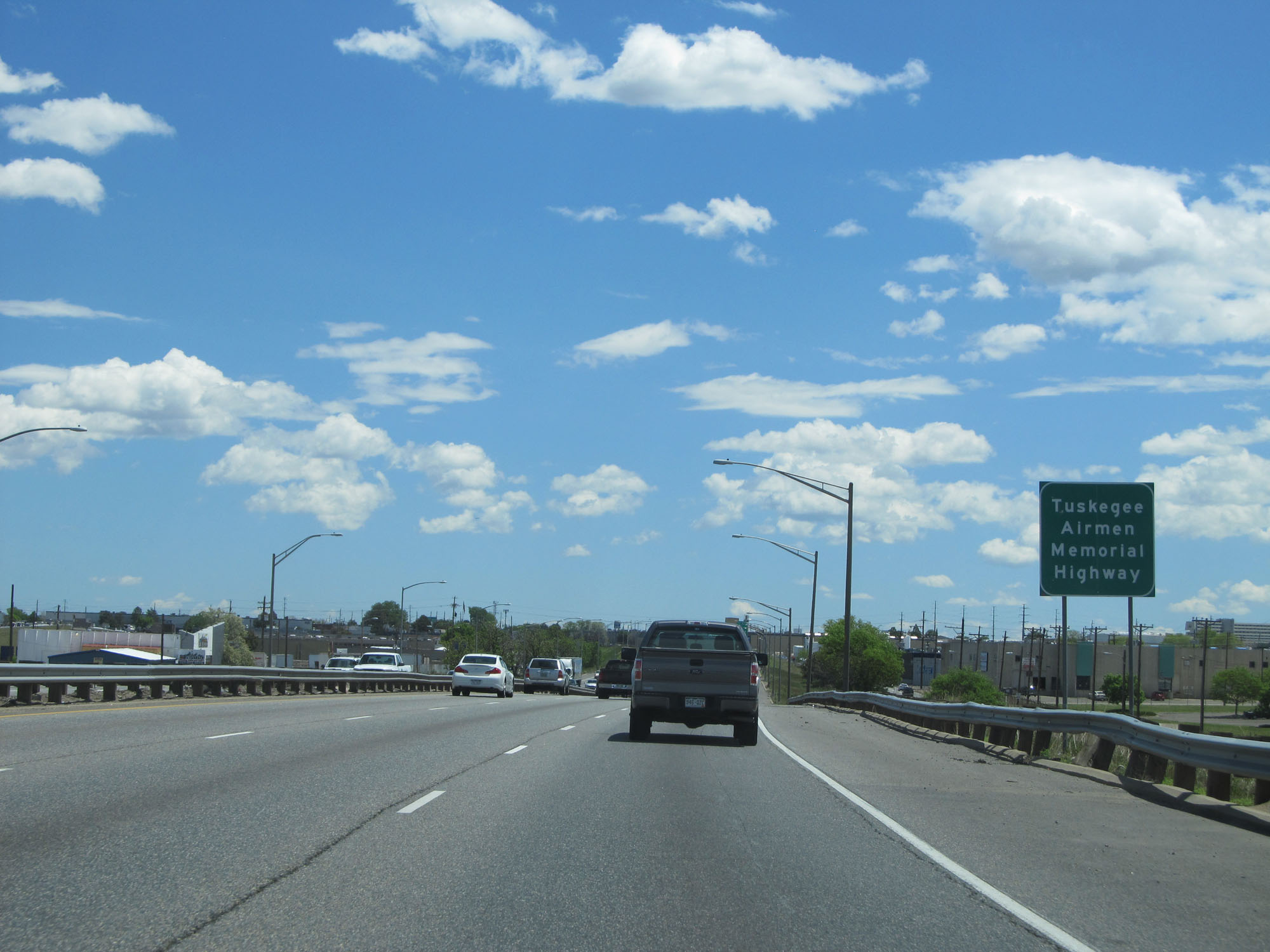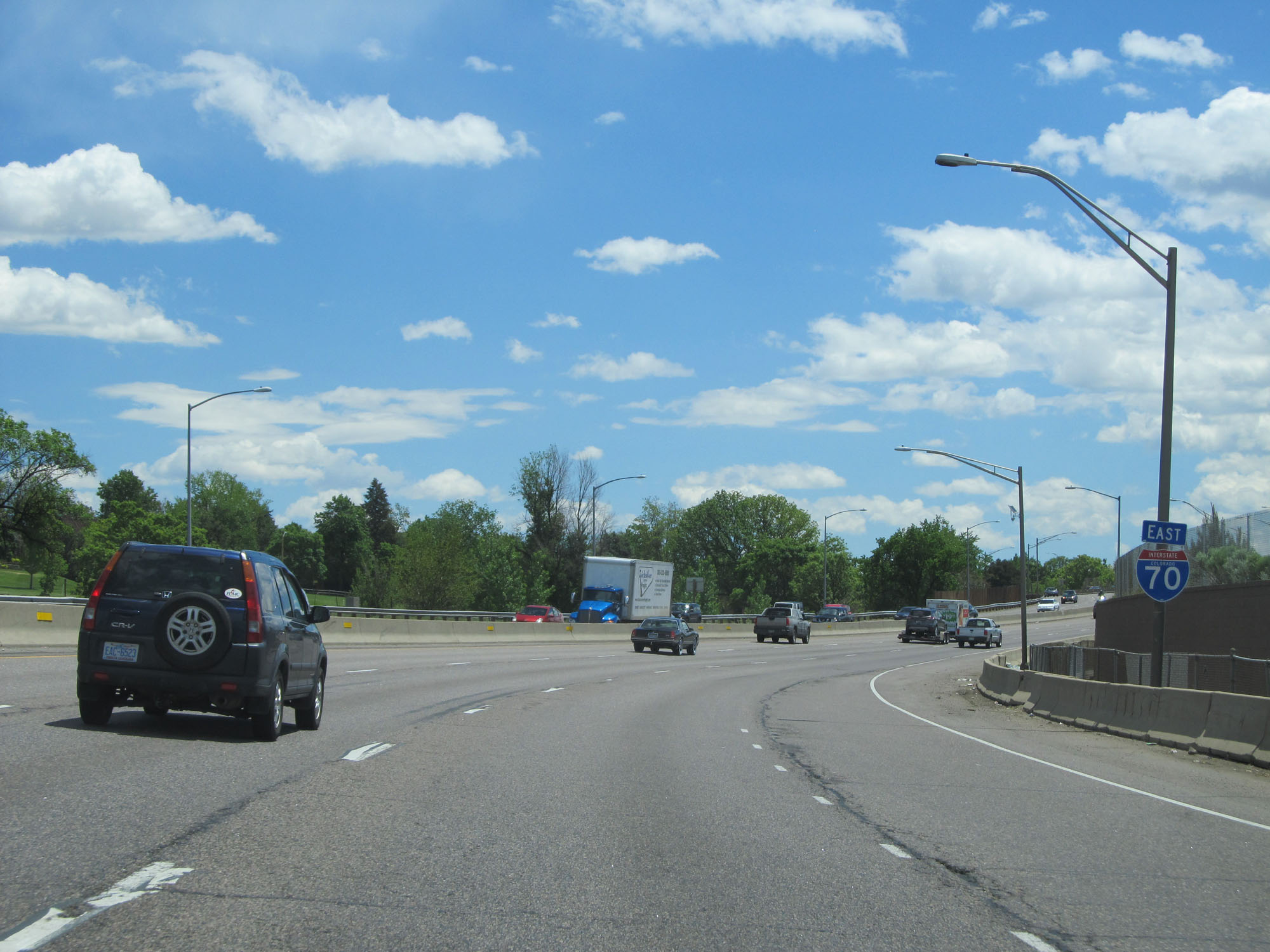 View on Interstate 70 East, looking at the elevated westbound lanes yet again. (Photo taken 5/28/16). |