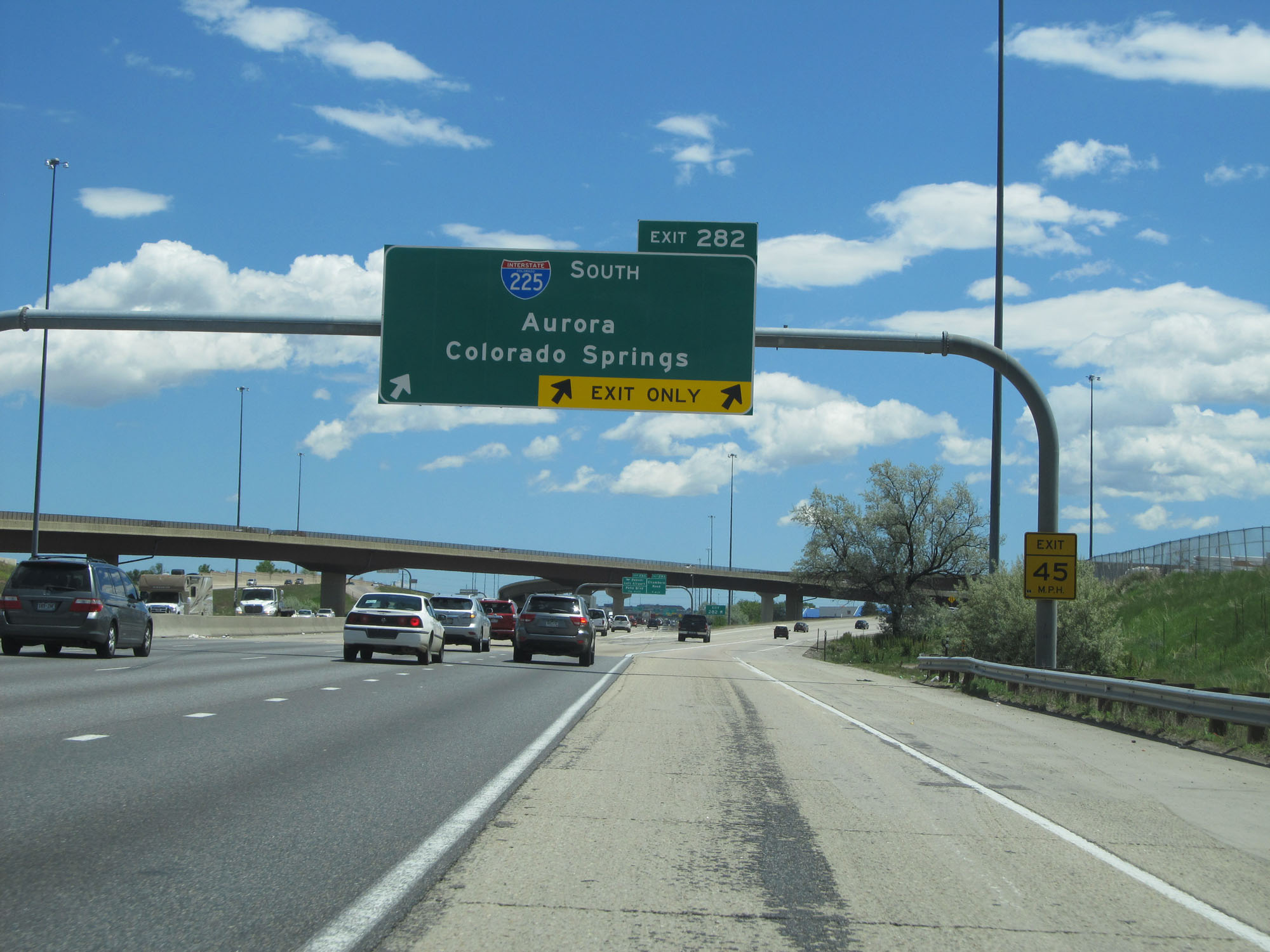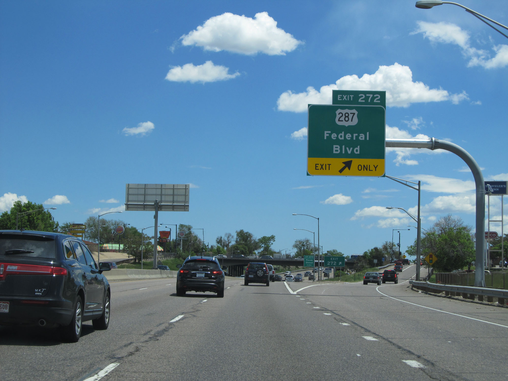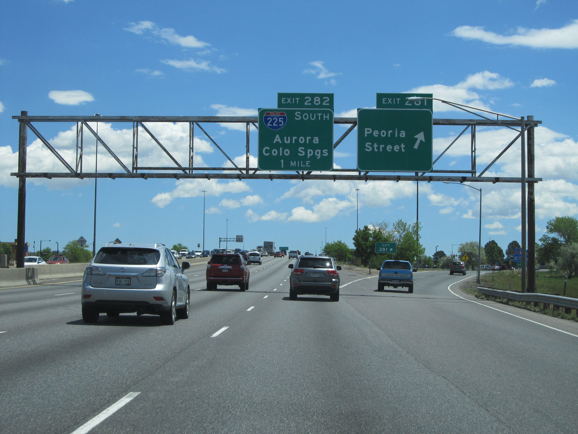 This sign lists the distances to the three upcoming exits to Vail. (Photo taken 5/28/16). |