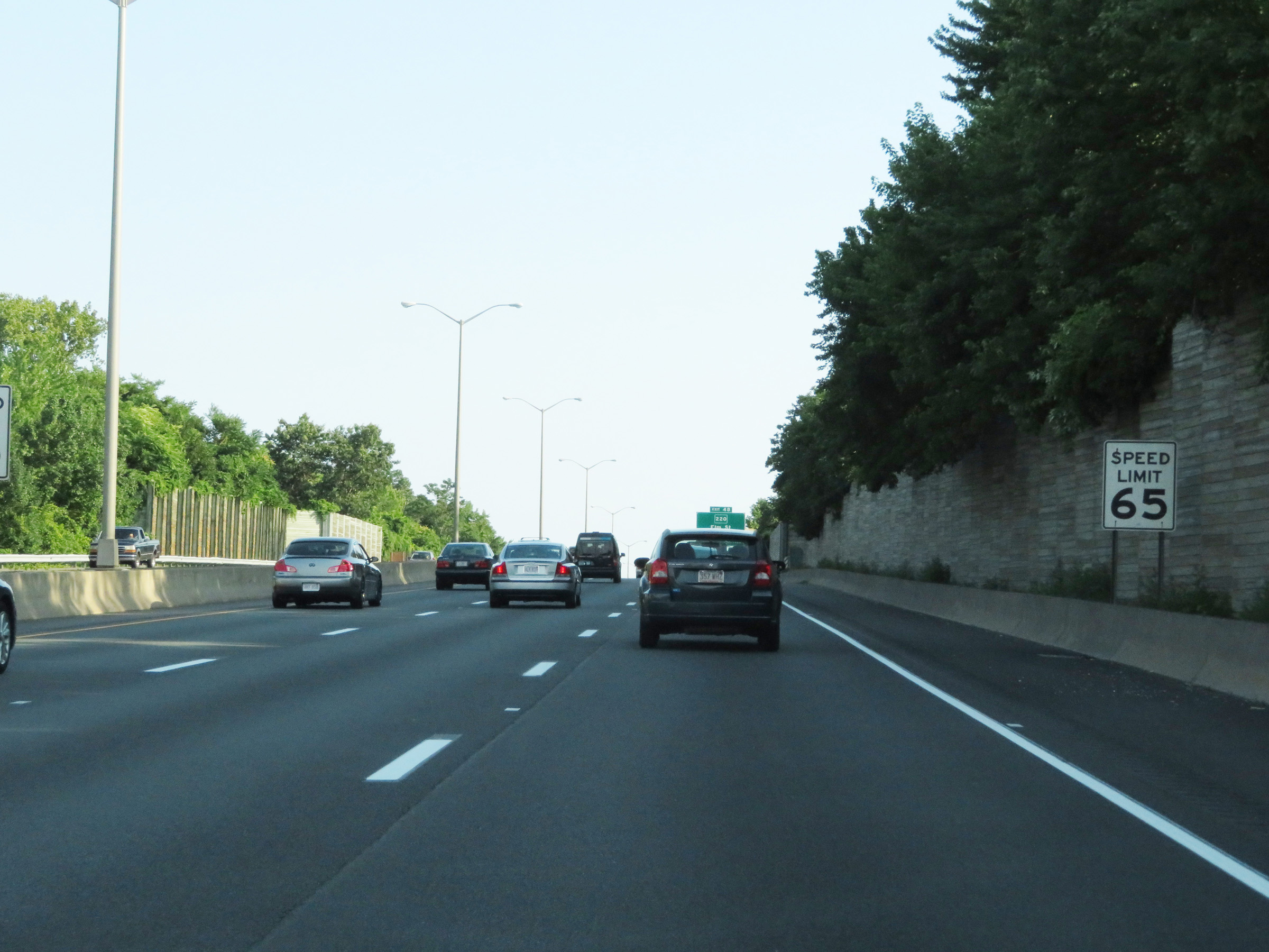 South of Exit 25S, the speed limit increases to 65 mph once again on Interstate 91 South. (Photo taken 8/5/17). |