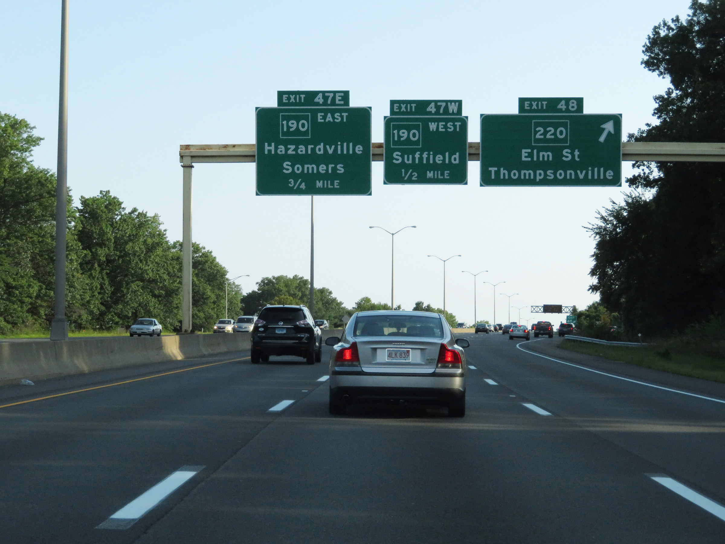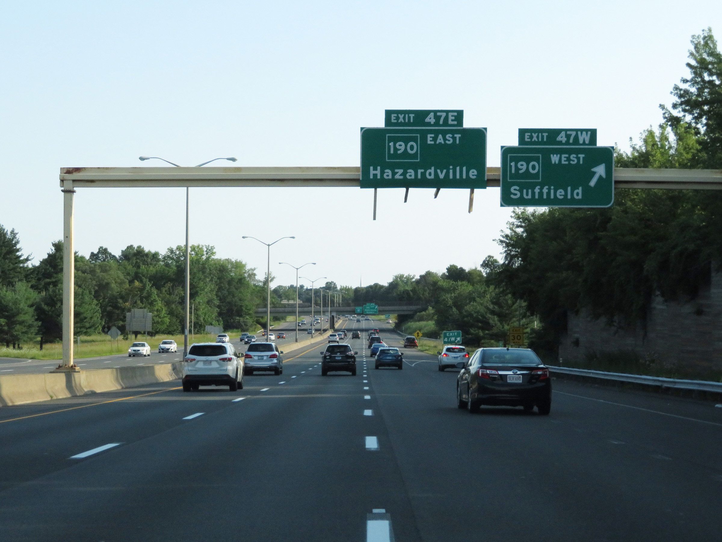 Interstate 91 South approaching Exit 20 - 1/2 mile. (Photo taken 8/5/17). |