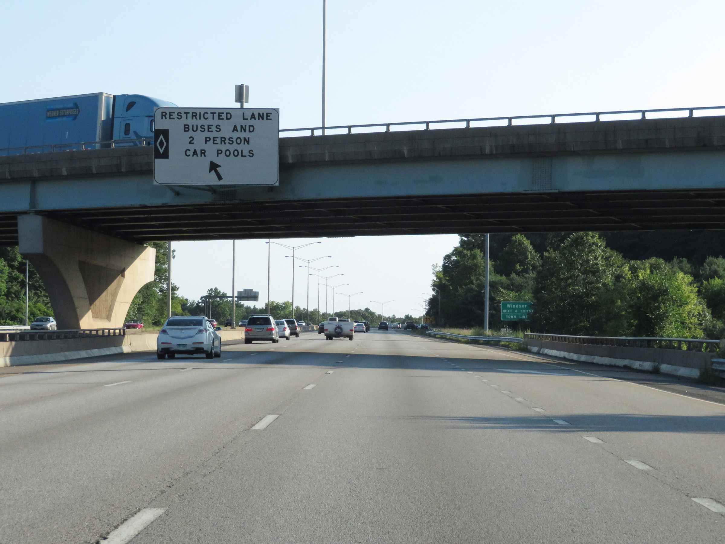 Interstate 91 South at Exit 25S: CT 3 South - Wethersfield (Photo taken 8/5/17). |