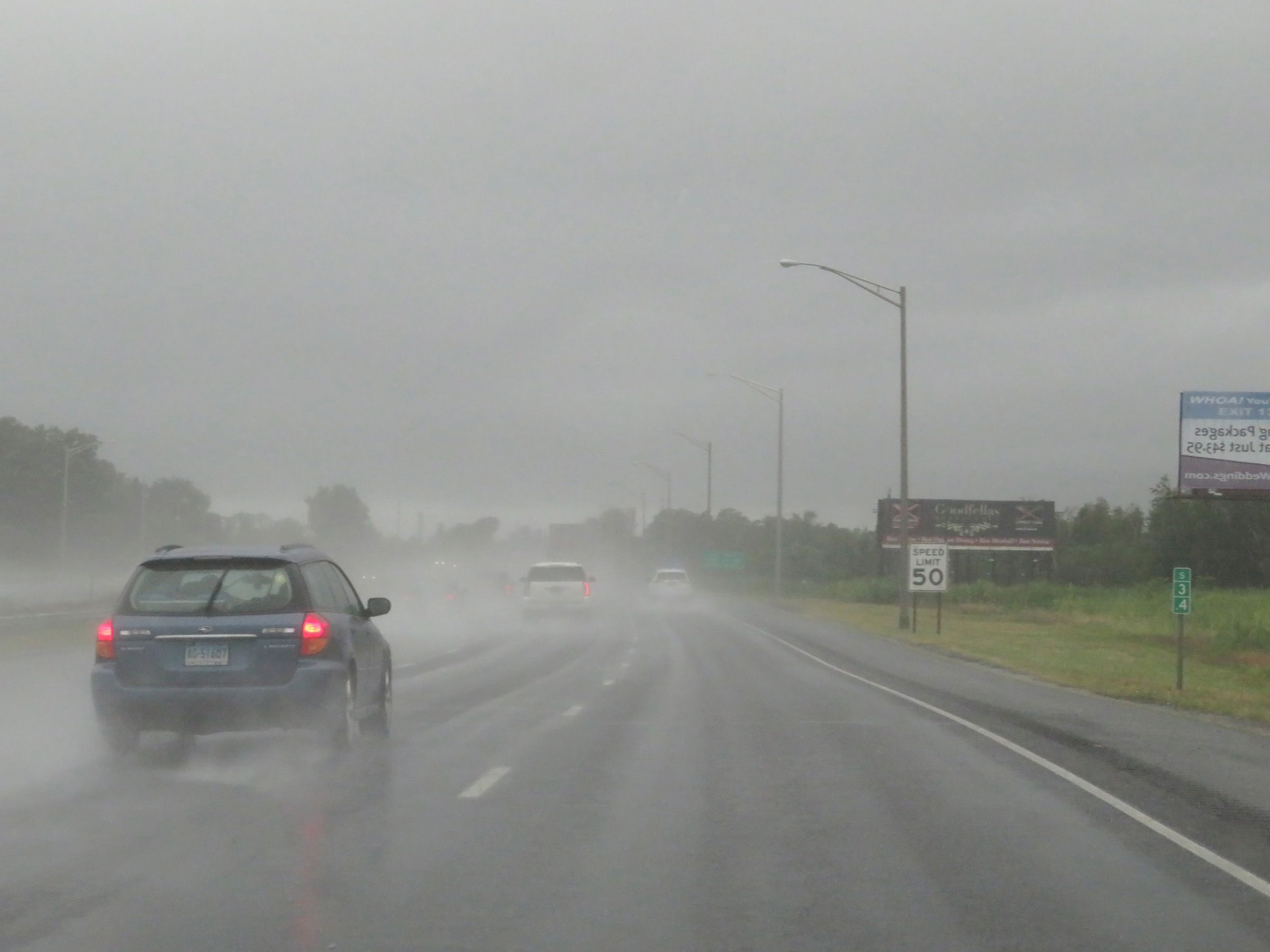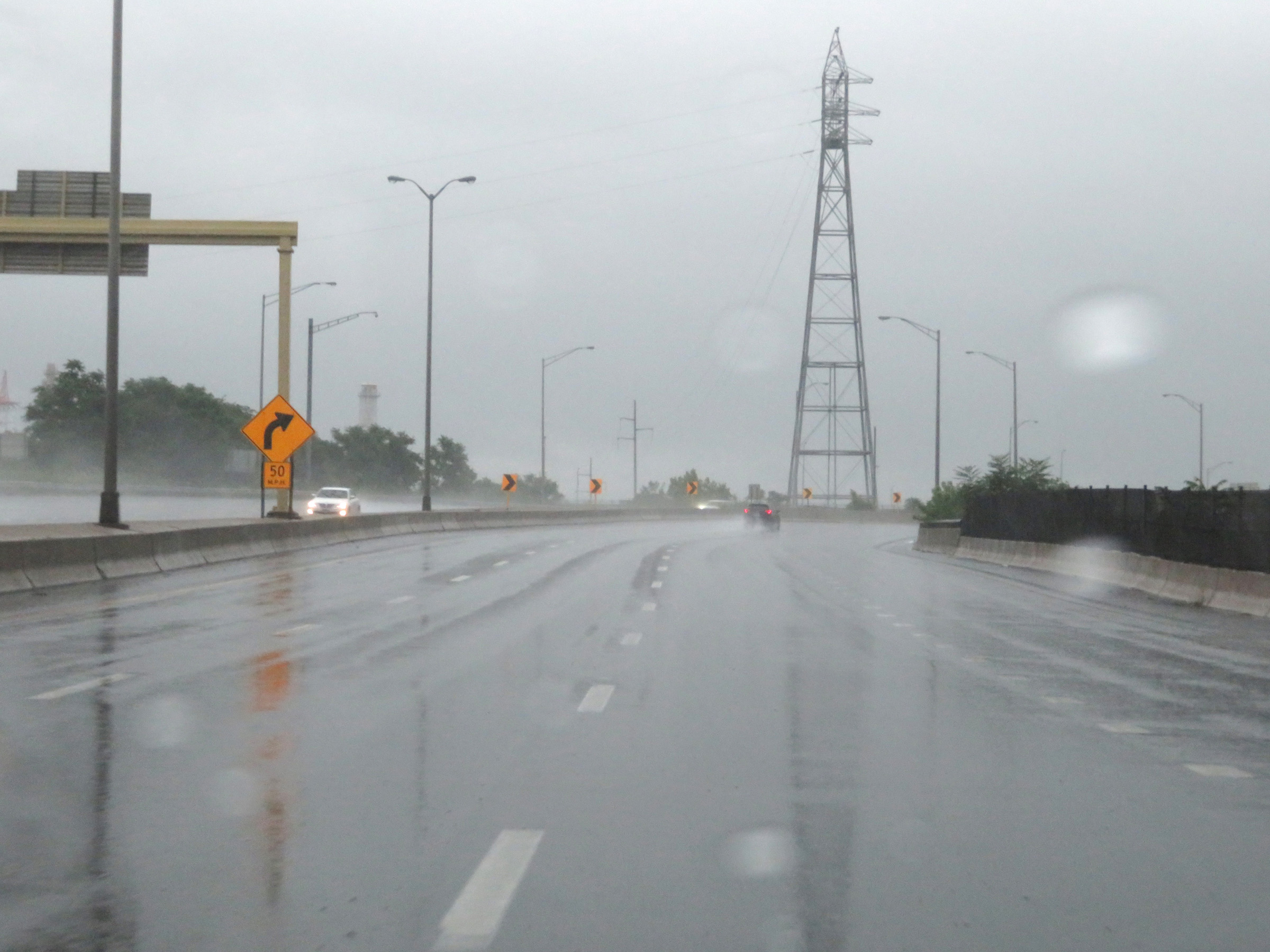 At mile marker 3.4, the speed limit decreases to 50 mph as Interstate 91 South approaches New Haven. (Photo taken 8/5/17). |