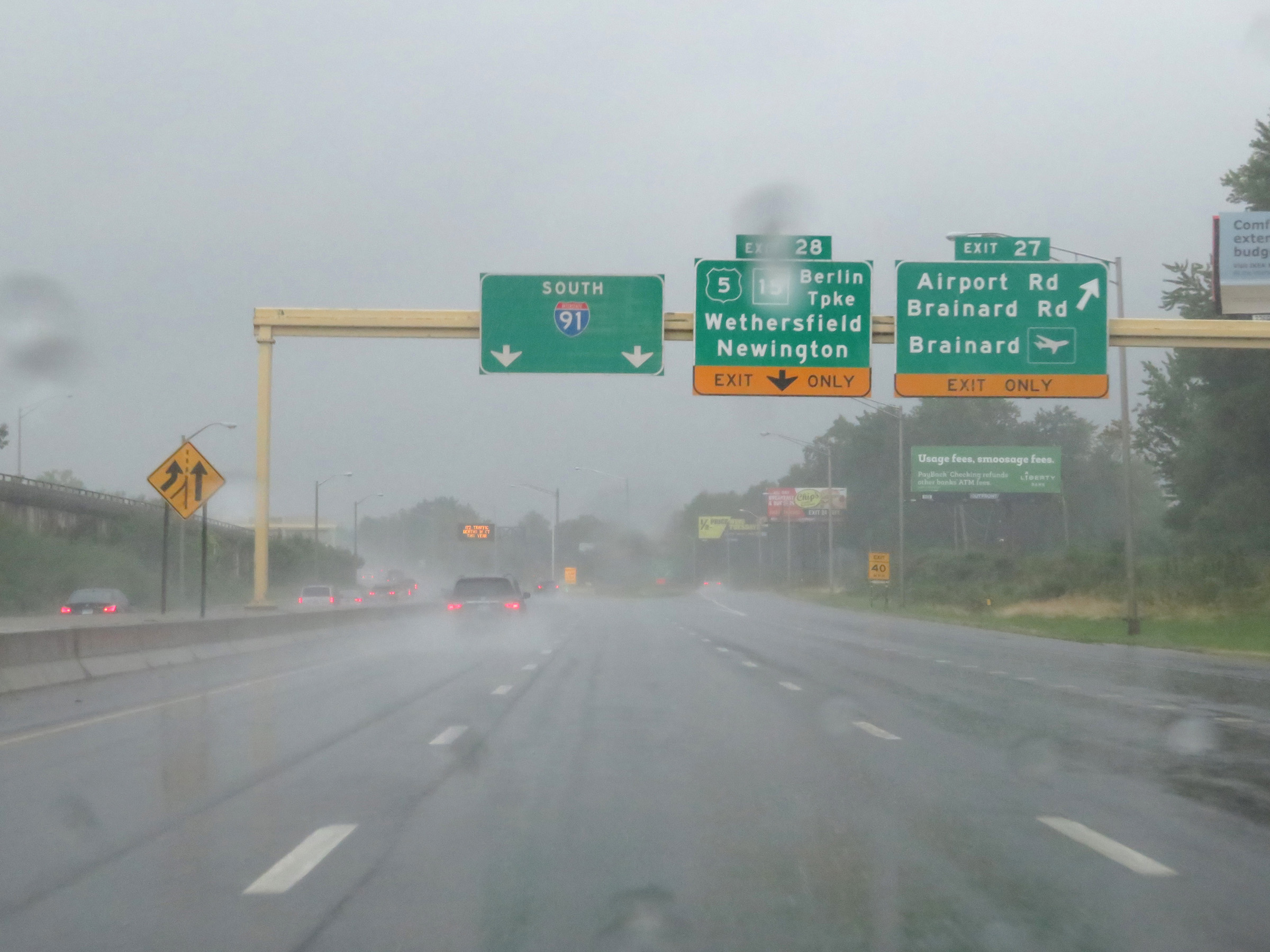 Interstate 91 South at Exit 26: Old Wethersfield (Photo taken 8/5/17). |