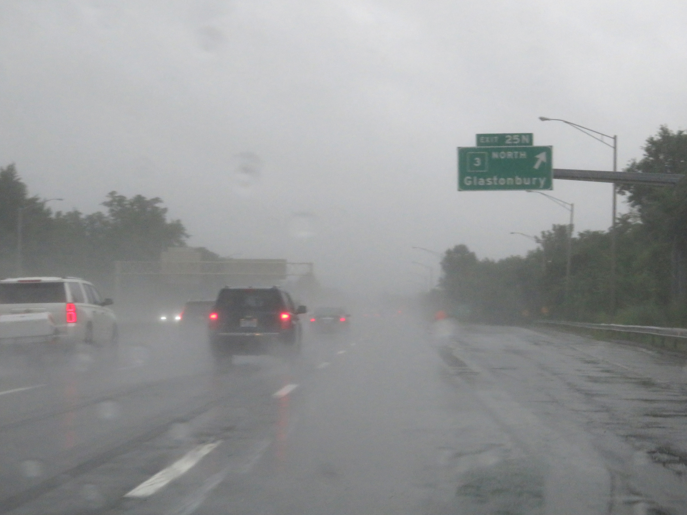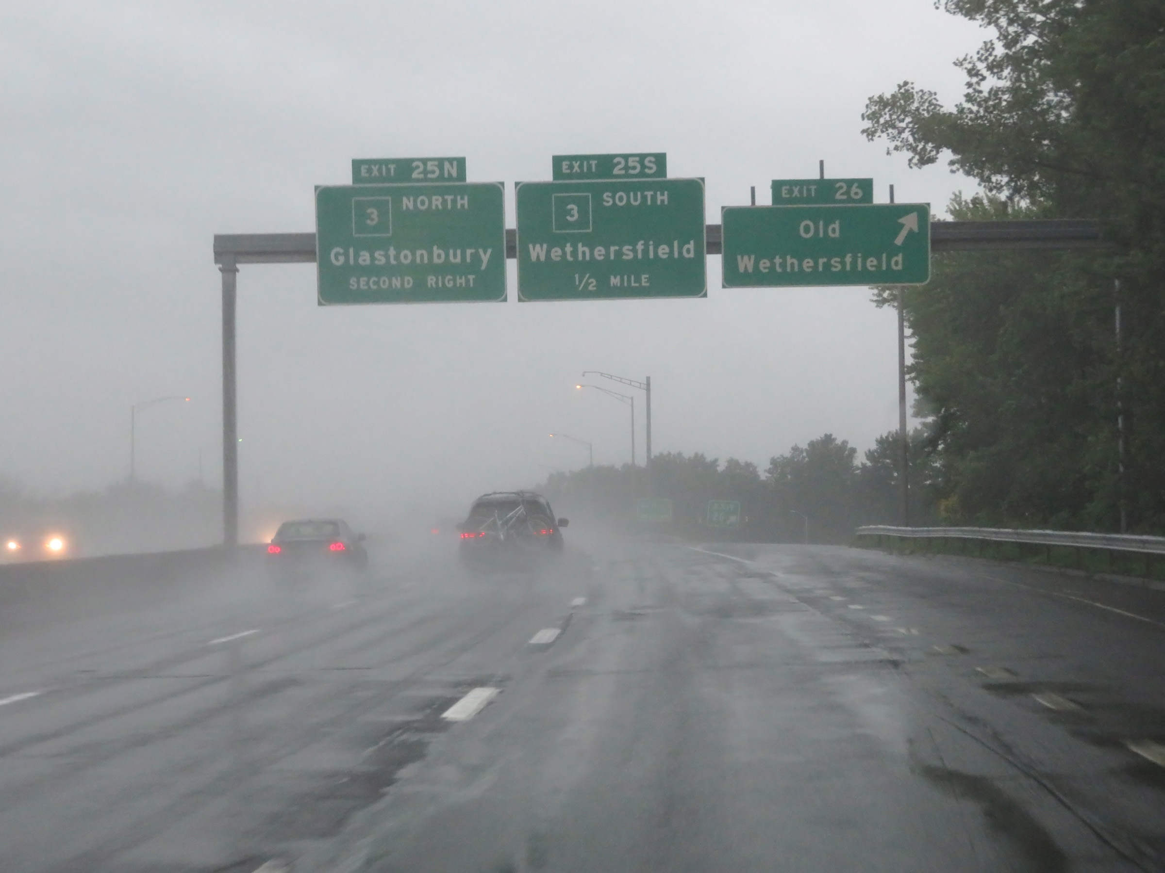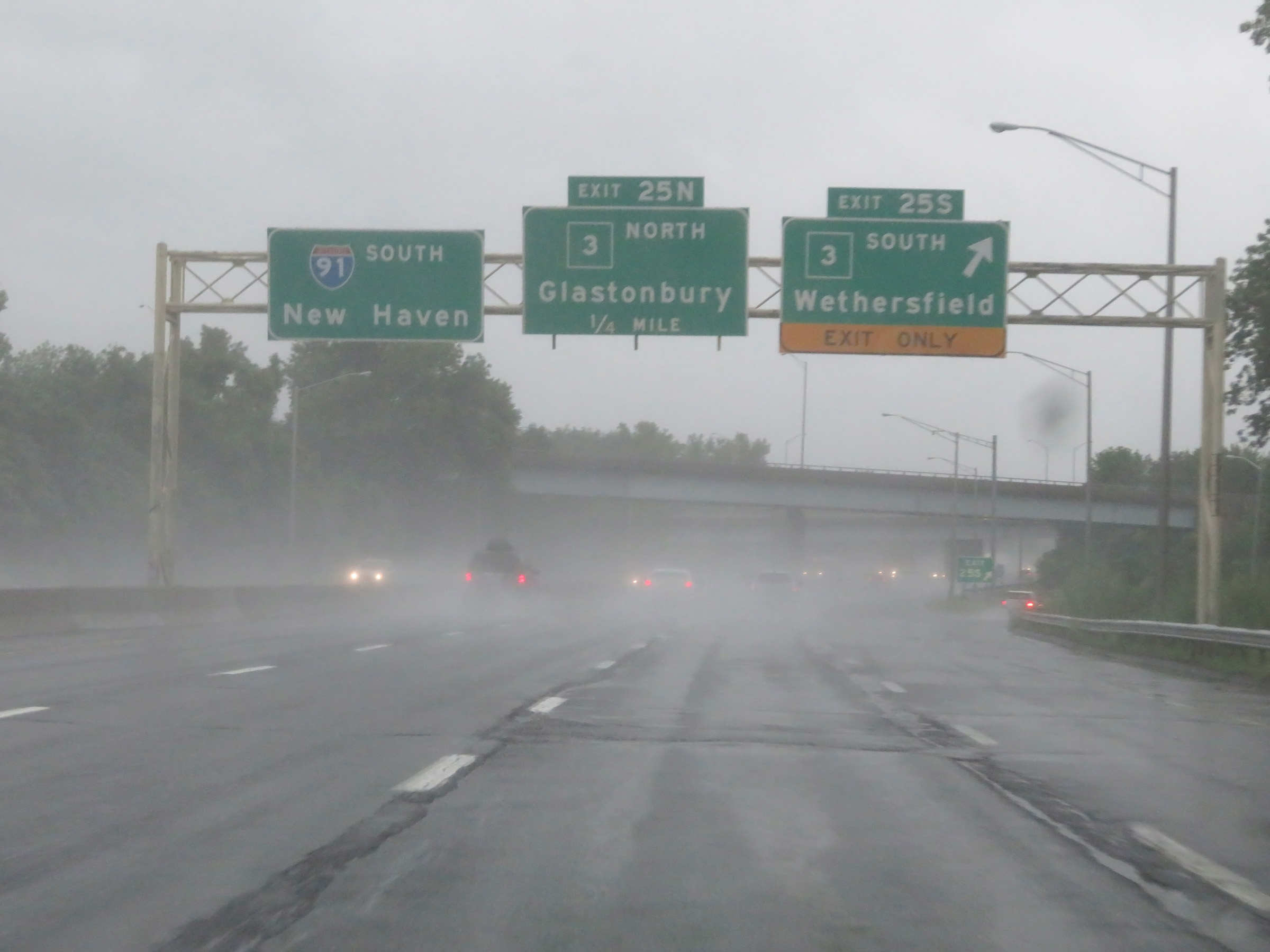 Interstate 91 South at Exit 25N: CT 3 North - Glastonbury (Photo taken 8/5/17). |