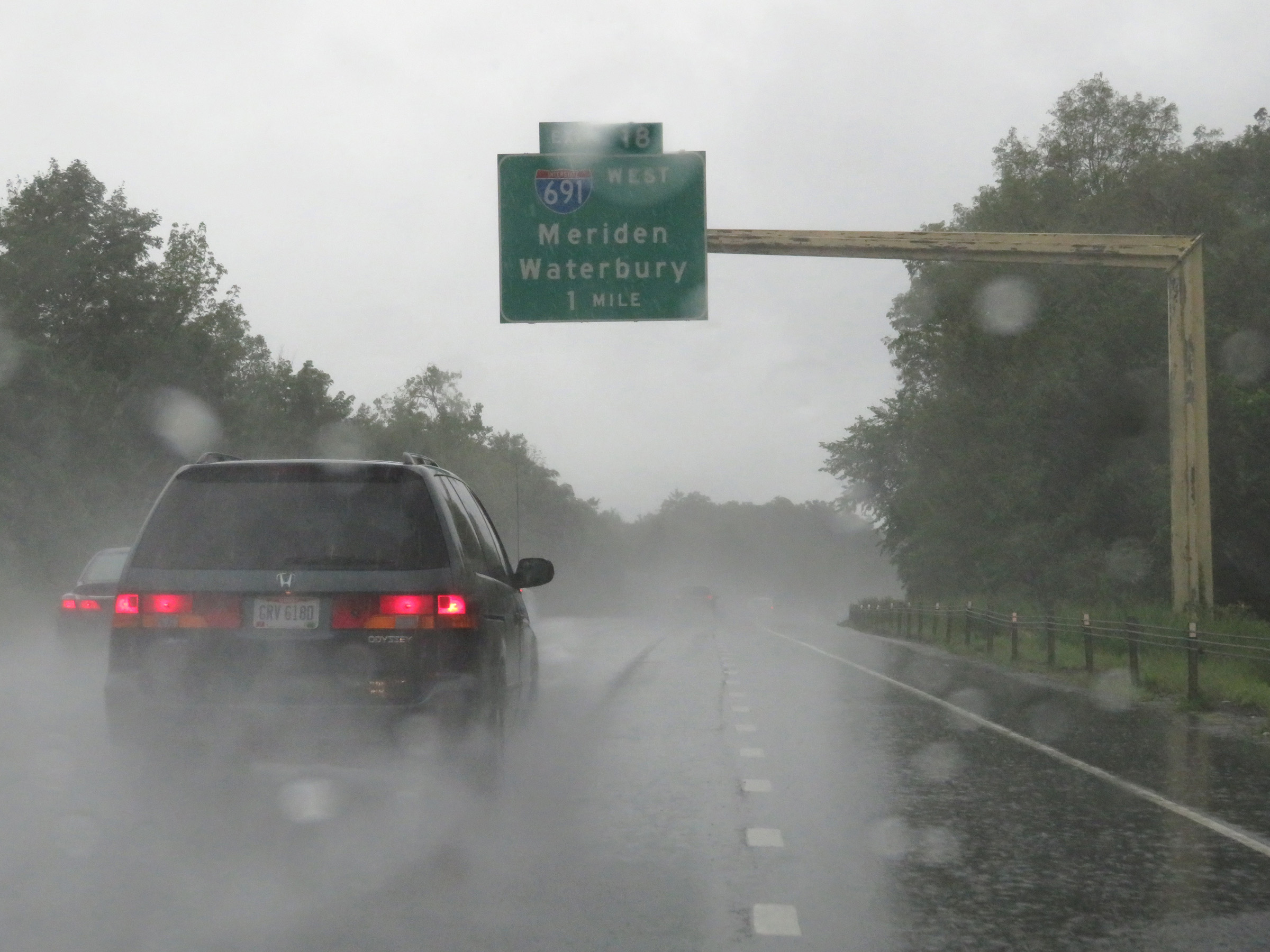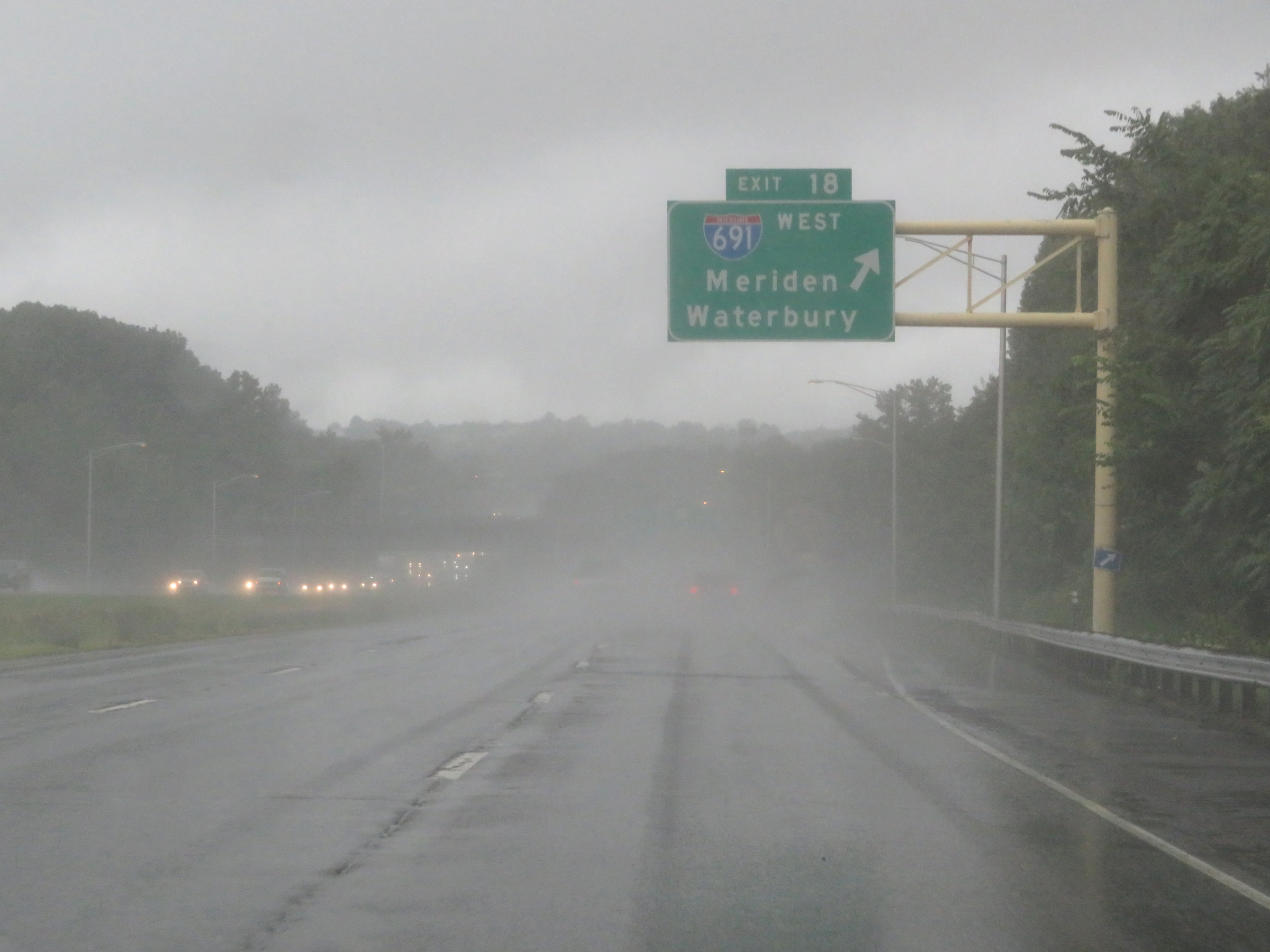Interstate 91 South at Exit 18: Interstate 691 West - Meriden / Waterbury (Photo taken 8/5/17). |