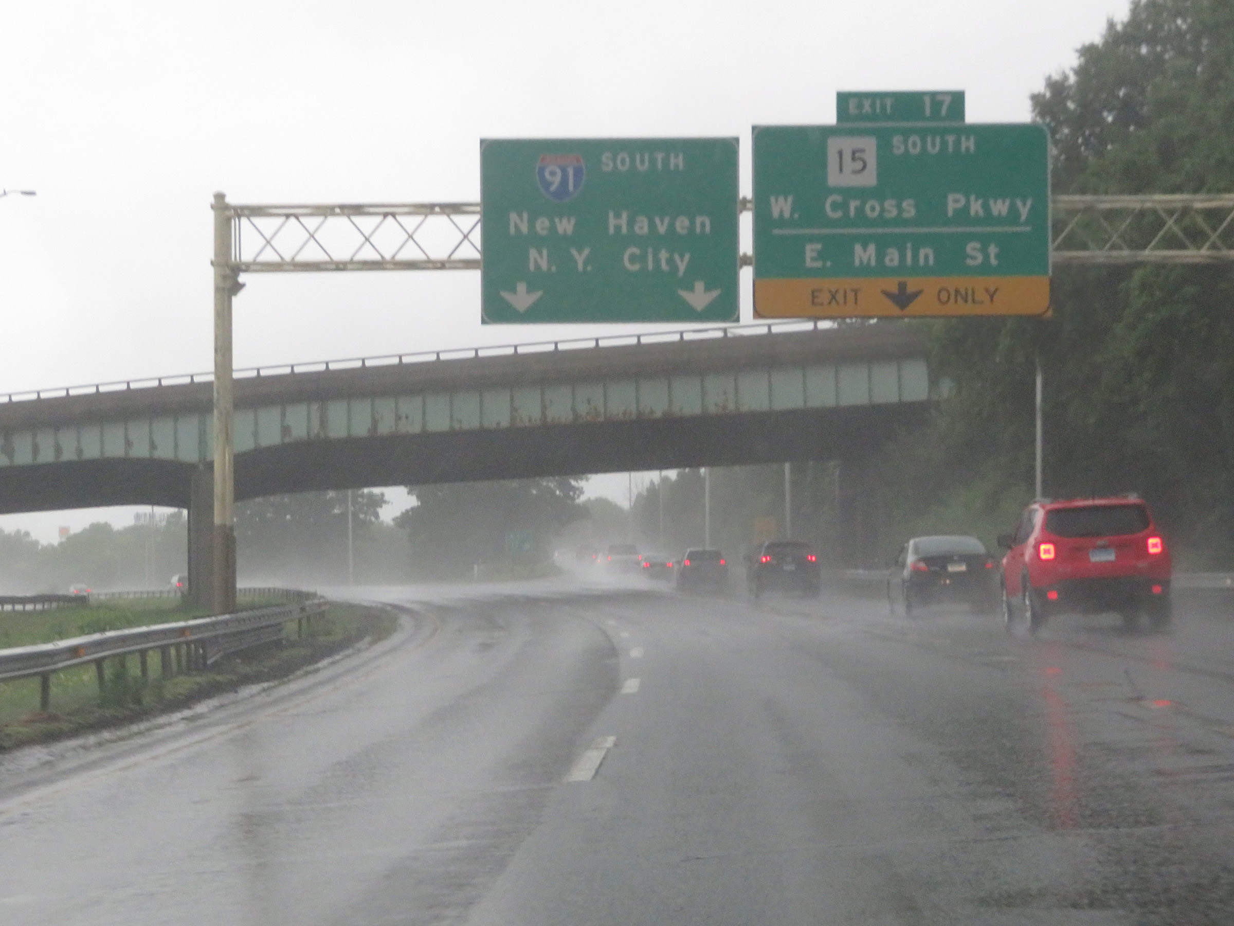 Interstate 91 South at Exit 17: CT 15 South - Wilbur Cross Pkwy / East Main St (Photo taken 8/5/17). |