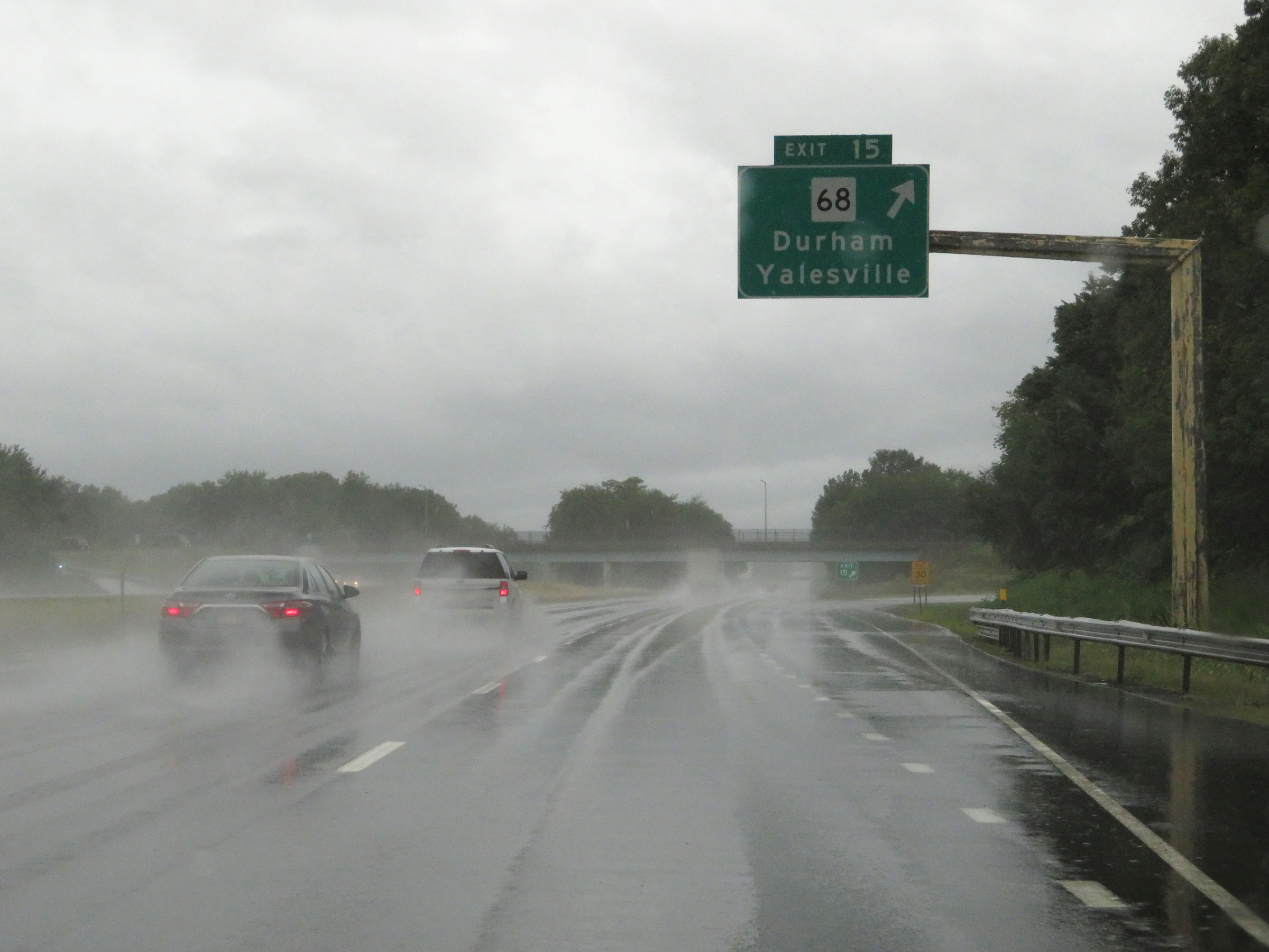 Interstate 91 South at Exit 15: CT 68 - Durham / Yalesville (Photo taken 8/5/17). |