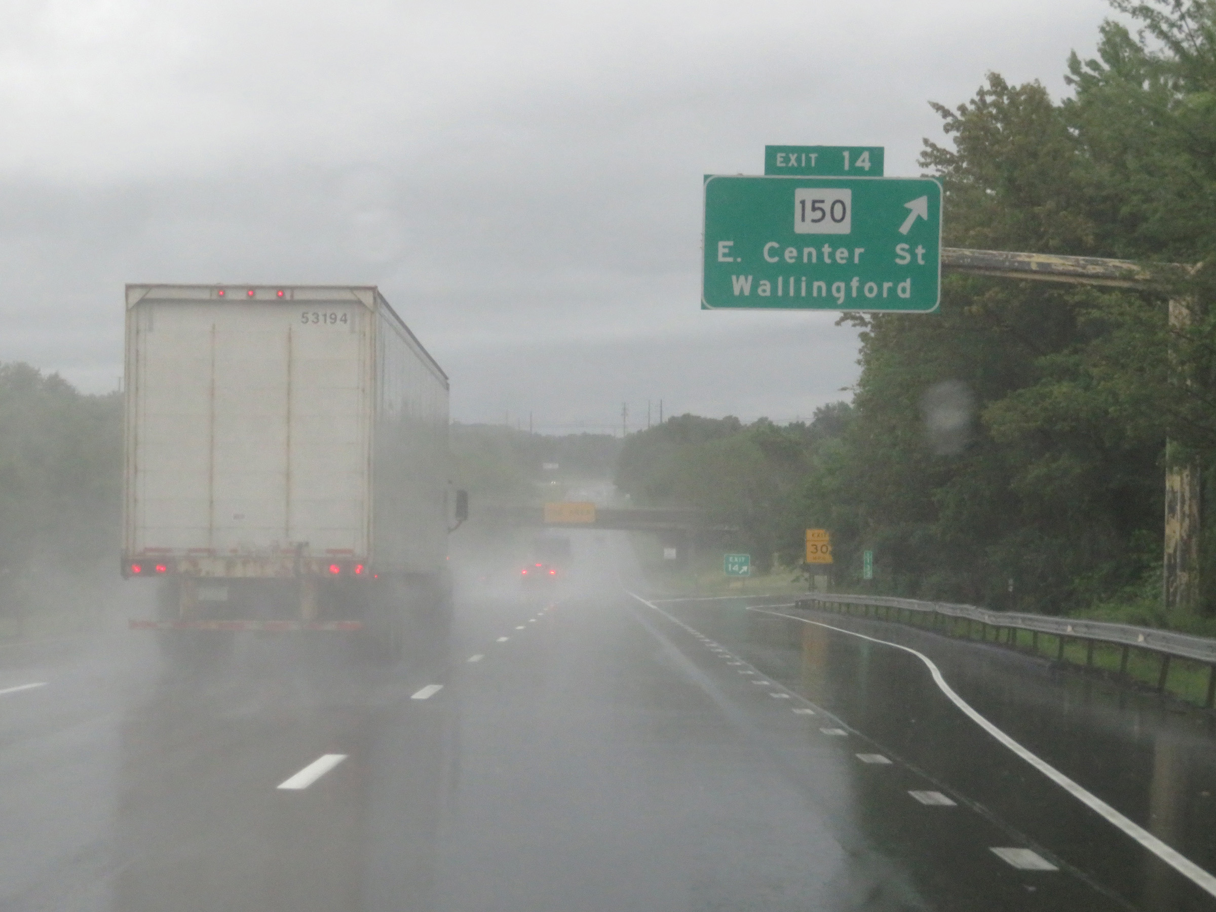 Interstate 91 South at Exit 14: CT 150 - East Center St / Wallingford (Photo taken 8/5/17). |
