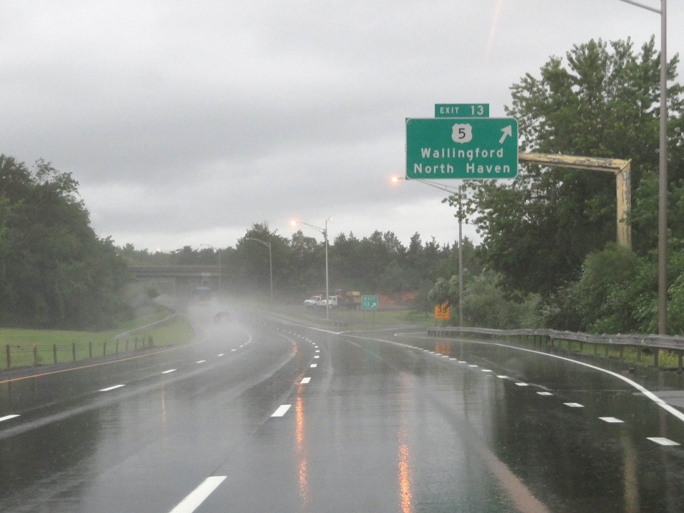 Interstate 91 South at Exit 13: US 5 - Wallingford / North Haven (Photo taken 8/5/17). |