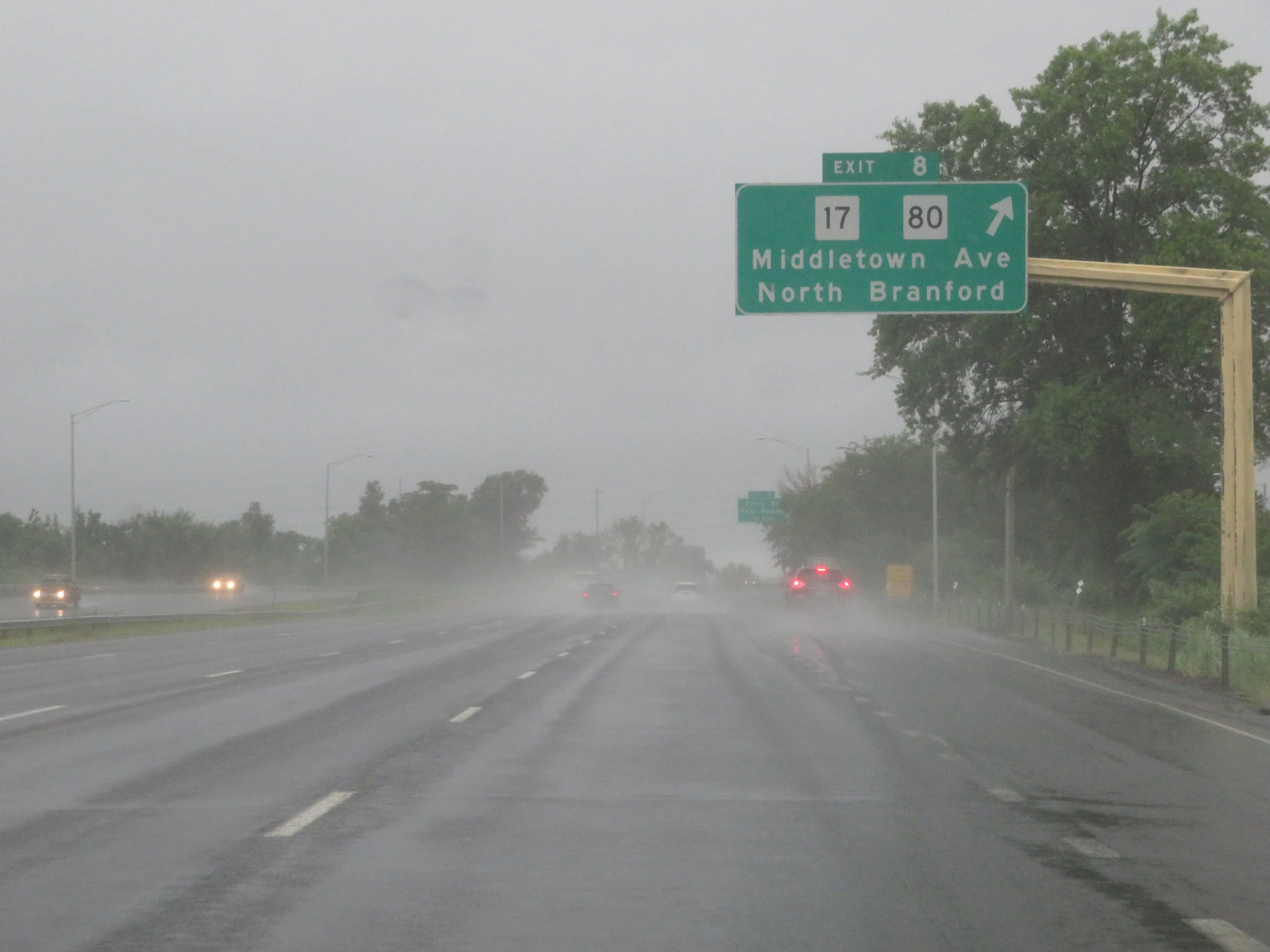 Interstate 91 South at Exit 8: CT 17 / CT 80 - Middletown Ave / North Branford (Photo taken 8/5/17). |