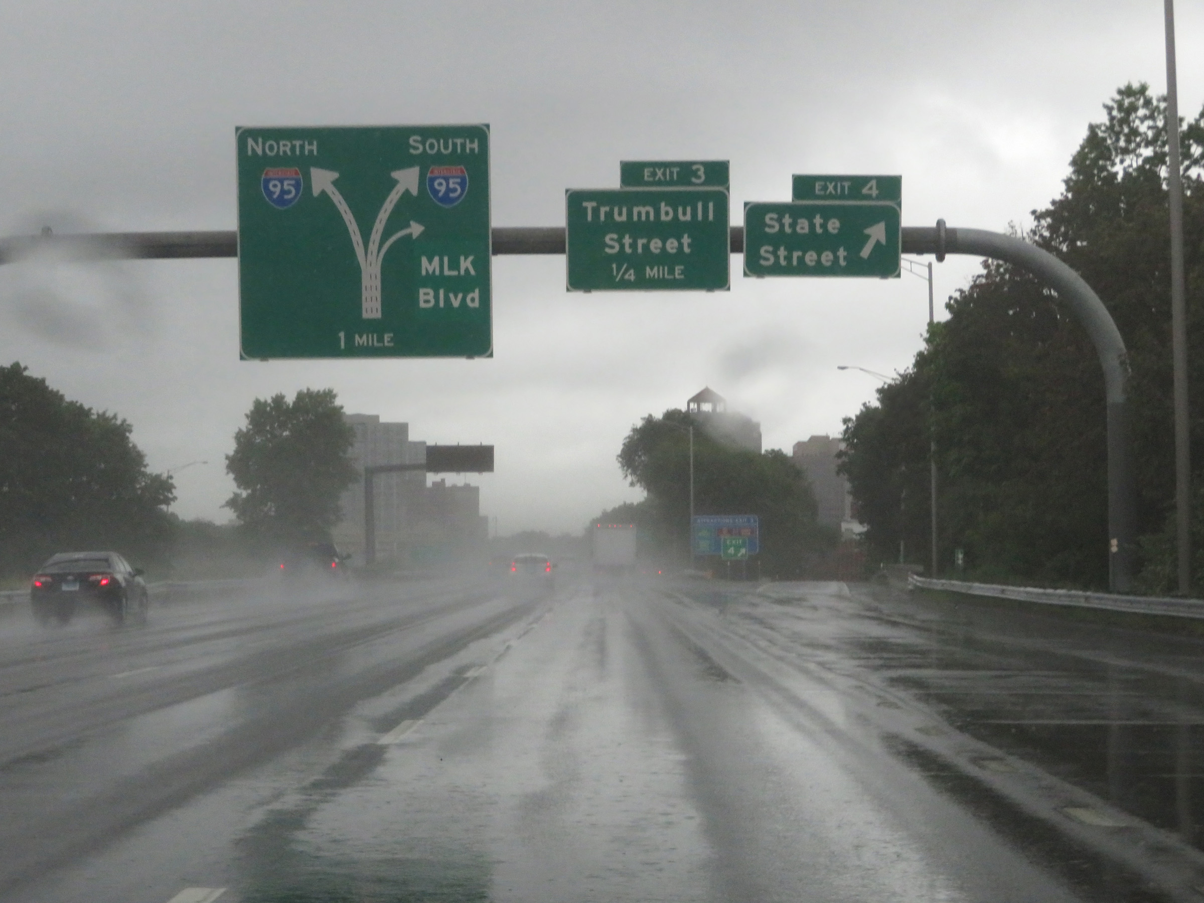 Interstate 91 South at Exit 3: Trumbull Street (Photo taken 8/5/17). |