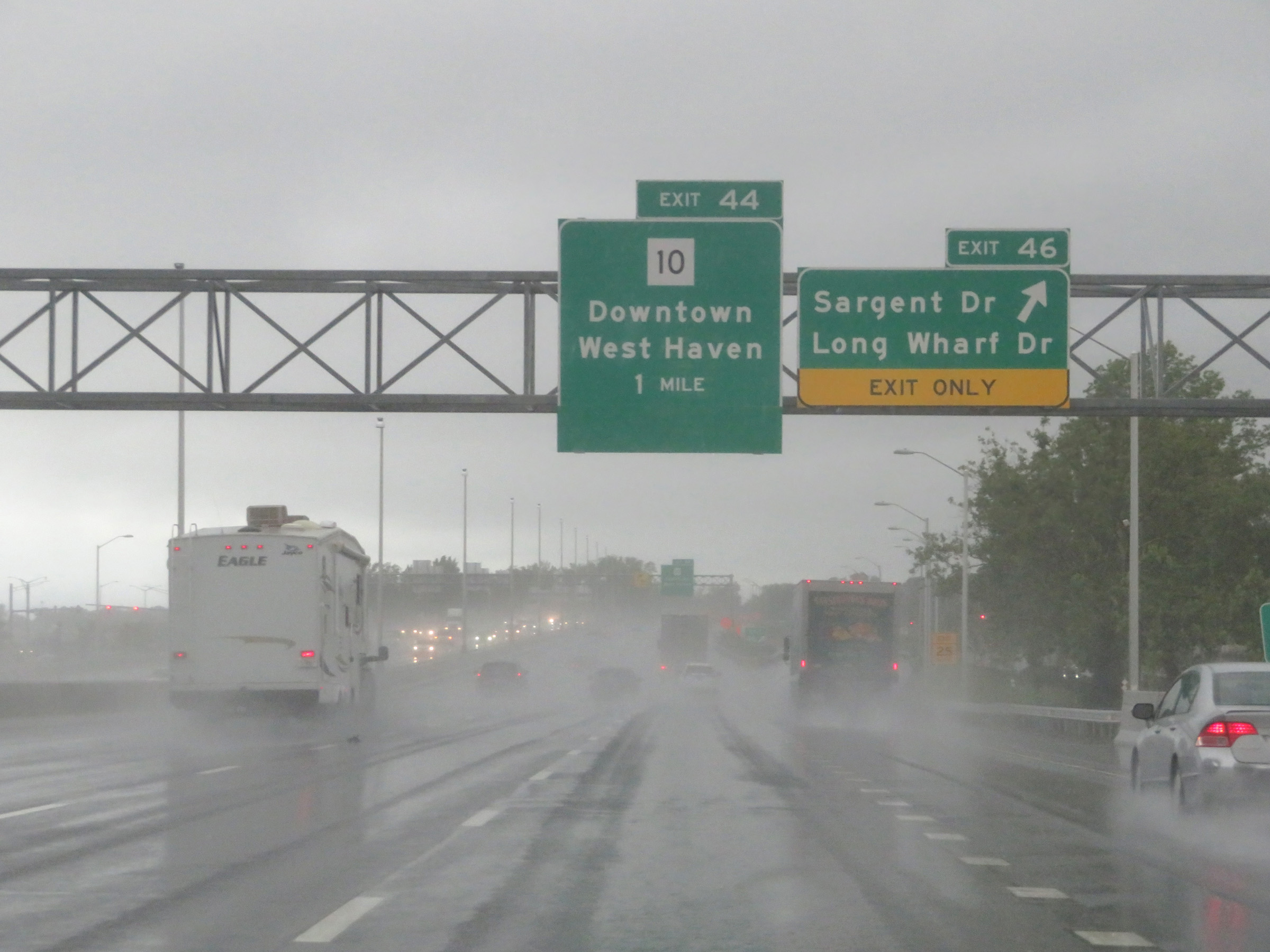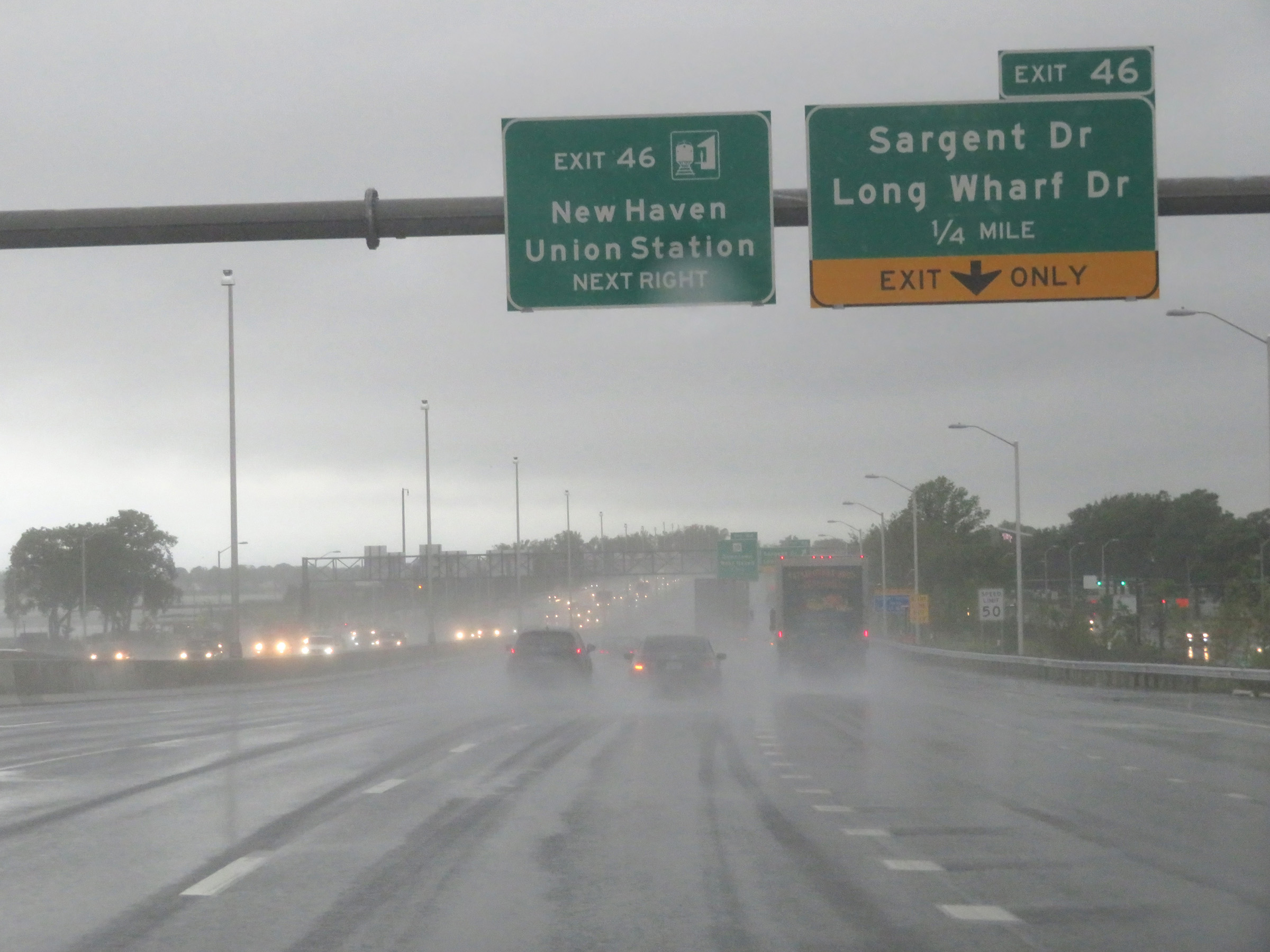 Interstate 95 South at Exit 46: Sargent Dr / Long Wharf Dr (Photo taken 8/5/17). |