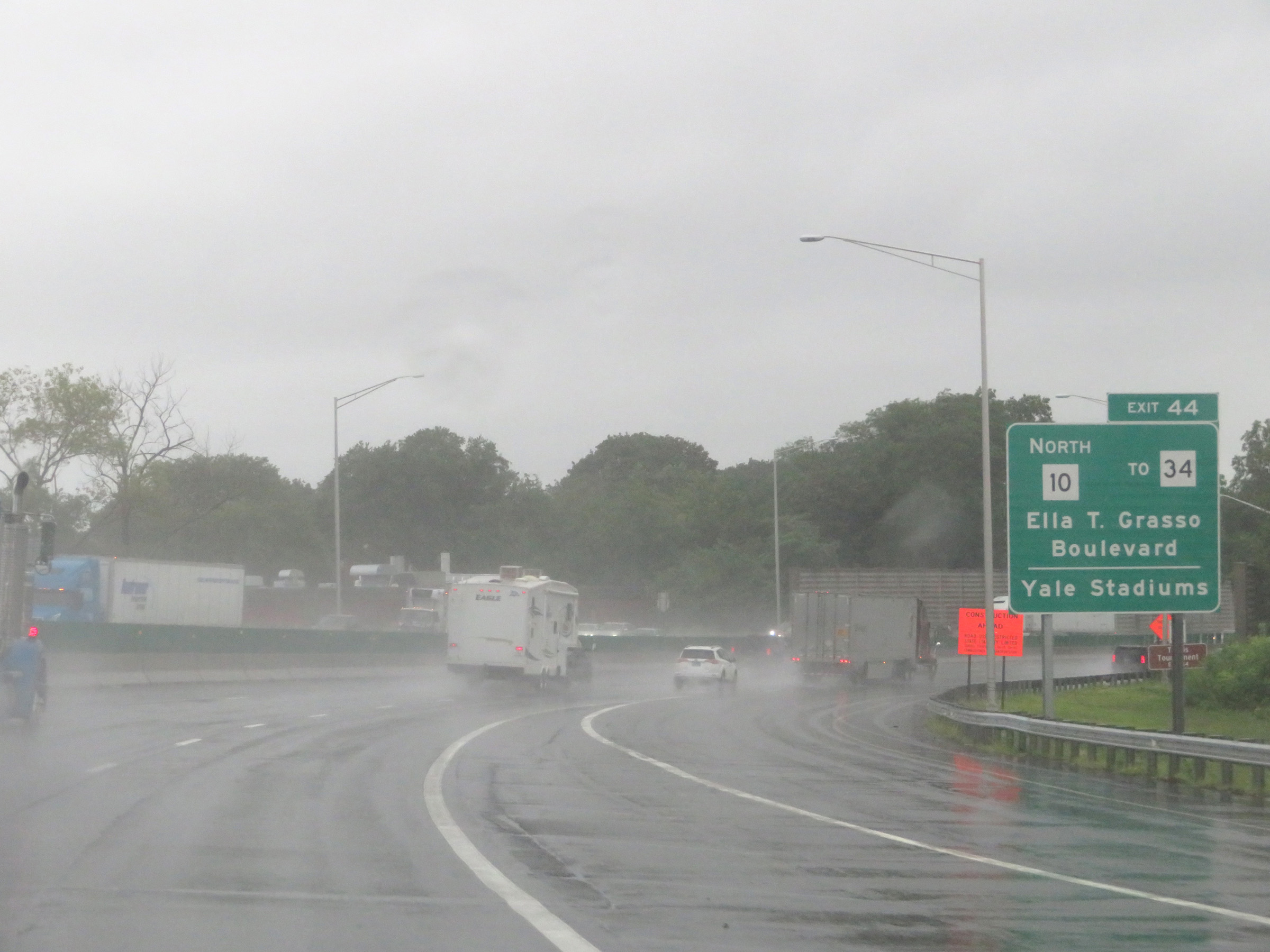 Take Exit 44 to CT 34 (Ella T. Grasso Boulevard) via CT 10 North, and also to the Yale Stadiums. (Photo taken 8/5/17). |