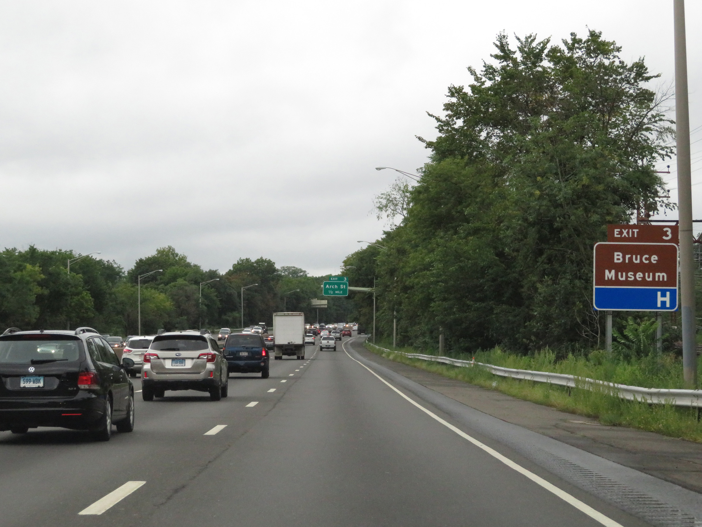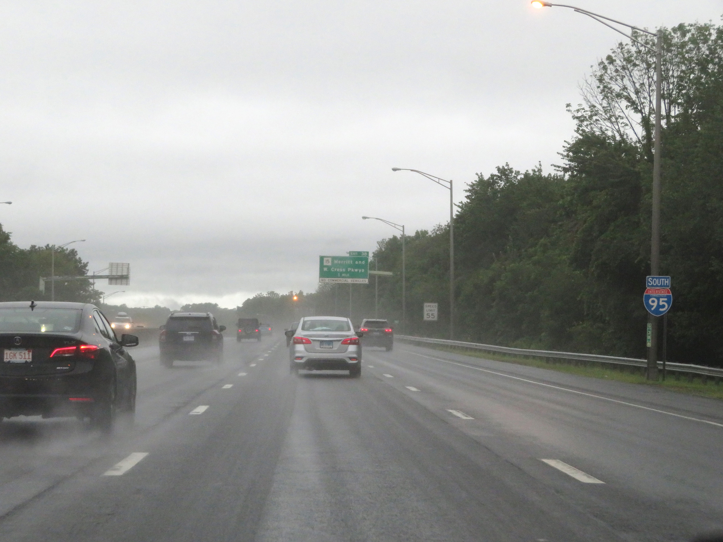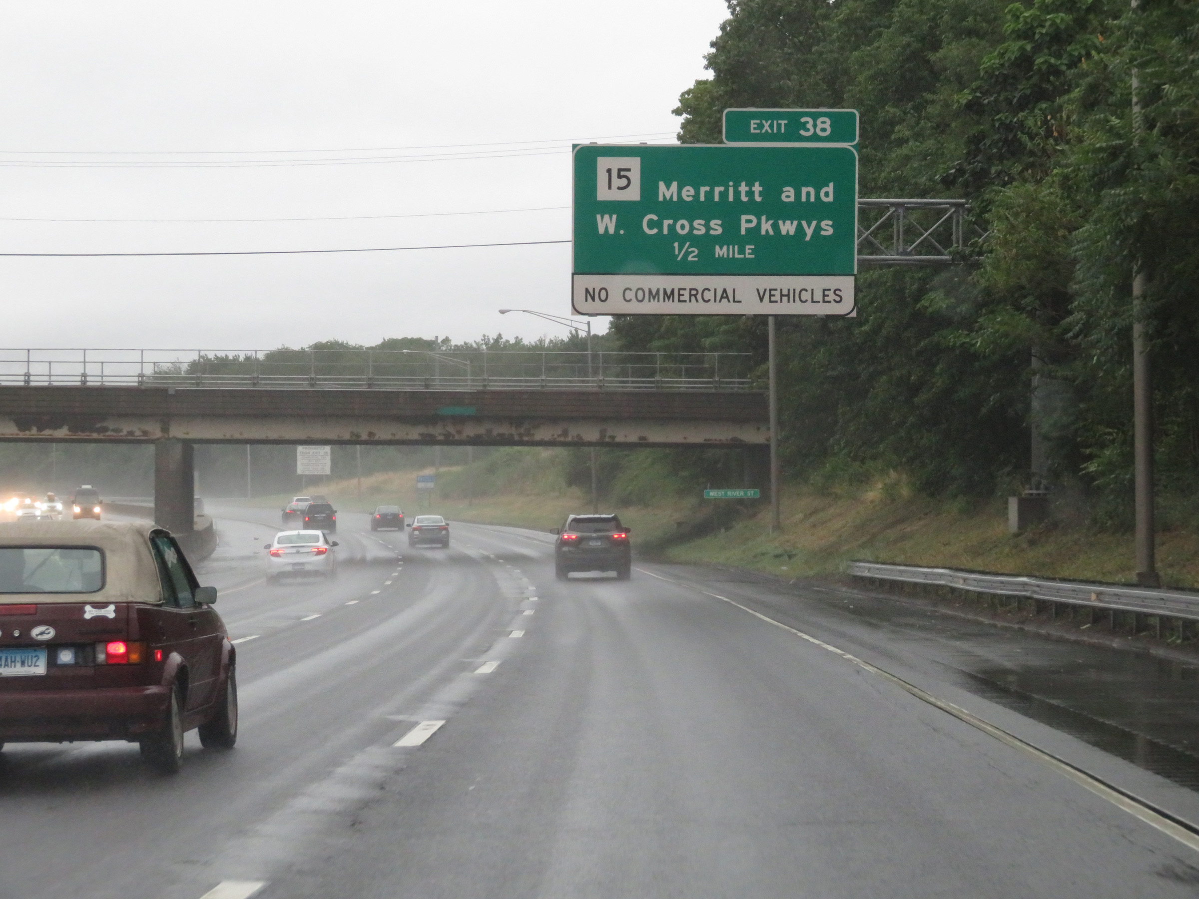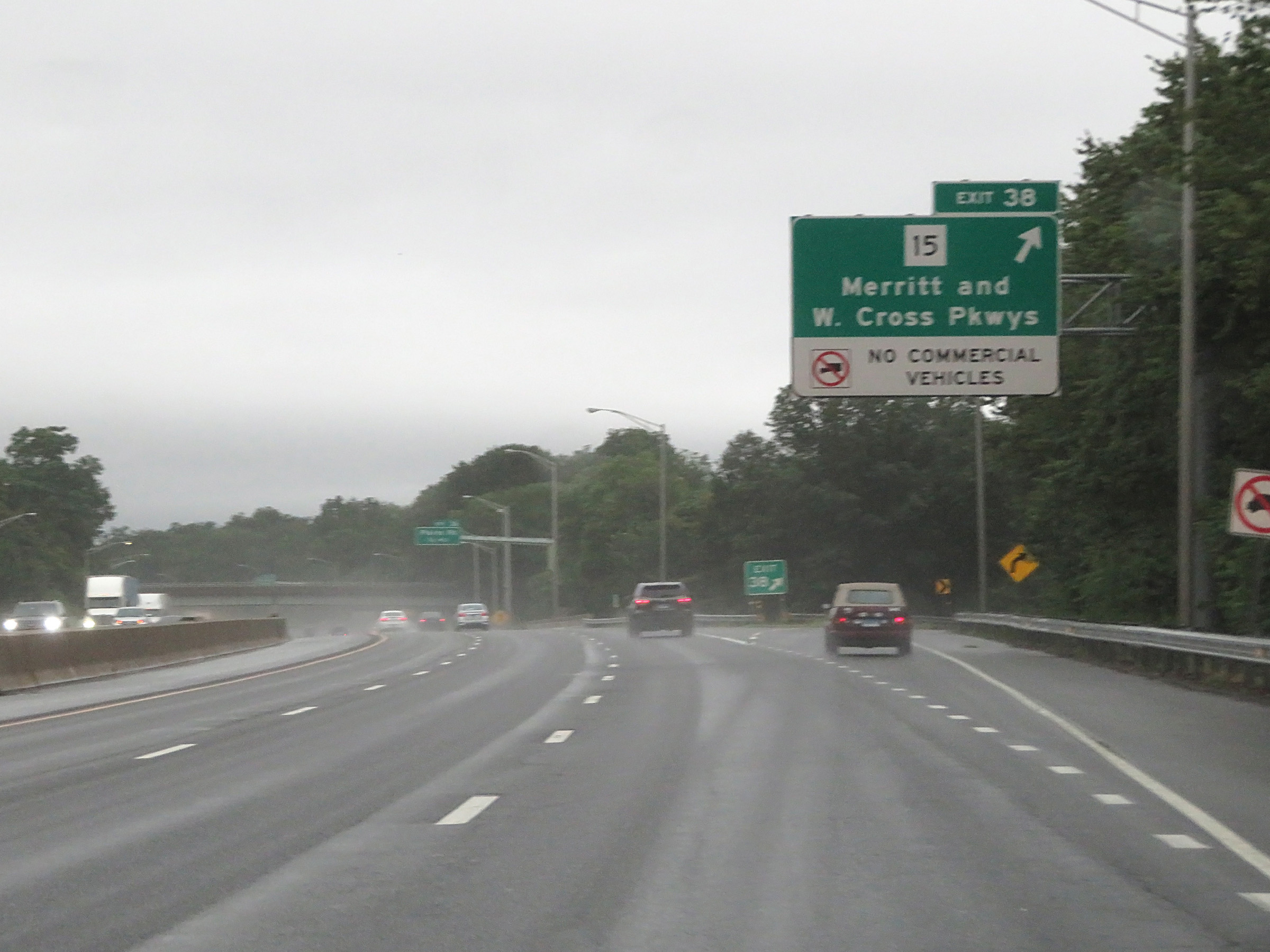 Interstate 95 South at Exit 38: CT 15 - Merritt Pkwy / Wilbur Cross Pkwy (Photo taken 8/5/17). |