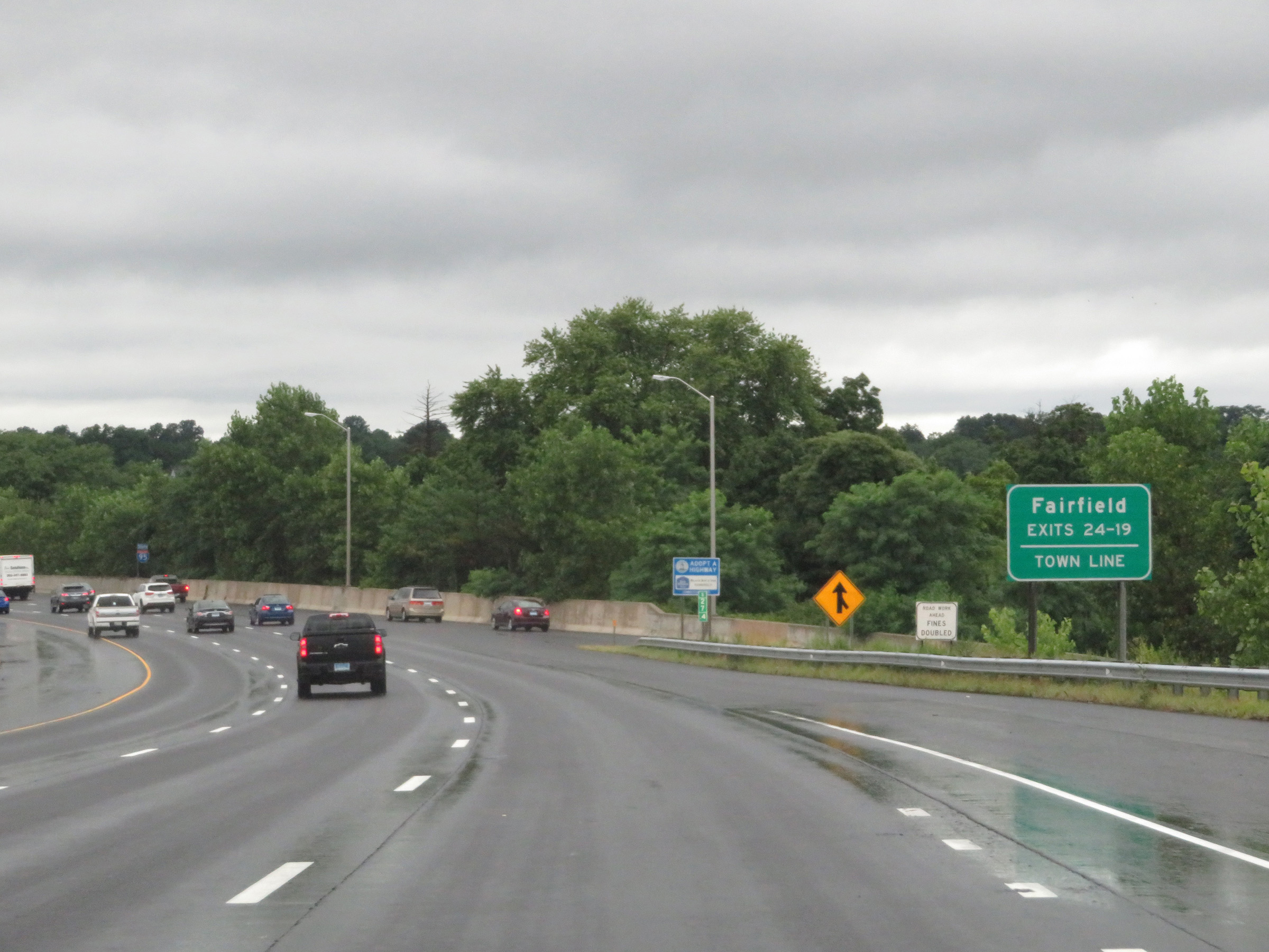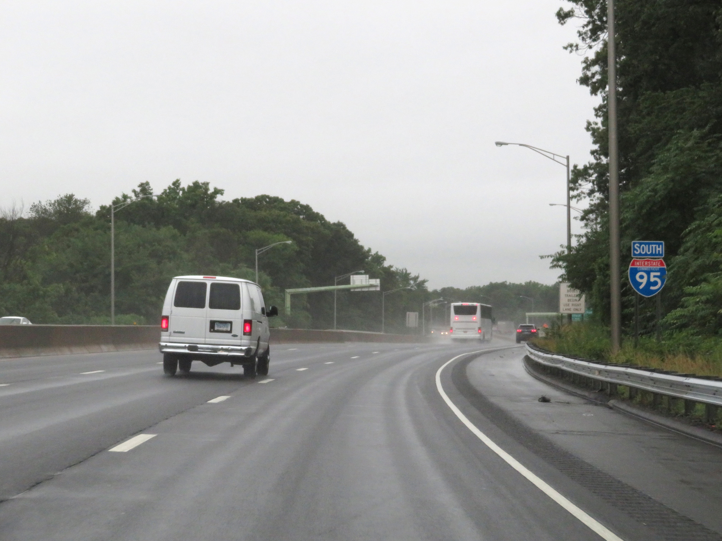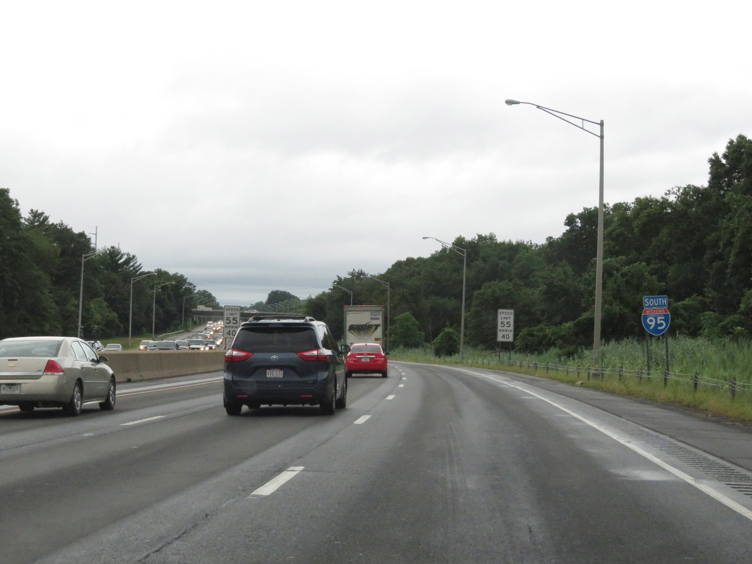 Interstate 95 South as it prepares to cross the Saugatuck River. (Photo taken 8/5/17). |