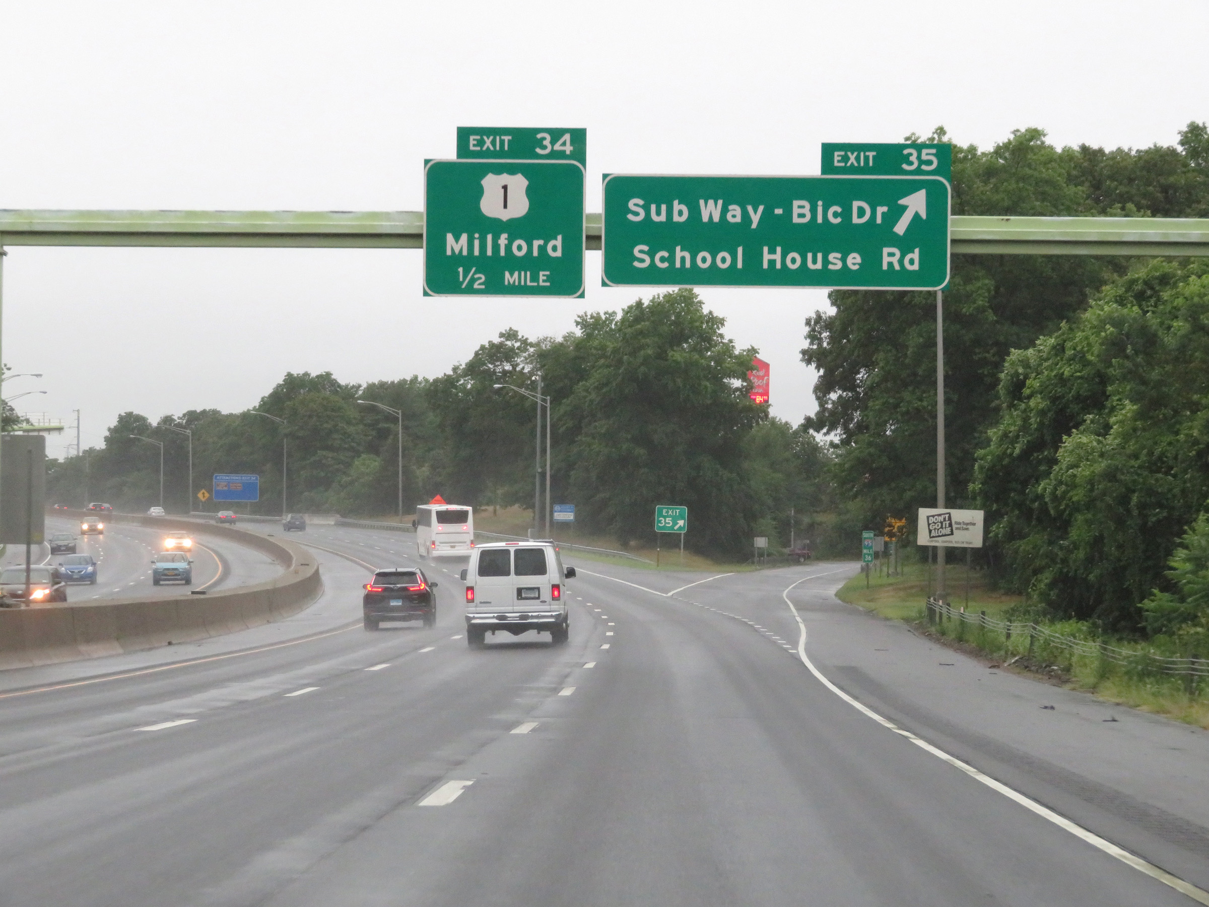 Interstate 95 South at Exit 35: Sub Way / Bic Dr / School House Rd (Photo taken 8/5/17). |