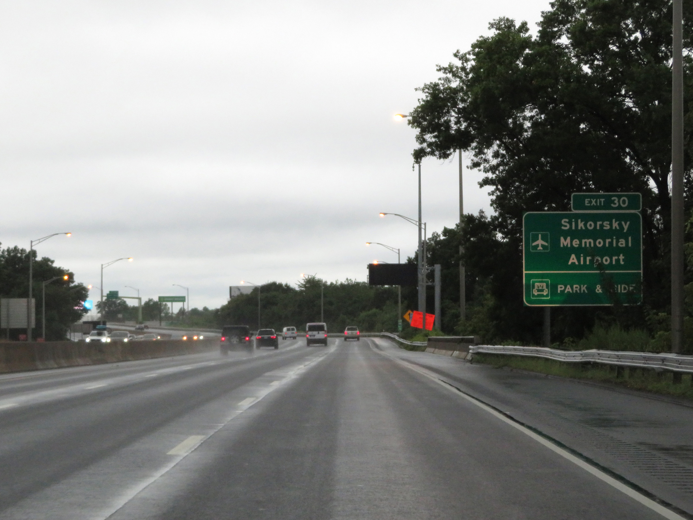 Take Exit 30 to Sikorsky Memorial Airport and a Park & Ride lot. (Photo taken 8/5/17). |
