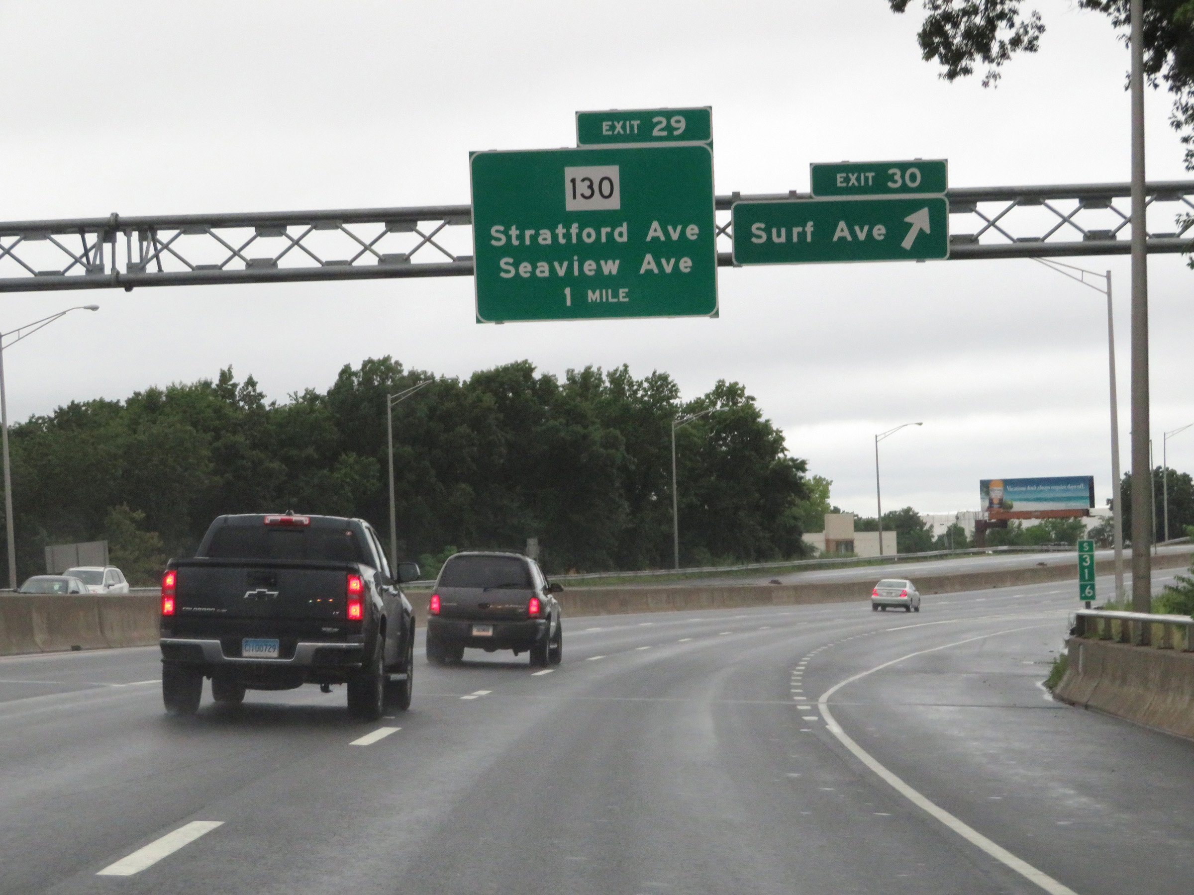 Interstate 95 South at Exit 29: CT 130 - Stratford Ave / Seaview Ave (Photo taken 8/5/17). |