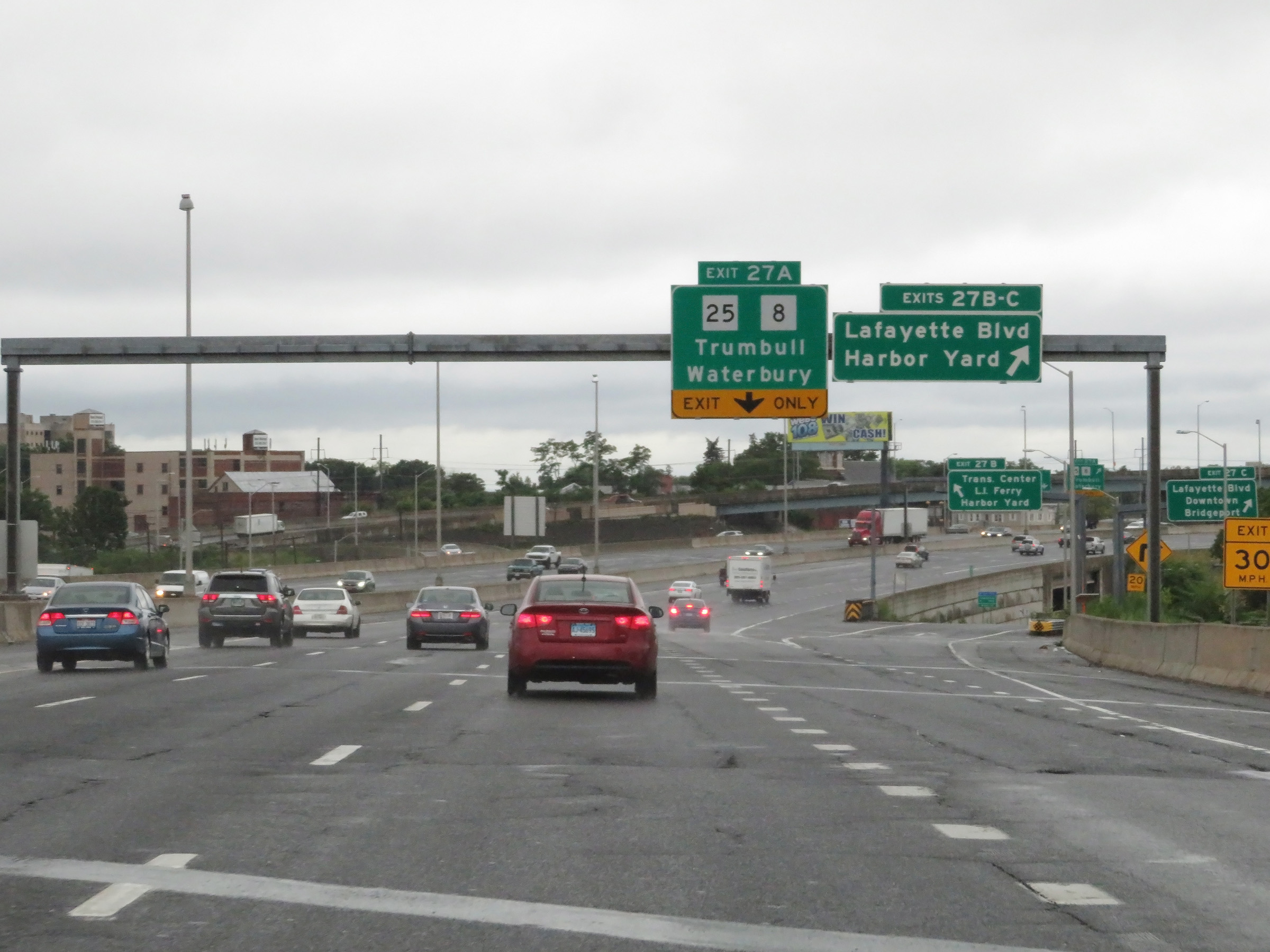 Take Exit 27C to Downtown Bridgeport. Take Exit 27A to the Department of Motor Vehicles. (Photo taken 8/5/17). |
