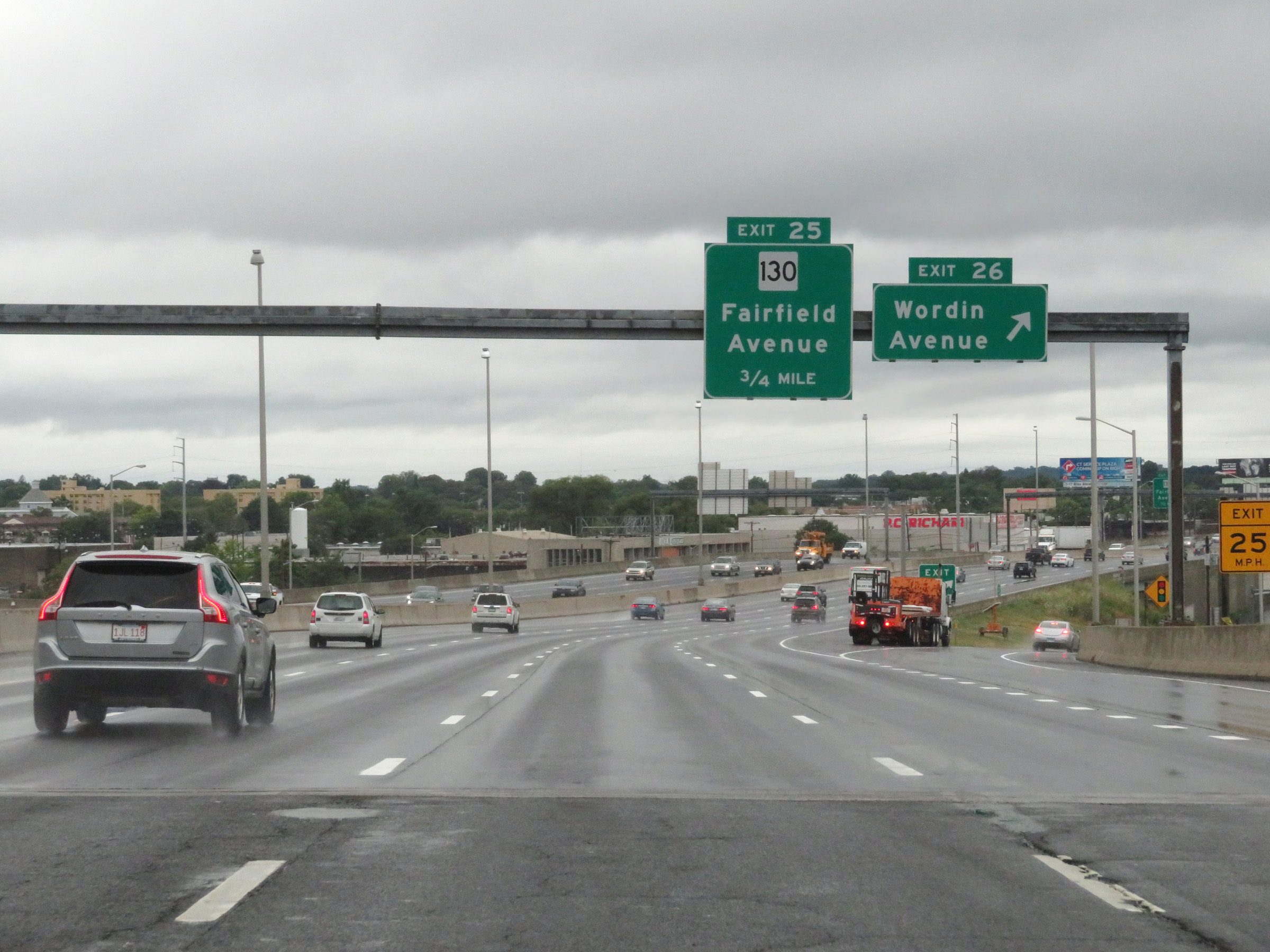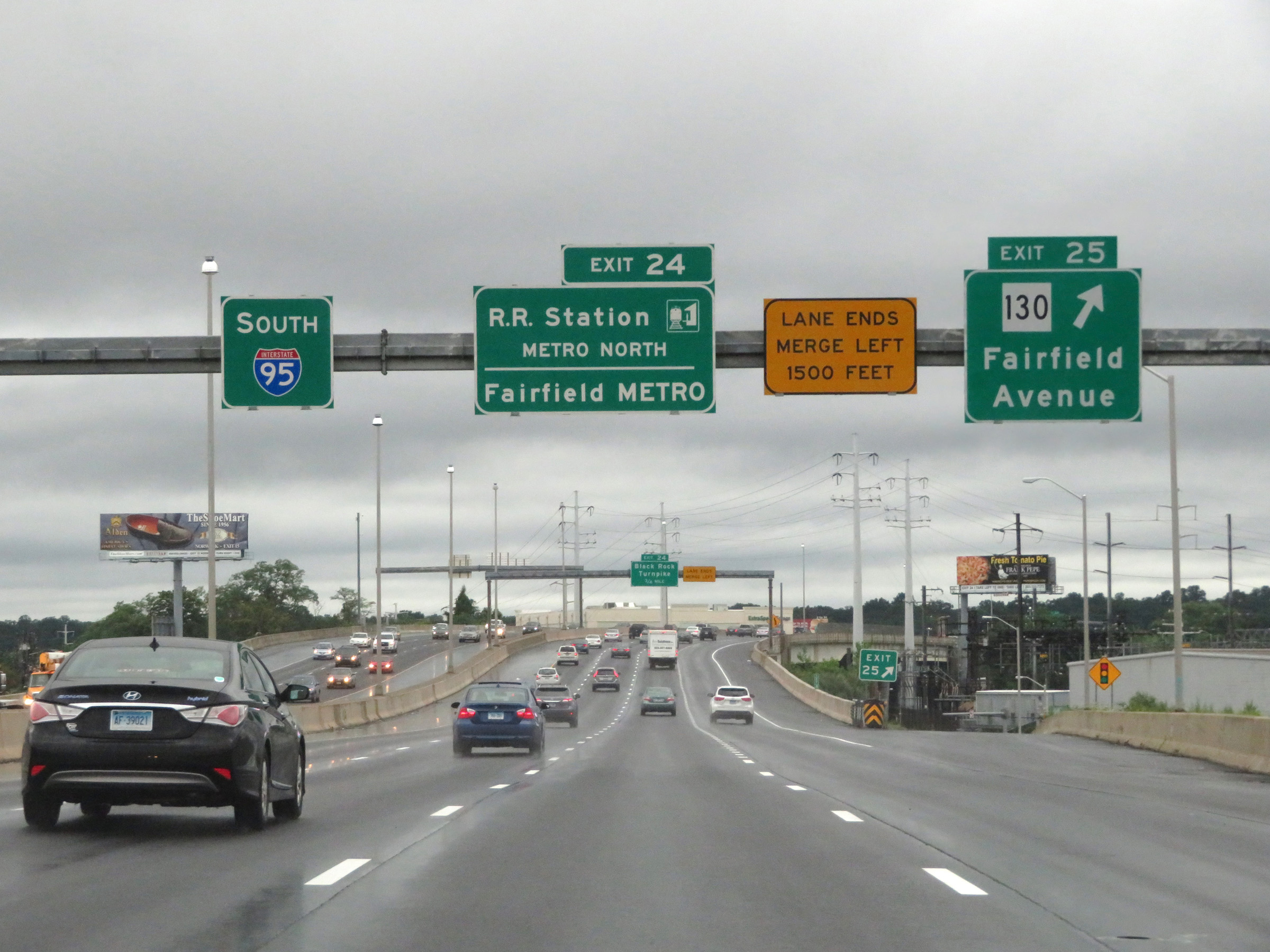 Interstate 95 South at Exit 25: CT 130 - Fairfield Avenue (Photo taken 8/5/17). |