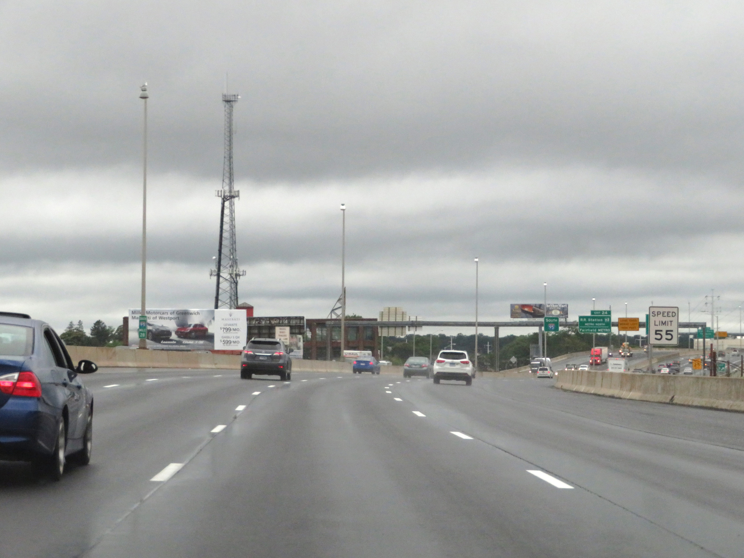 The speed limit is 50 mph on Interstate 95 South through the New Haven area. (Photo taken 8/5/17). |