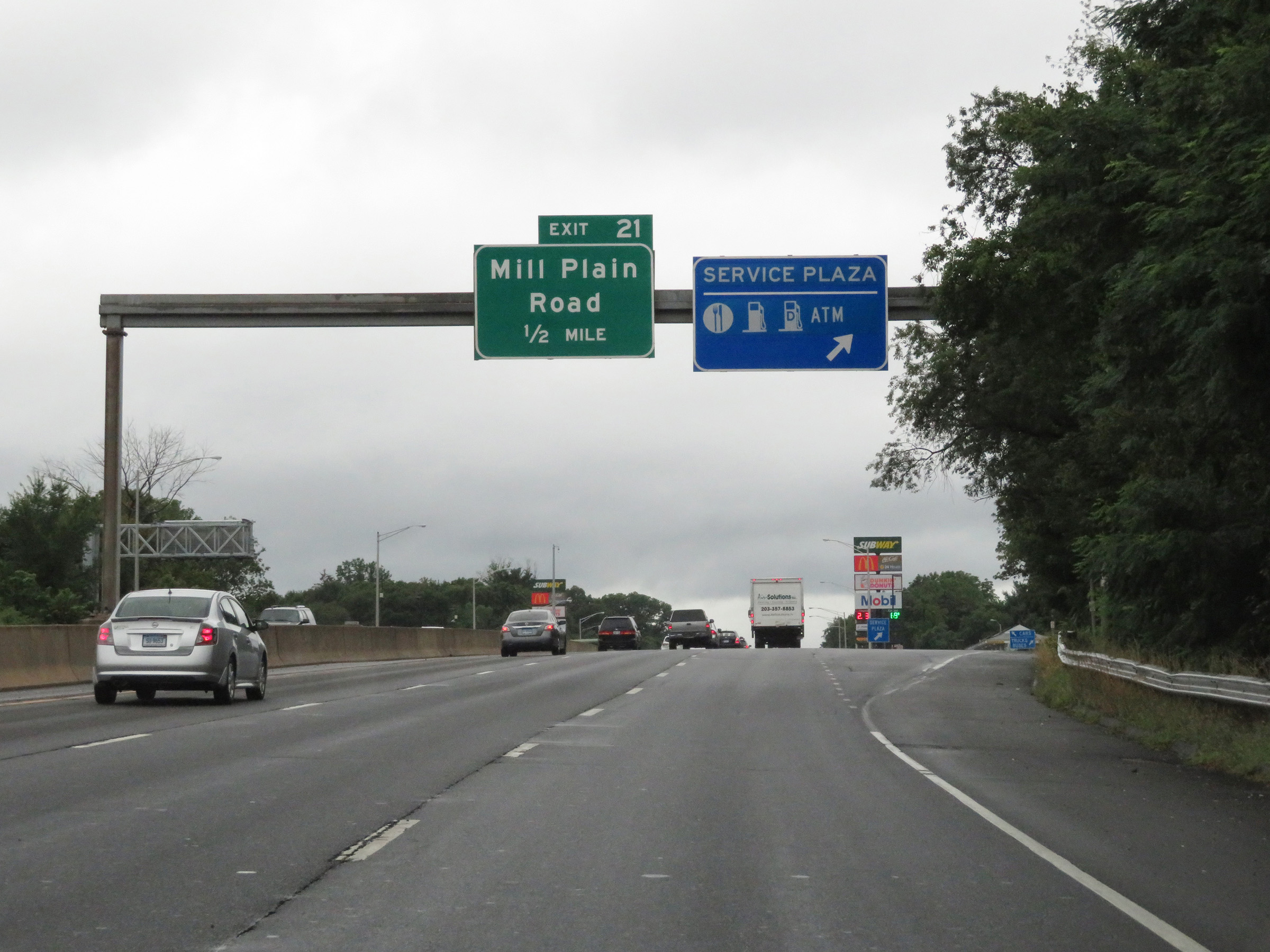 Interstate 95 South at Exit 21: Mill Plain Road (Photo taken 8/5/17). |