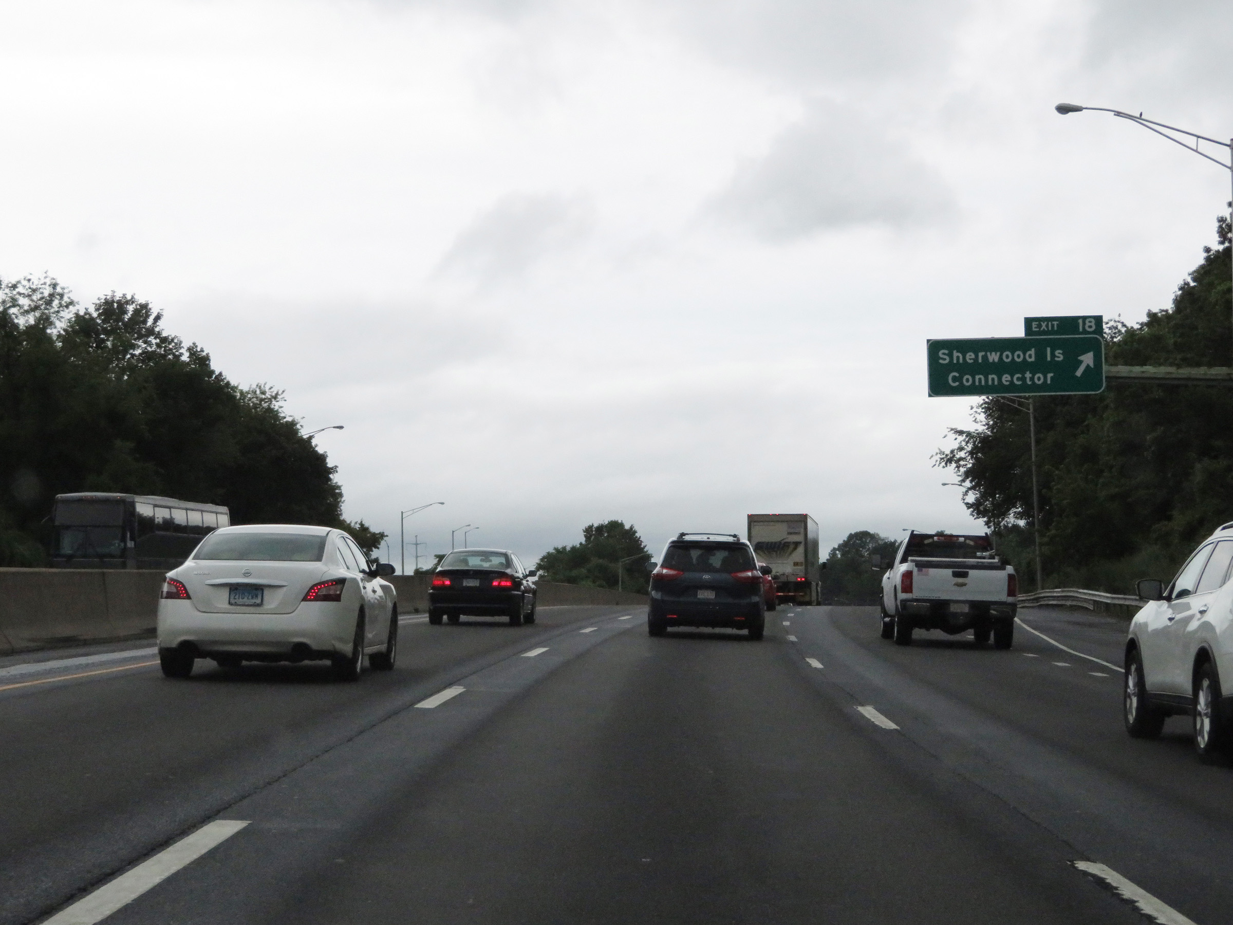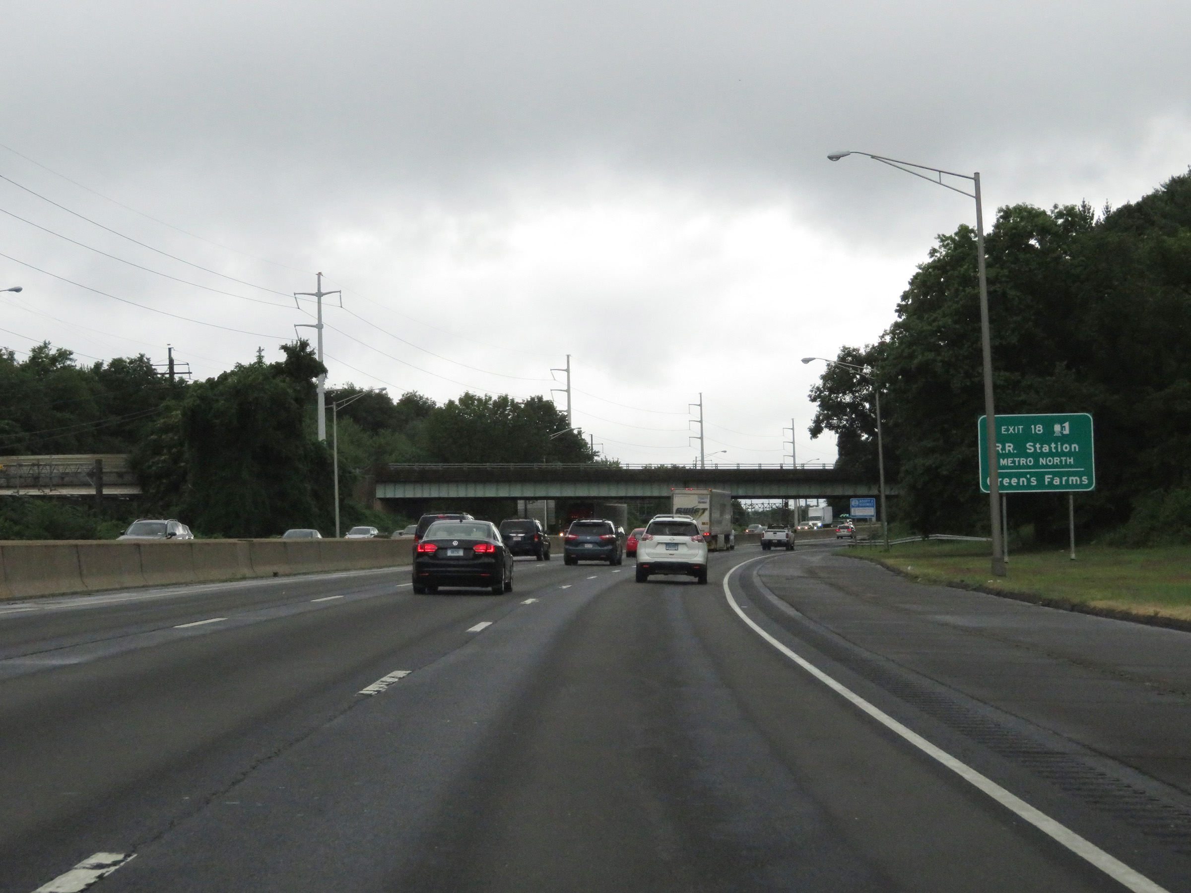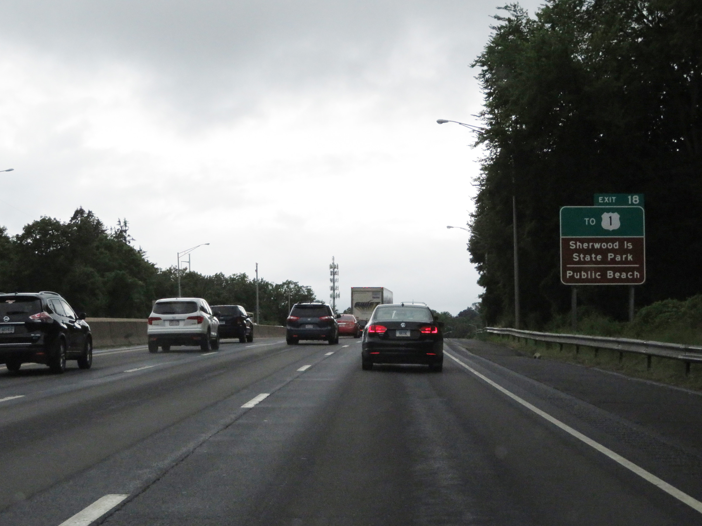 Interstate 95 South at Exit 18: Sherwood Island Connector (Photo taken 8/5/17). |