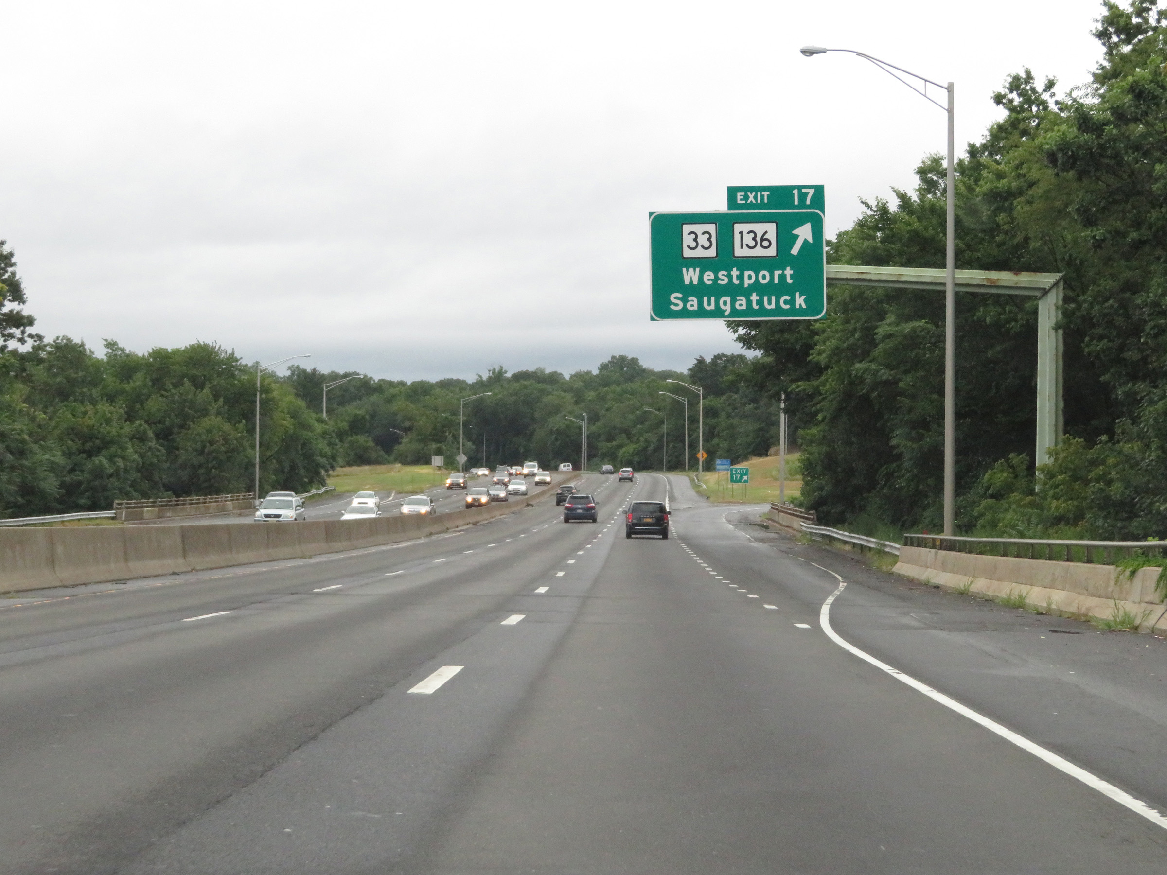 Interstate 95 South at Exit 17: CT 33 / CT 136 - Westport / Saugatuck (Photo taken 8/5/17). |