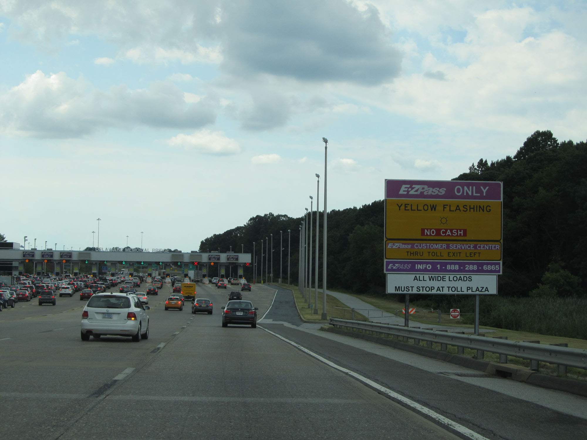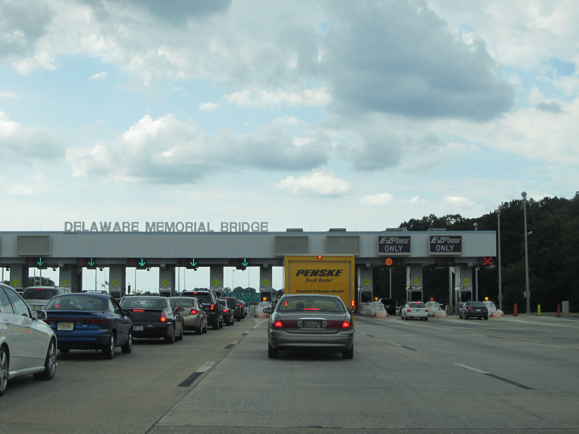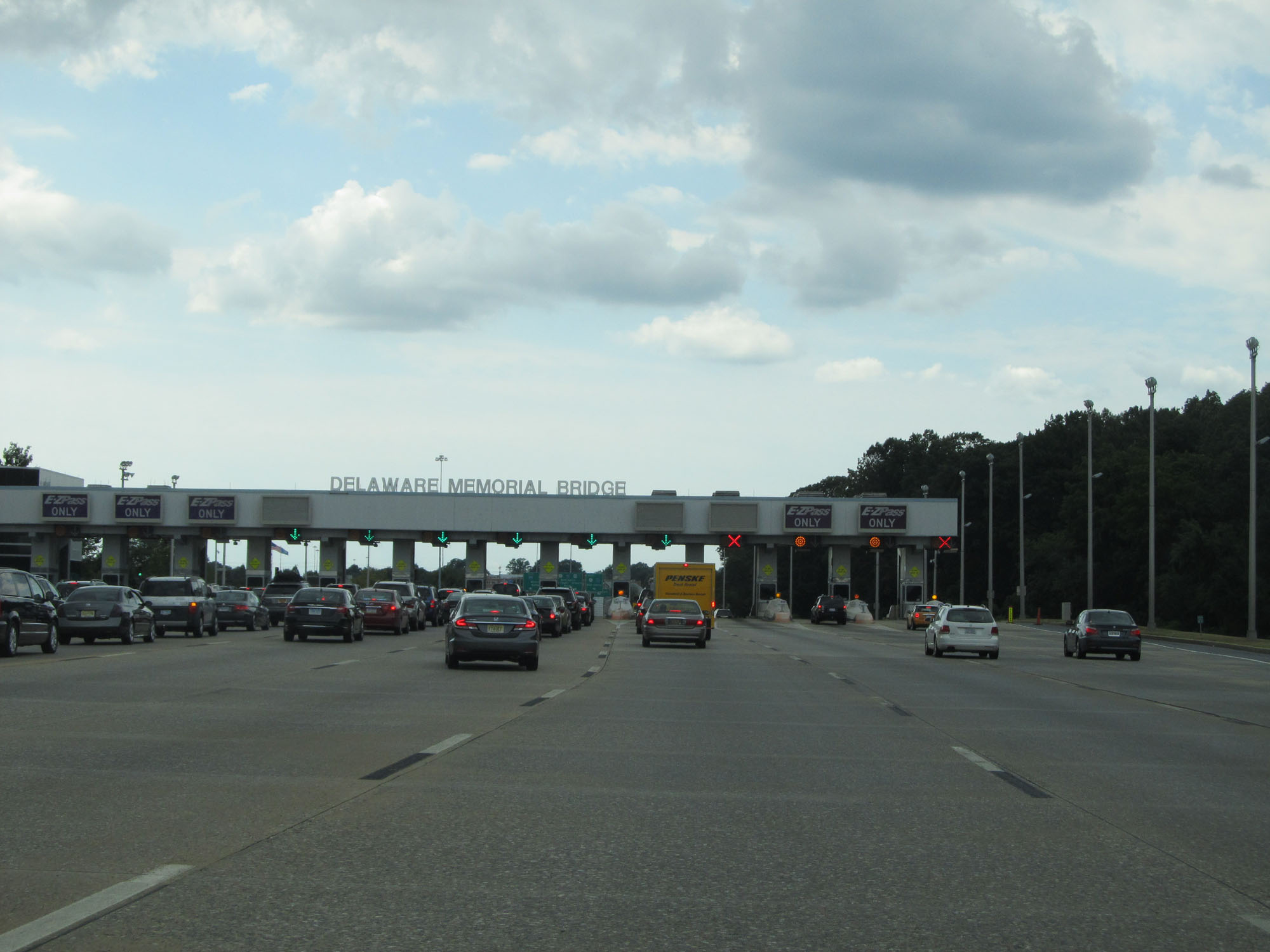Interstate 295 South at the toll plaza for the Delaware Memorial Bridge. (Photo taken 8/9/15). |