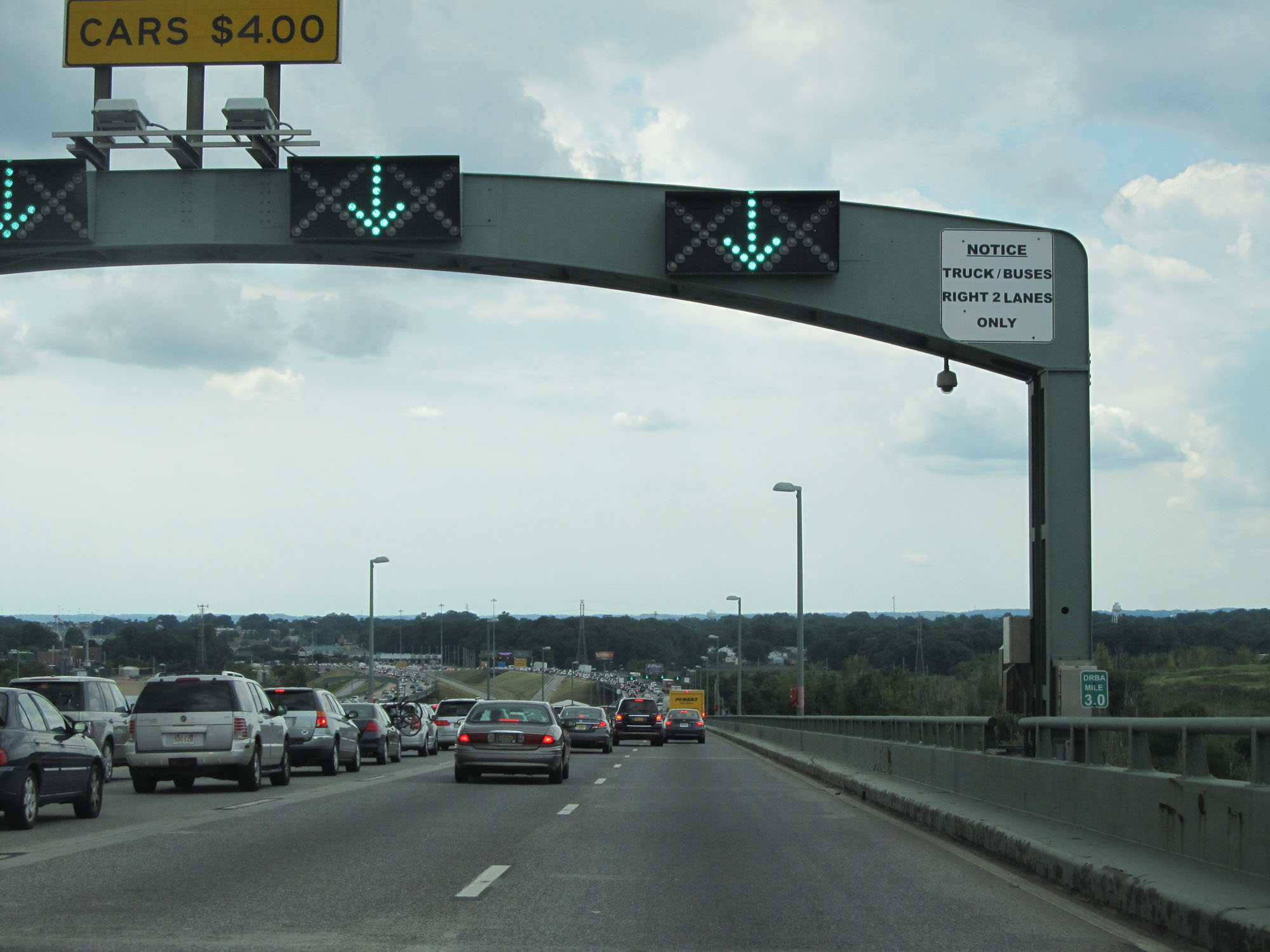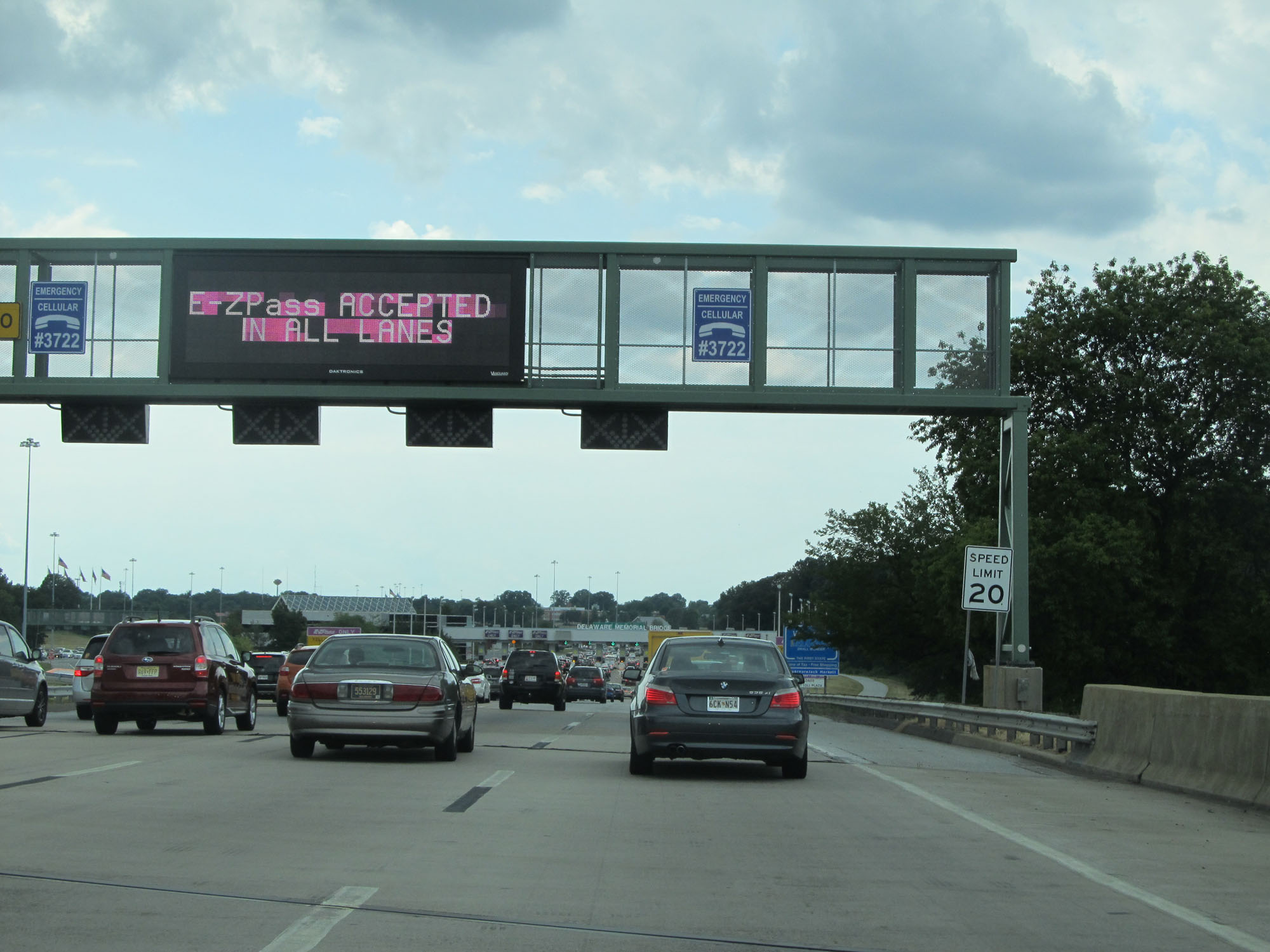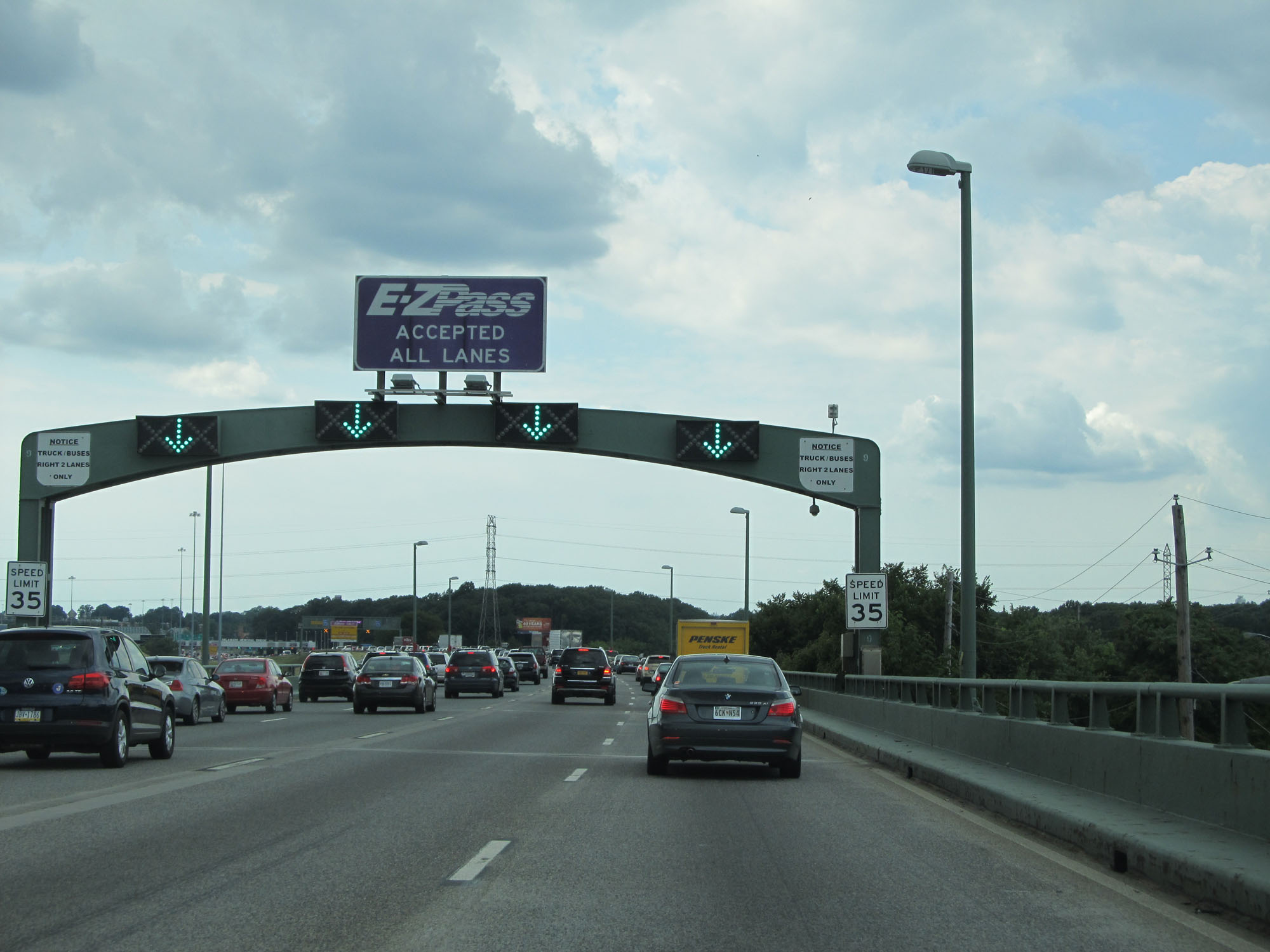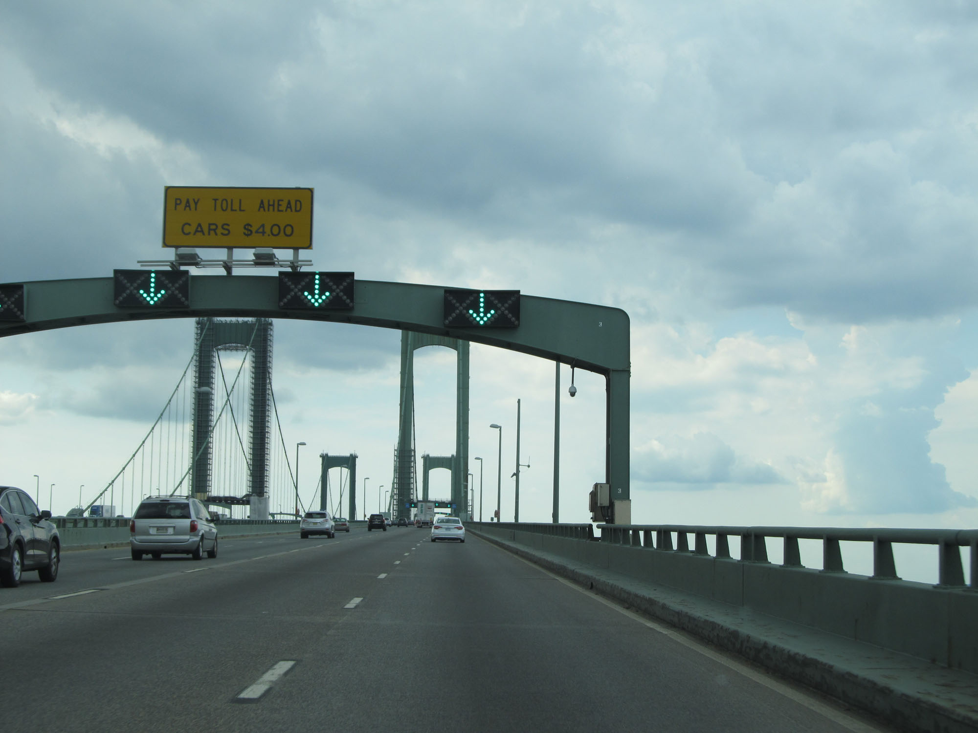 Interstate 295 South at the toll plaza for the Delaware Memorial Bridge. (Photo taken 8/9/15). |