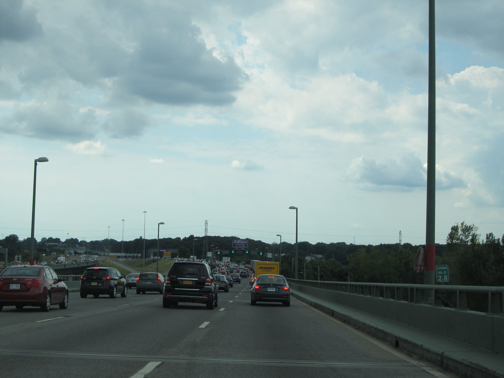 Interstate 295 South at mile marker 2.8. (Photo taken 8/9/15). |