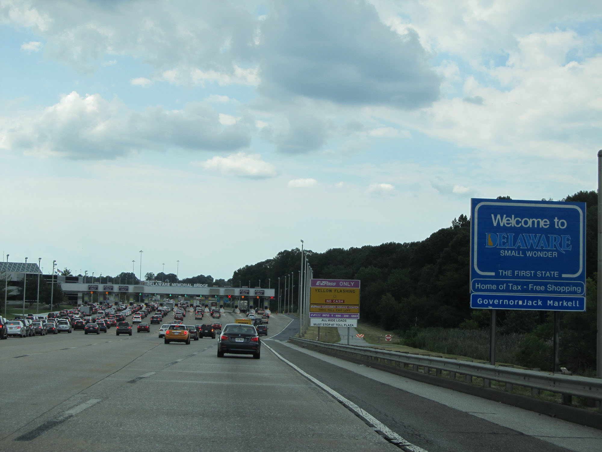 Finally, we see this Delaware welcome sign on Interstate 295 South. (Photo taken 8/9/15). |