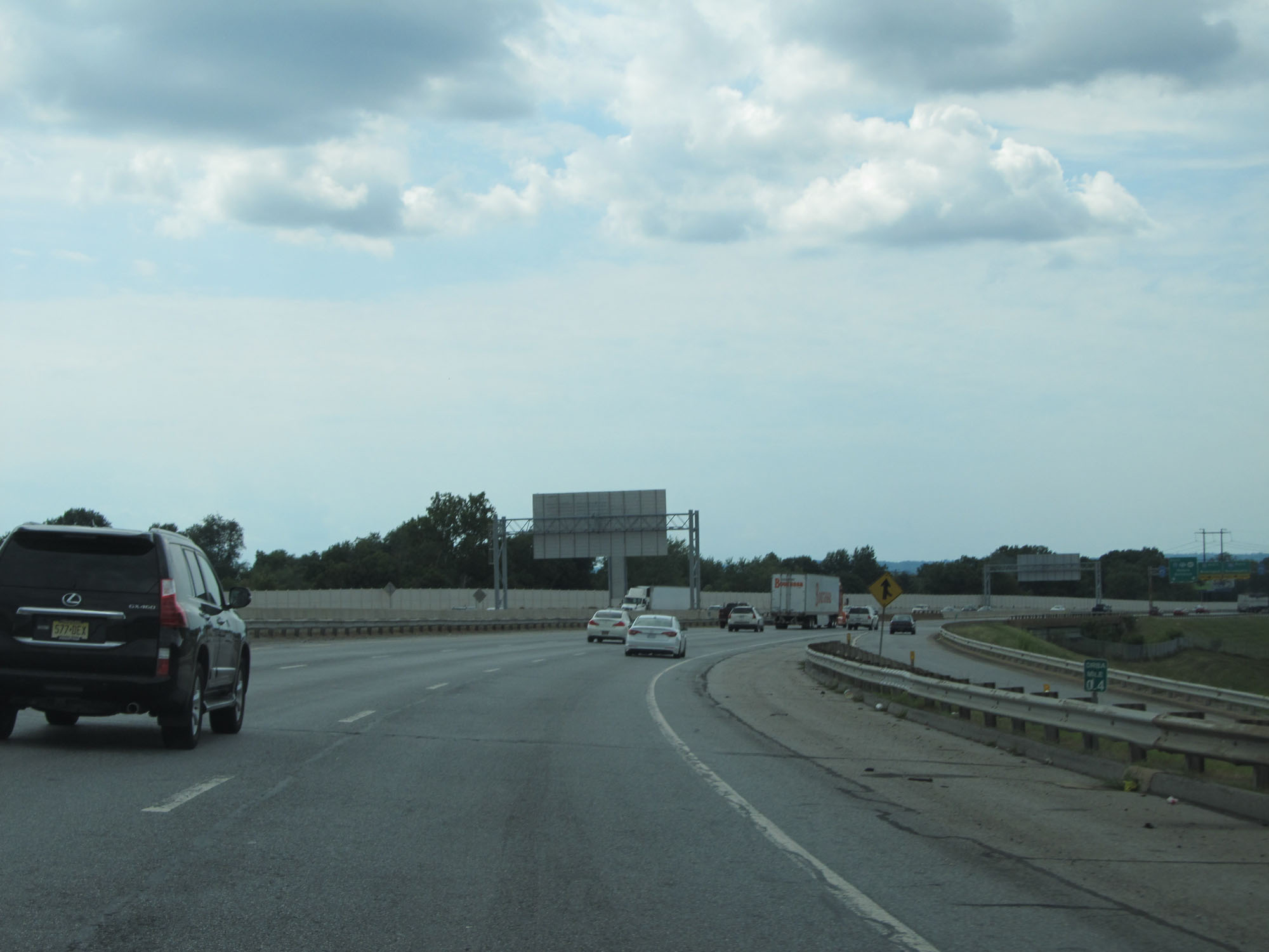 Interstate 295 South approaching the toll plaza for the Delaware Memorial Bridge. (Photo taken 8/9/15). |