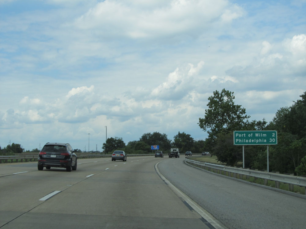 Mileage sign near mile marker 0.5. It's 2 miles to Port of Wilmington and 30 miles to Philadelphia. (Photo taken 8/9/15).