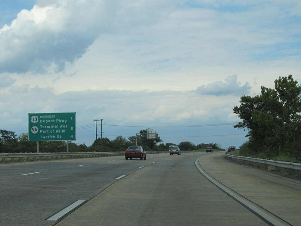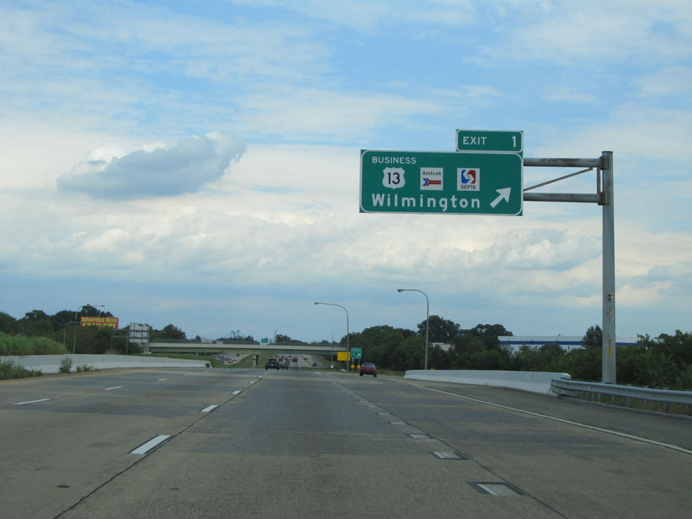 Interstate 495 North at Exit 1: US 13 Bus. - Wilmington (Photo taken 8/9/15).