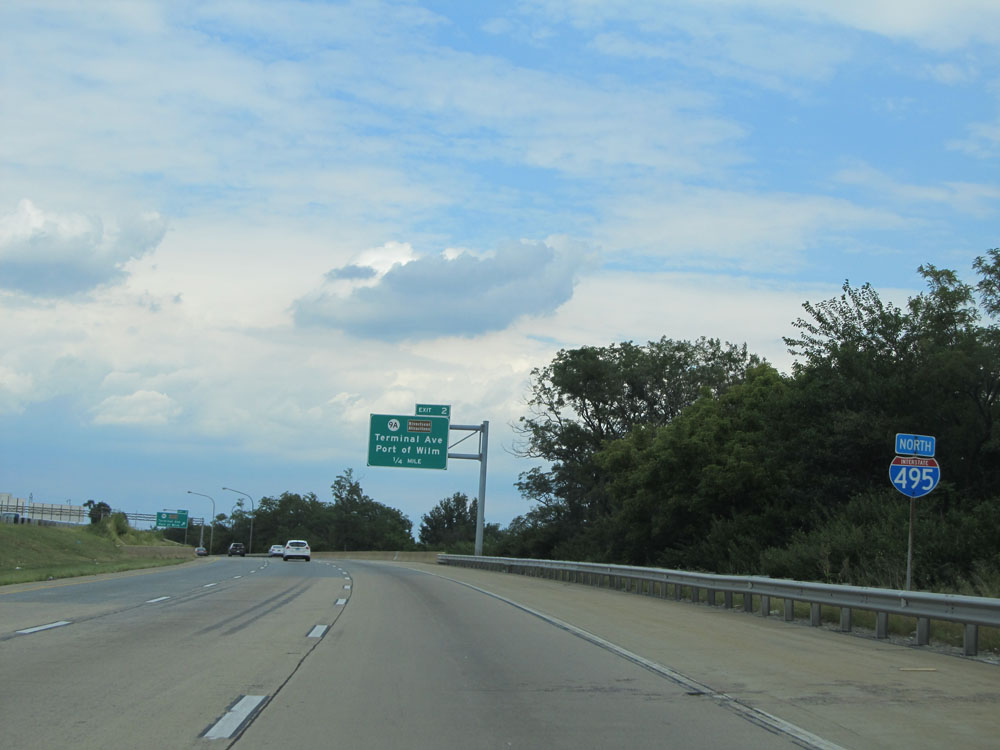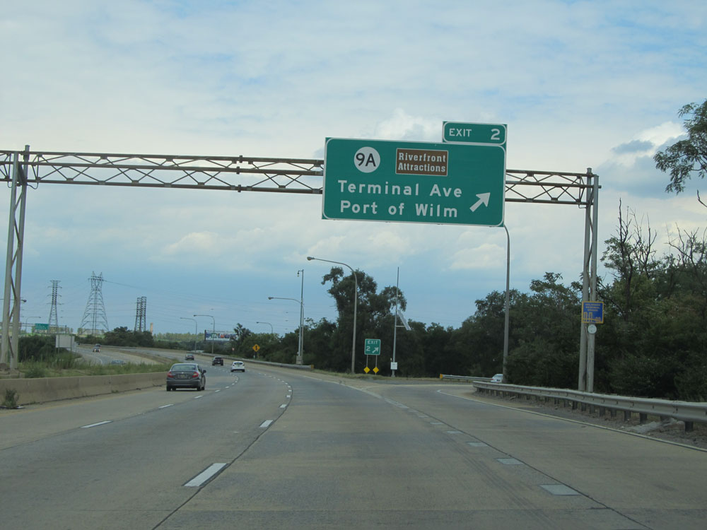 Interstate 495 North at Exit 2: DE 9A - Terminal Ave / Port of Wilmington / Riverfront Attractions (Photo taken 8/9/15).
