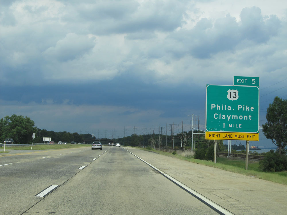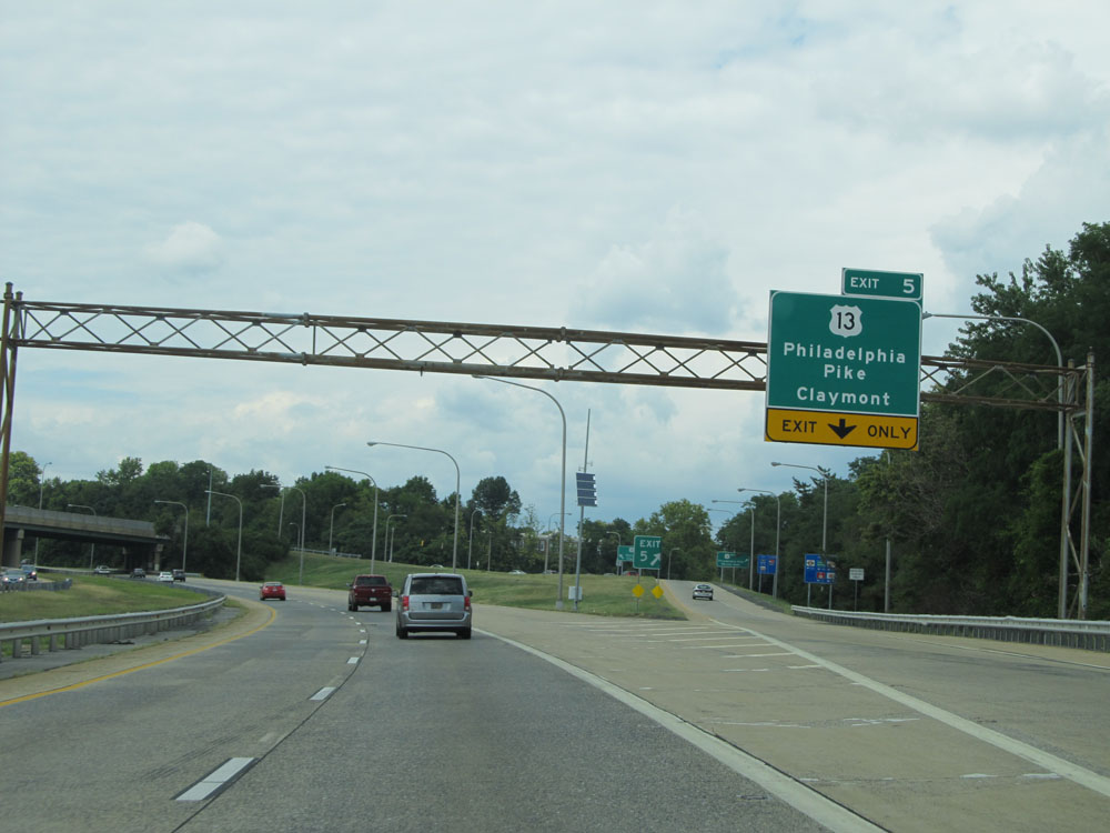 Interstate 495 North at Exit 5: US 13 - Philadelphia Pike / Claymont (Photo taken 8/9/15).