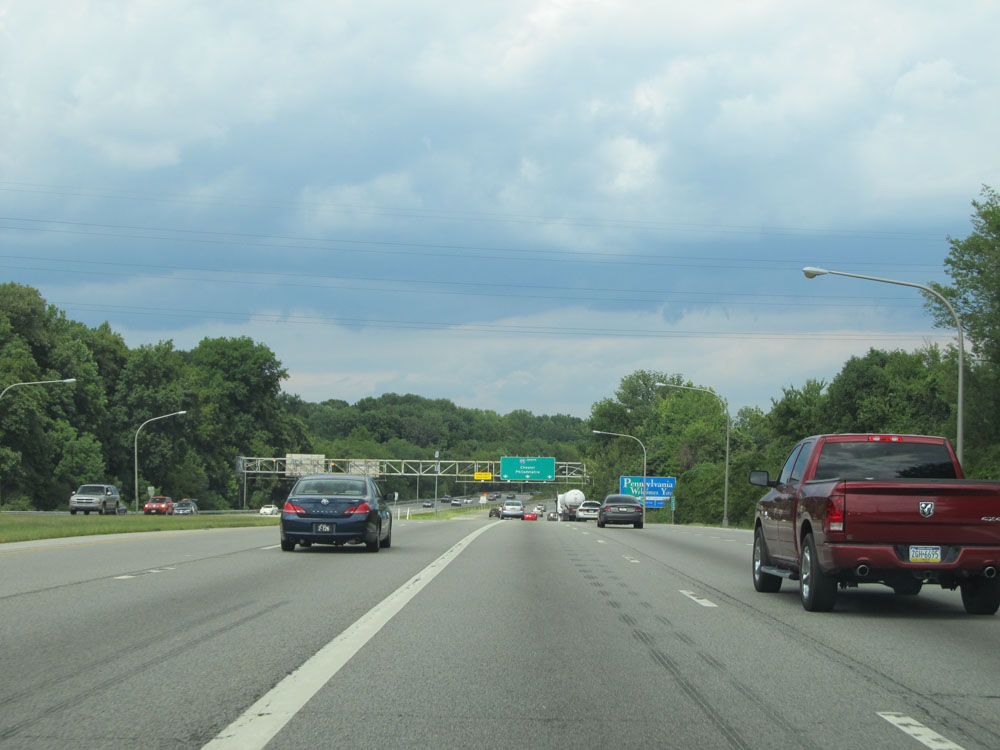Interstate 495 North at mile marker 11.5, as we approach its northern terminus at Interstate 95. (Photo taken 8/9/15).