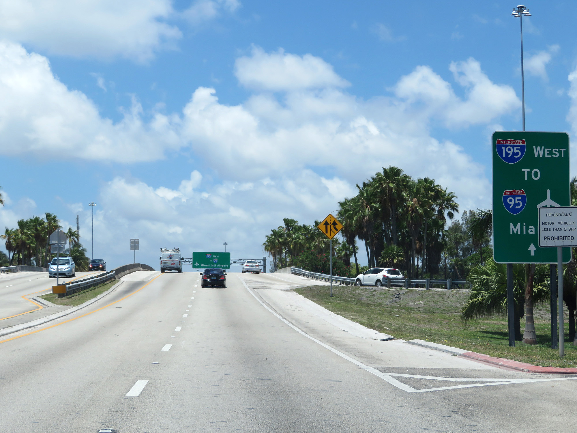 Interstate 195 West reassurance shield as traffic from FL 907 South merges into it on the right. (Photo taken 5/22/17). |