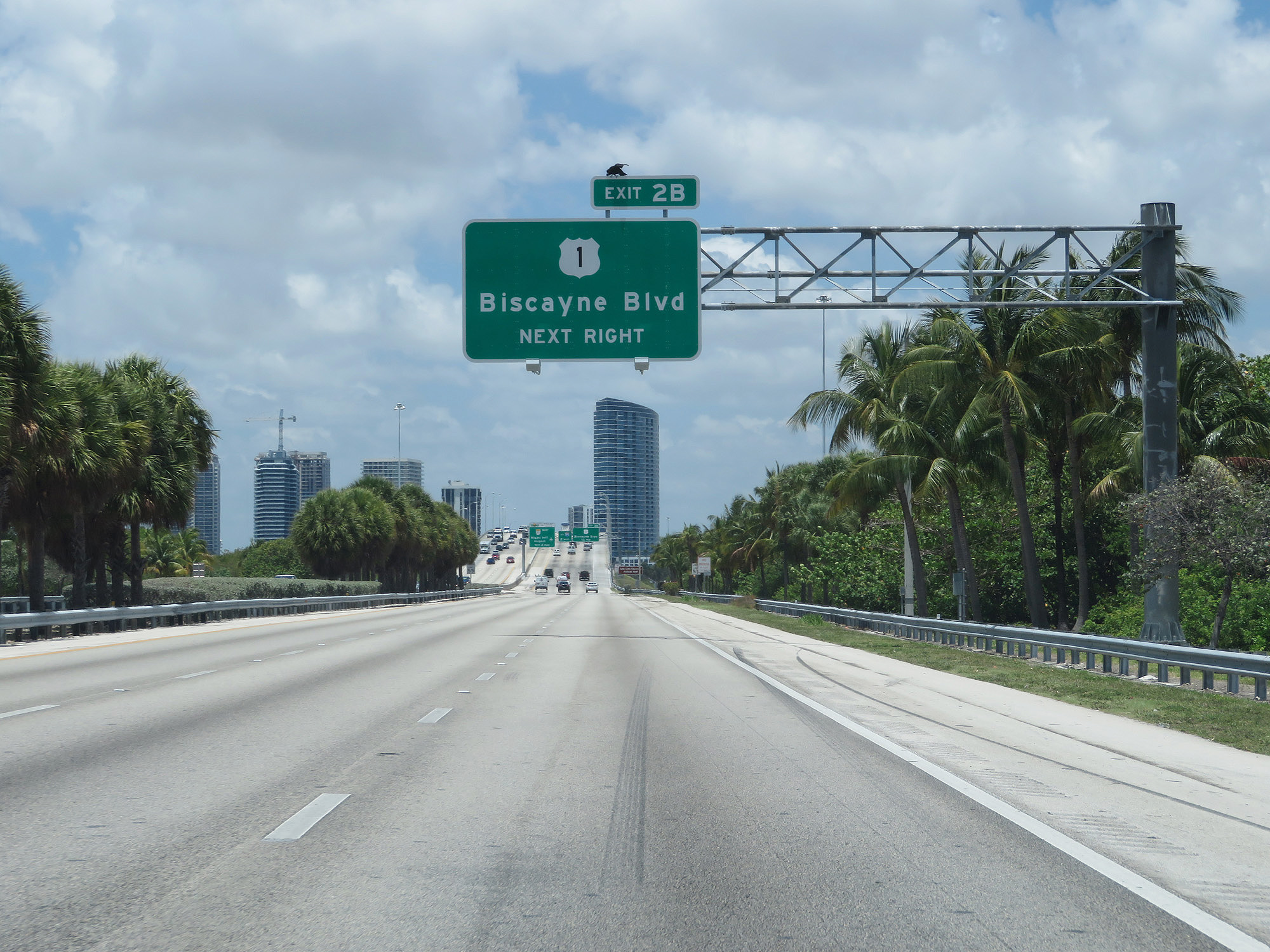 Interstate 195 West at Exit 2B: US 1 - Biscayne Blvd (Photo taken 5/22/17). |