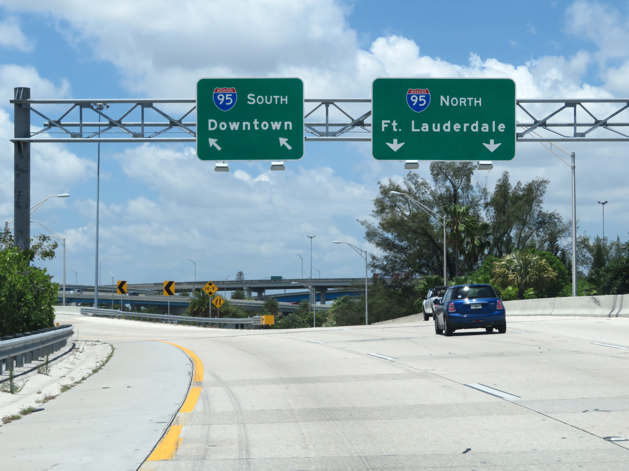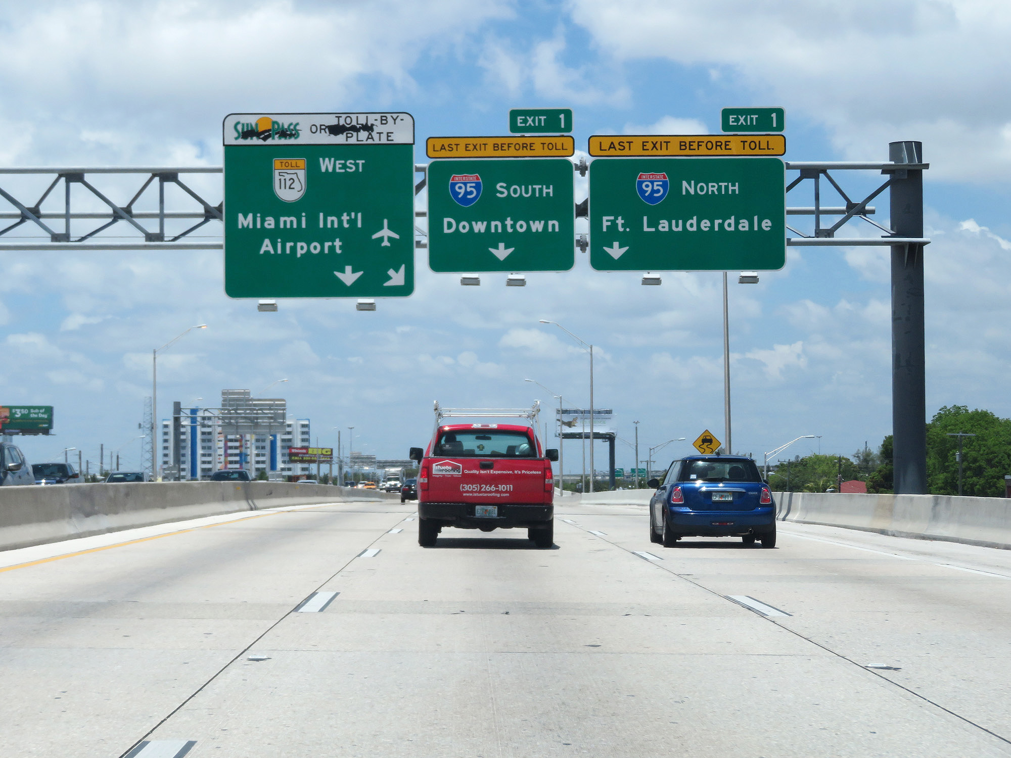 Interstate 195 West at Exit 1: Interstate 95 - Downtown / Fort Lauderdale; FL 112 Toll West - Miami International Airport (Photo taken 5/22/17). |